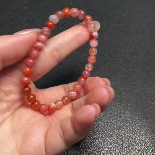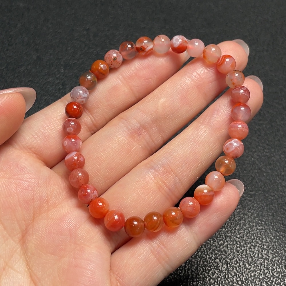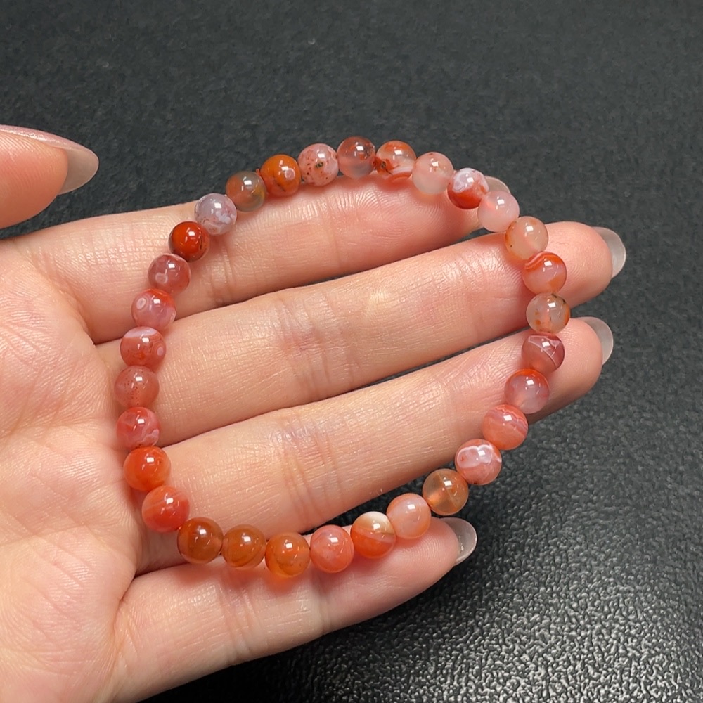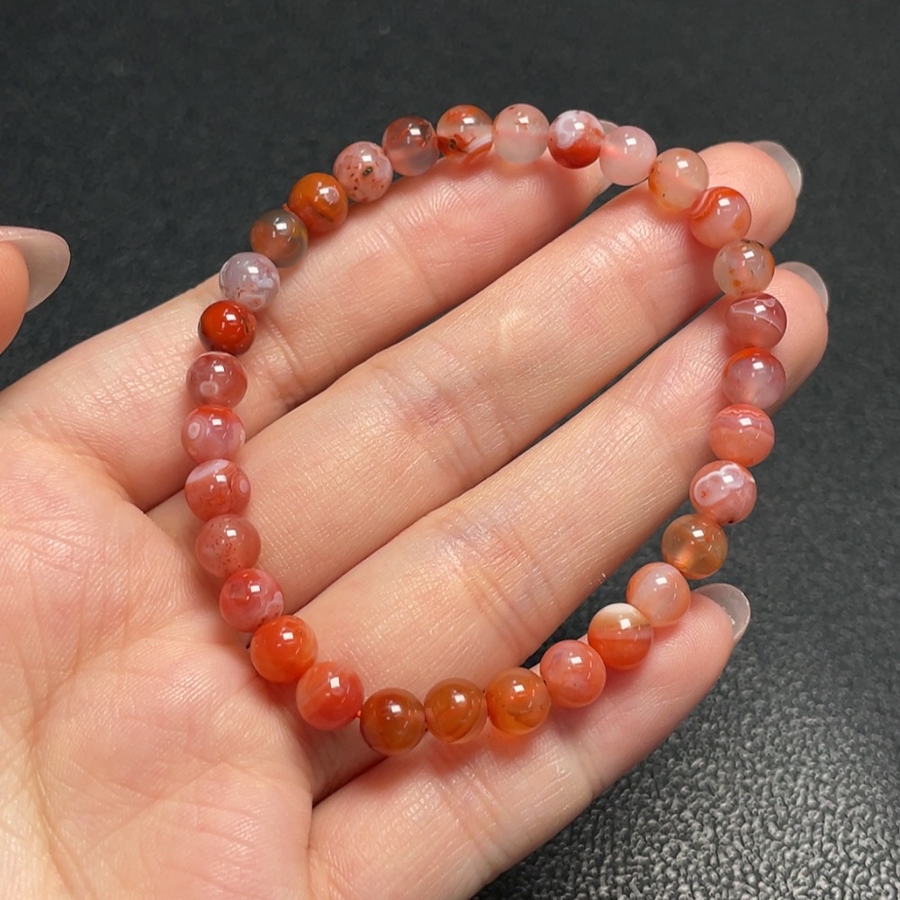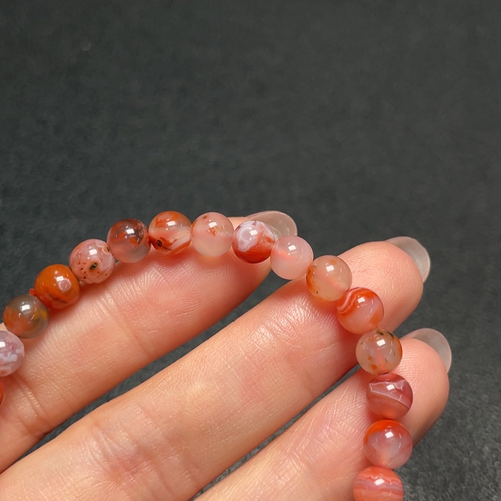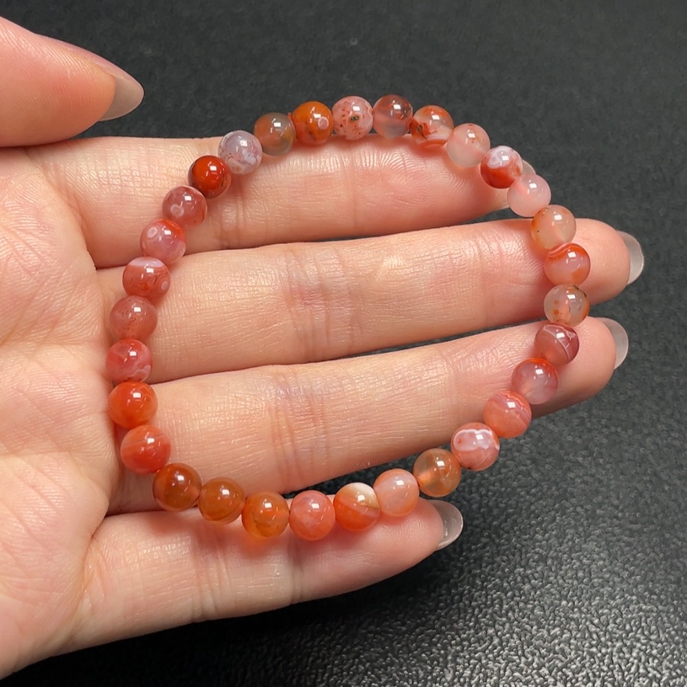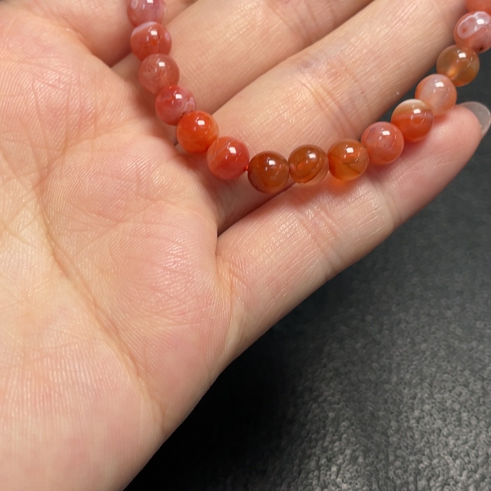 South Red Agate Bracelet, approx. 6.1mm, total weight approx. 9.40g, organic inclusions visible