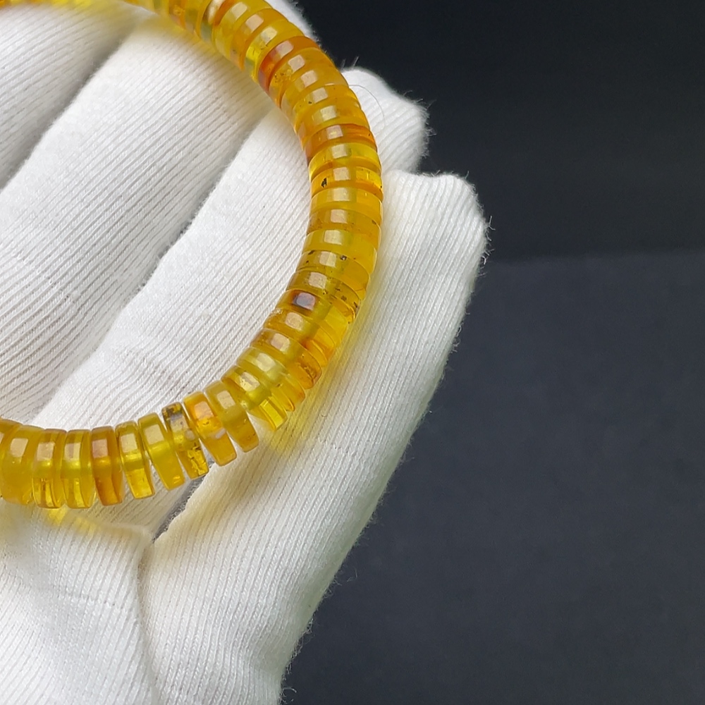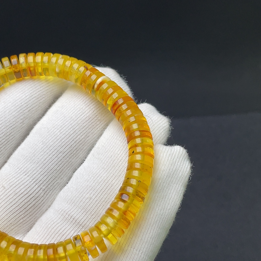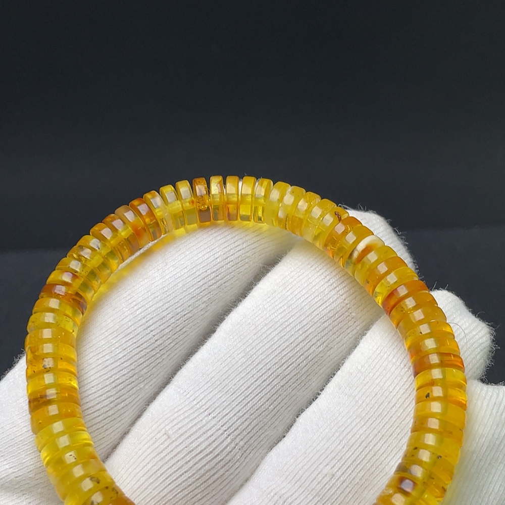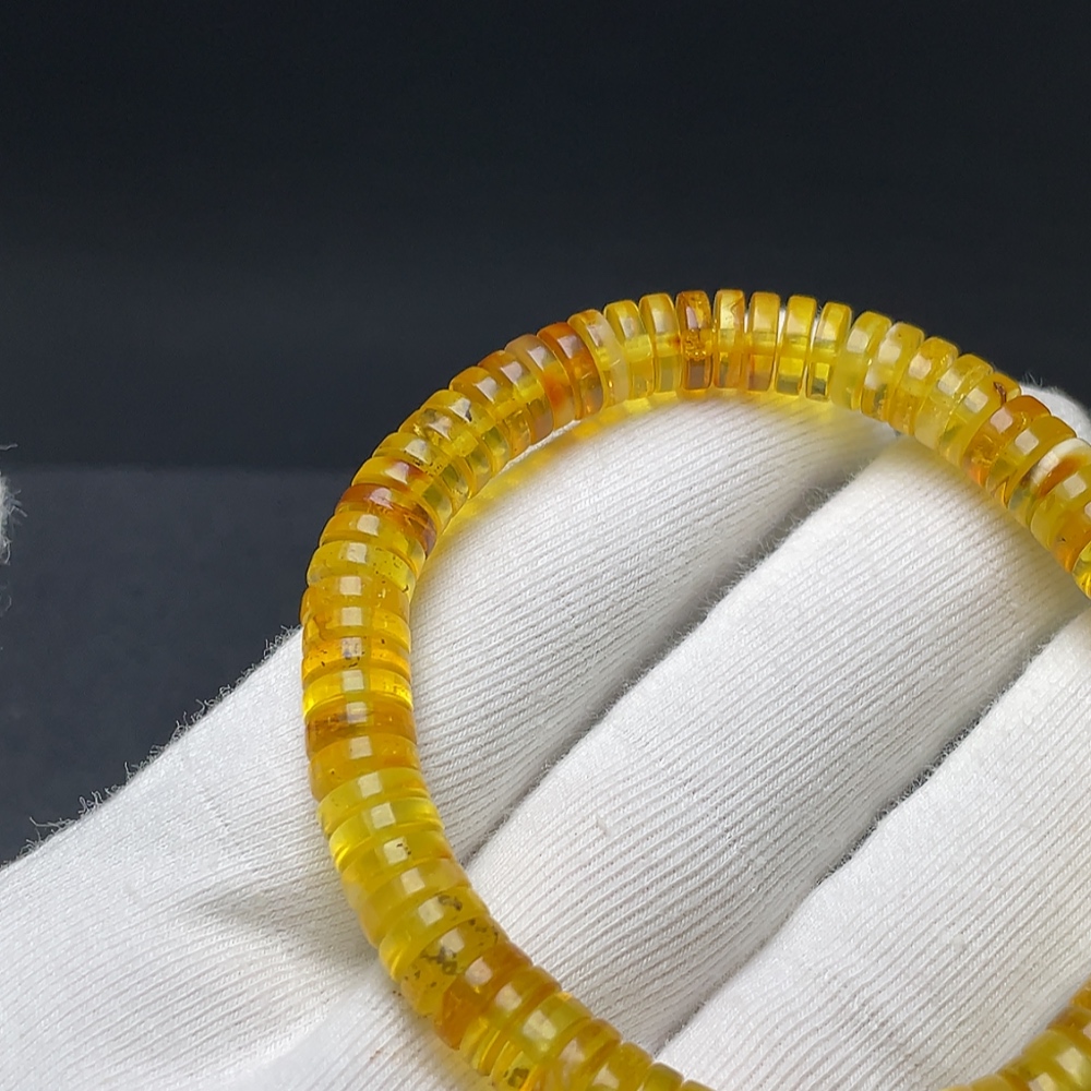 Amber Beeswax Bracelet, Total Weight Approx. 8g, Bead Size 7.4mm