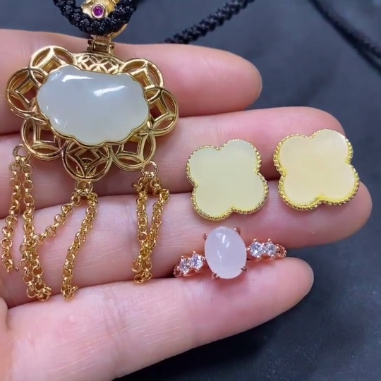 Hetian Jade Inlaid Set (Individual Pieces with Veins/Cracks, Total Weight 16.7g)