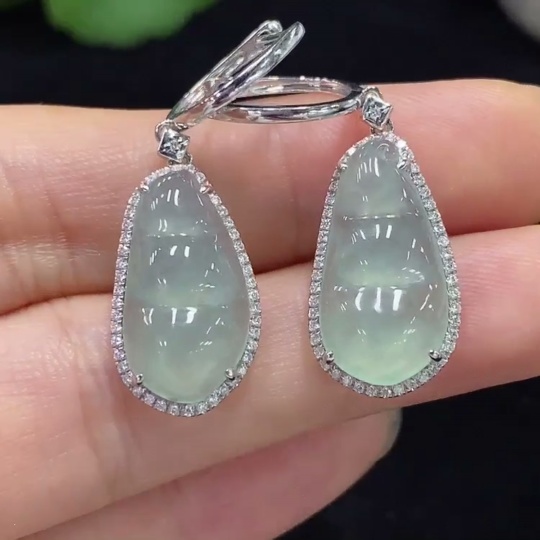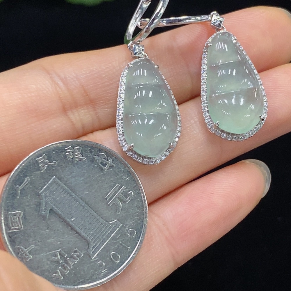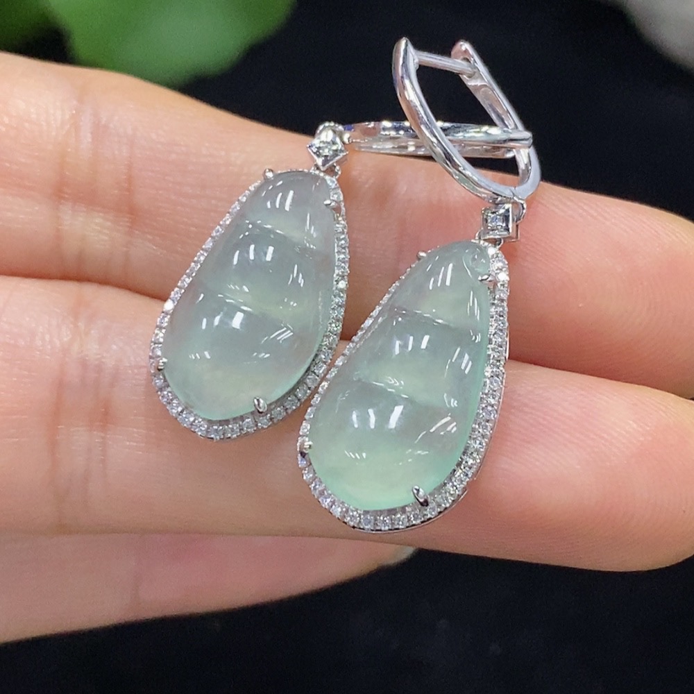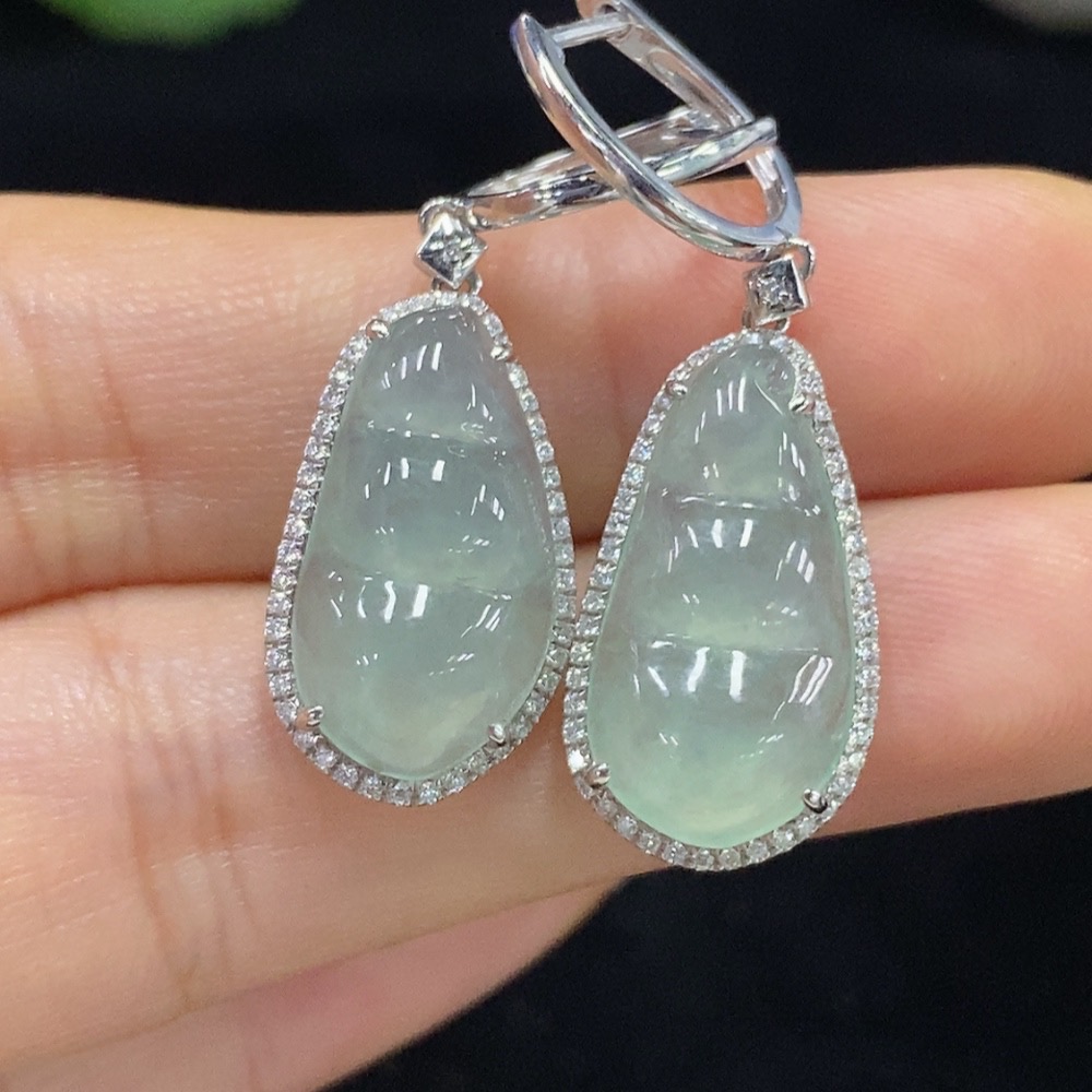 Jadeite Lucky Bean Inlaid Earrings 18K Gold Non-Diamond Total Weight Approx. 5.16g