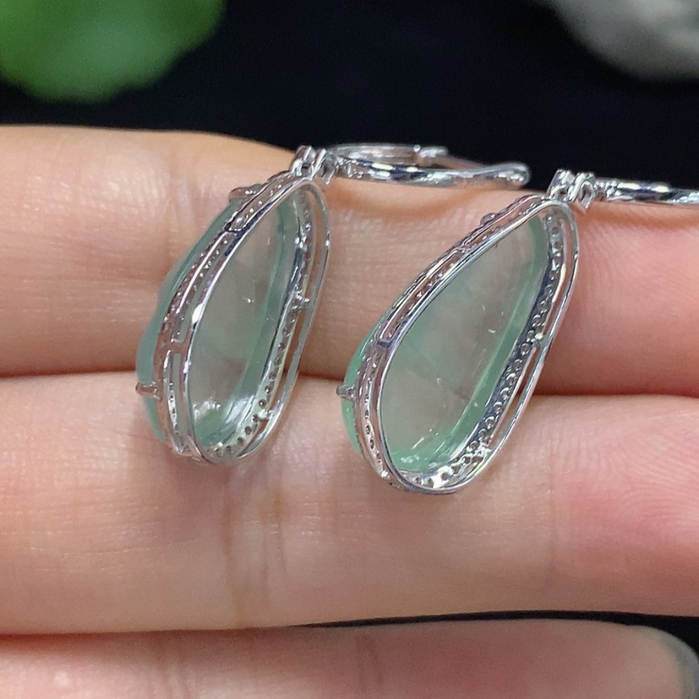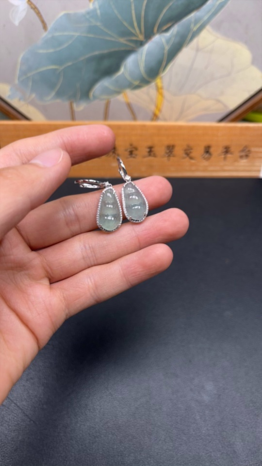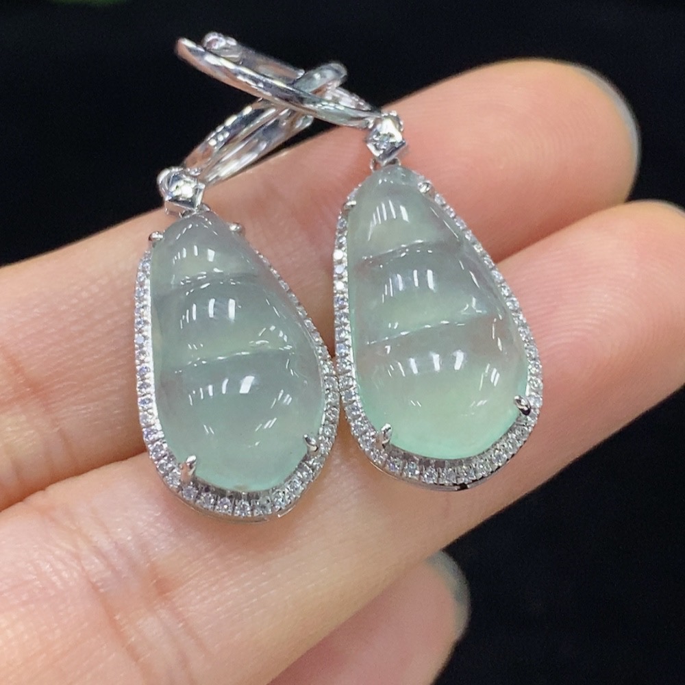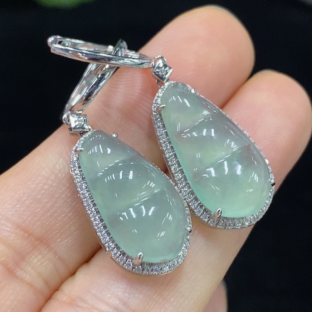 Jadeite Lucky Bean Inlaid Earrings 18K Gold Non-Diamond Total Weight Approx. 5.16g