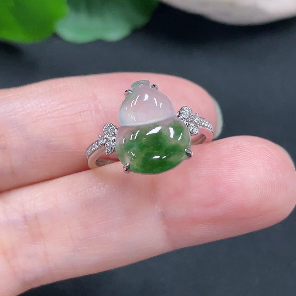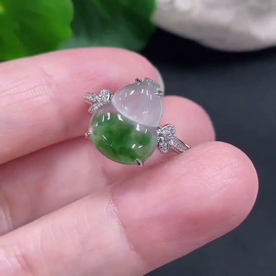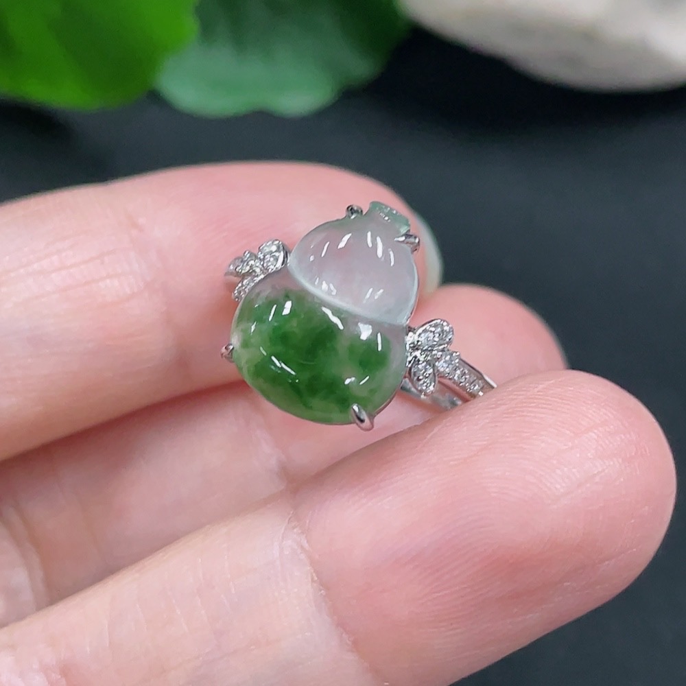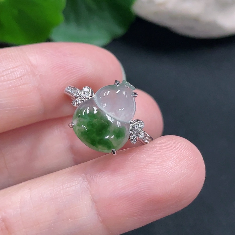 Jadeite inlaid ring size 14 18K gold total weight about 2.8g (with diamond accents)