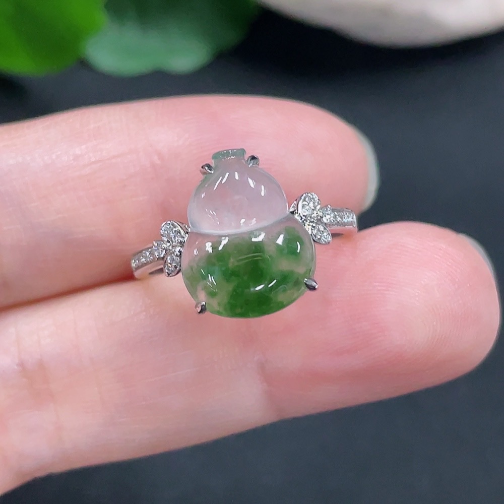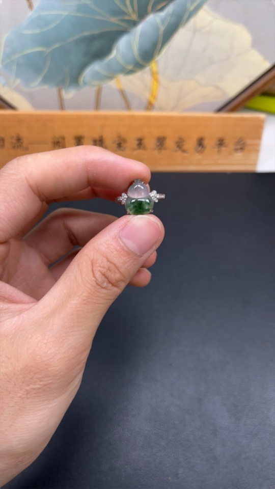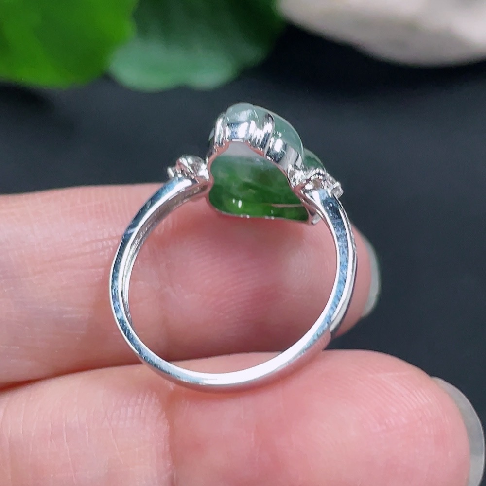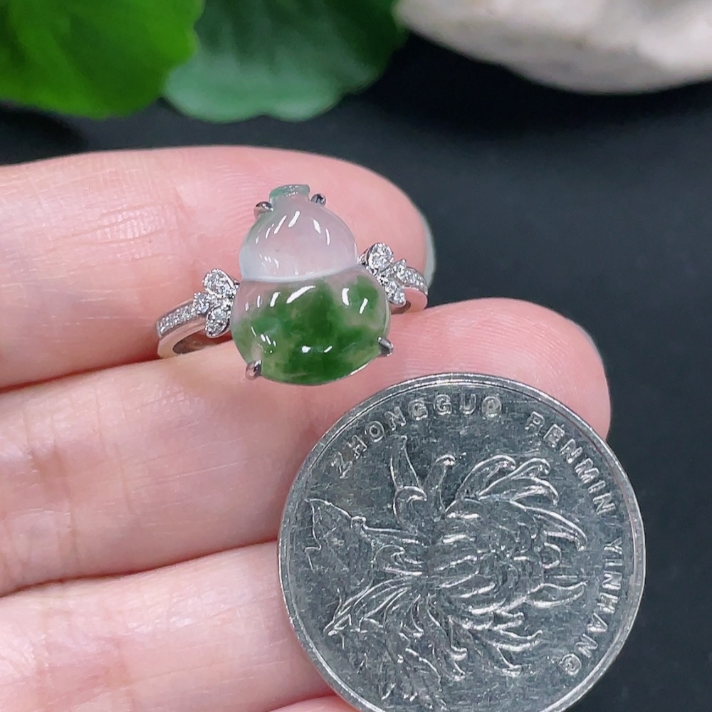 Jadeite inlaid ring size 14 18K gold total weight about 2.8g (with diamond accents)