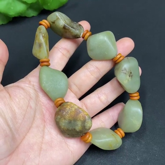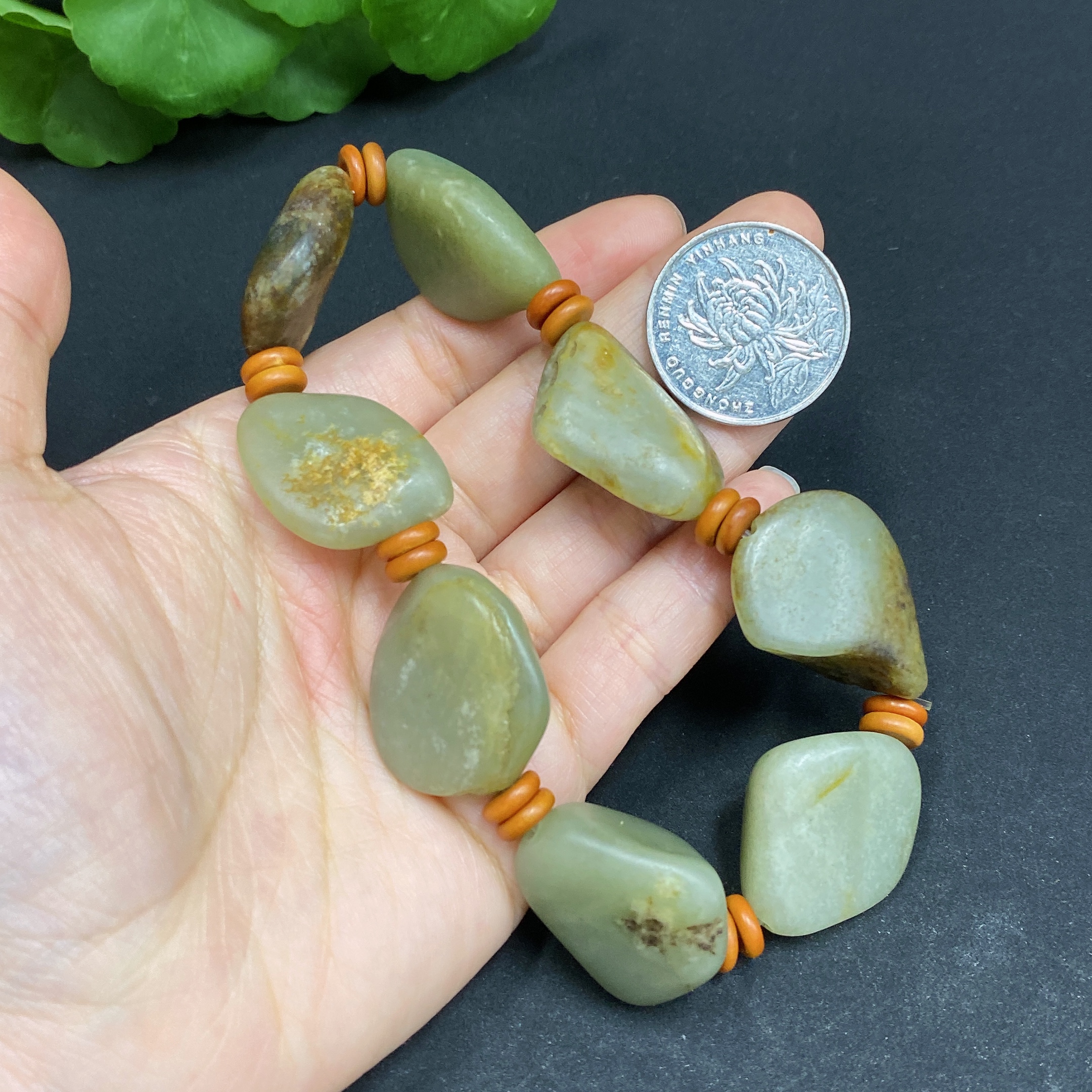 Hetian Jade Bracelet, Total Weight Approx. 87.7g, Undetermined Skin Color Origin, Contains Other Mineral Components