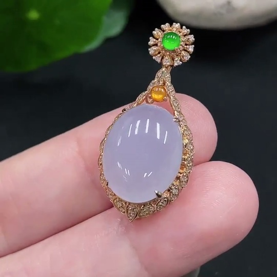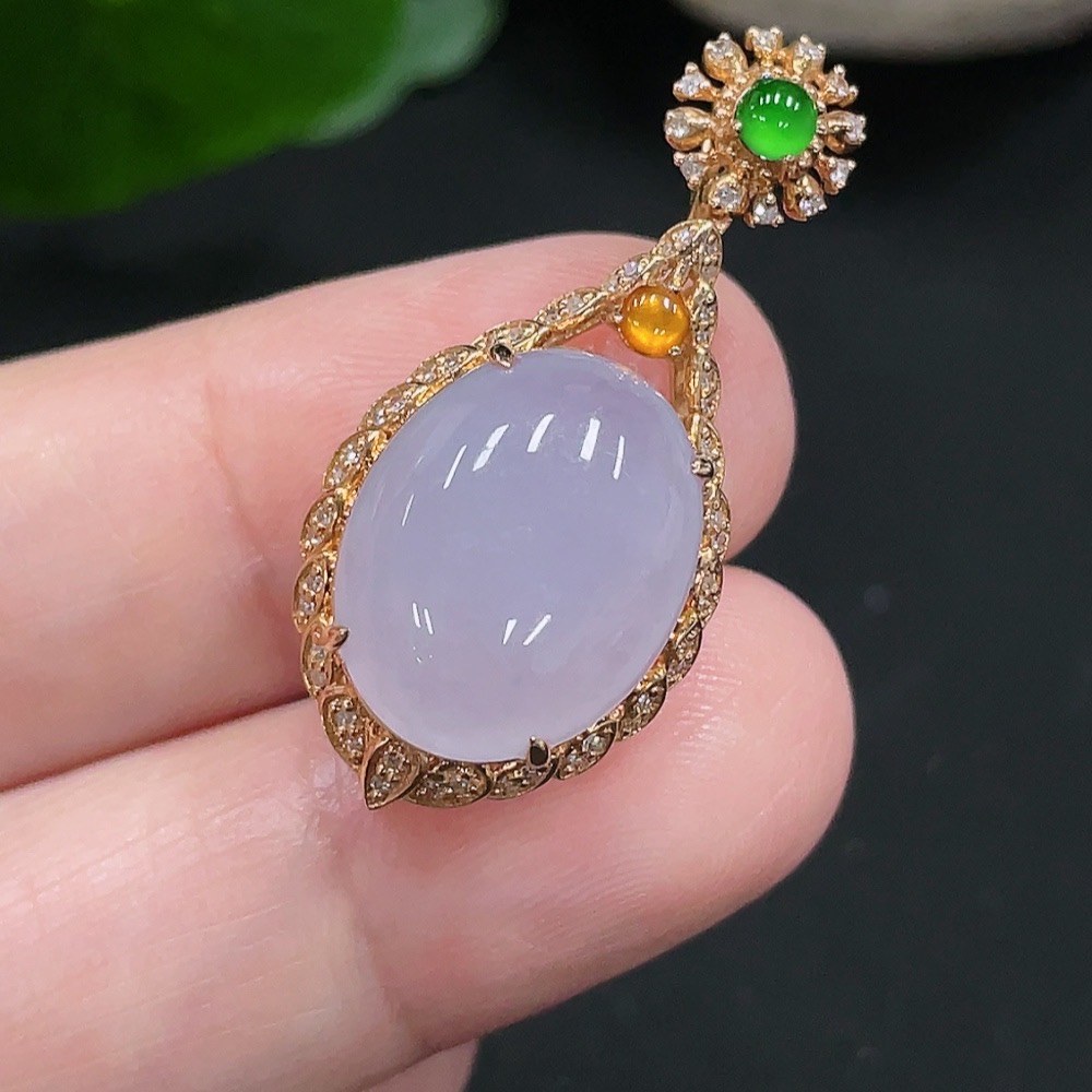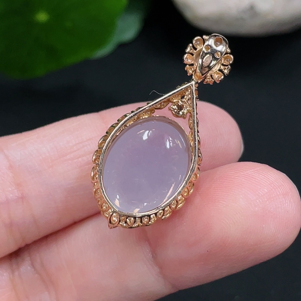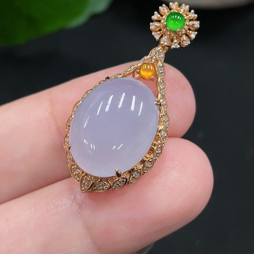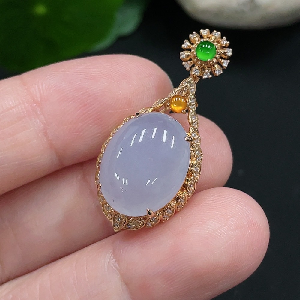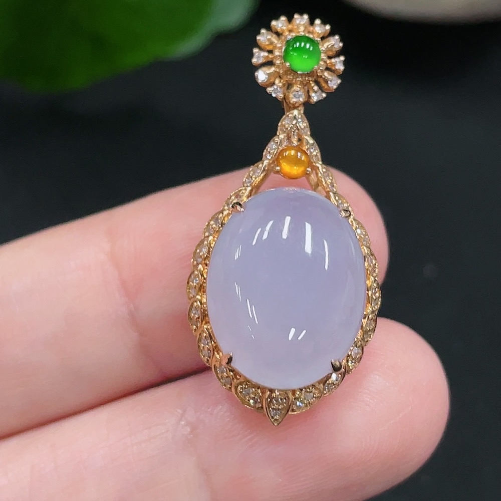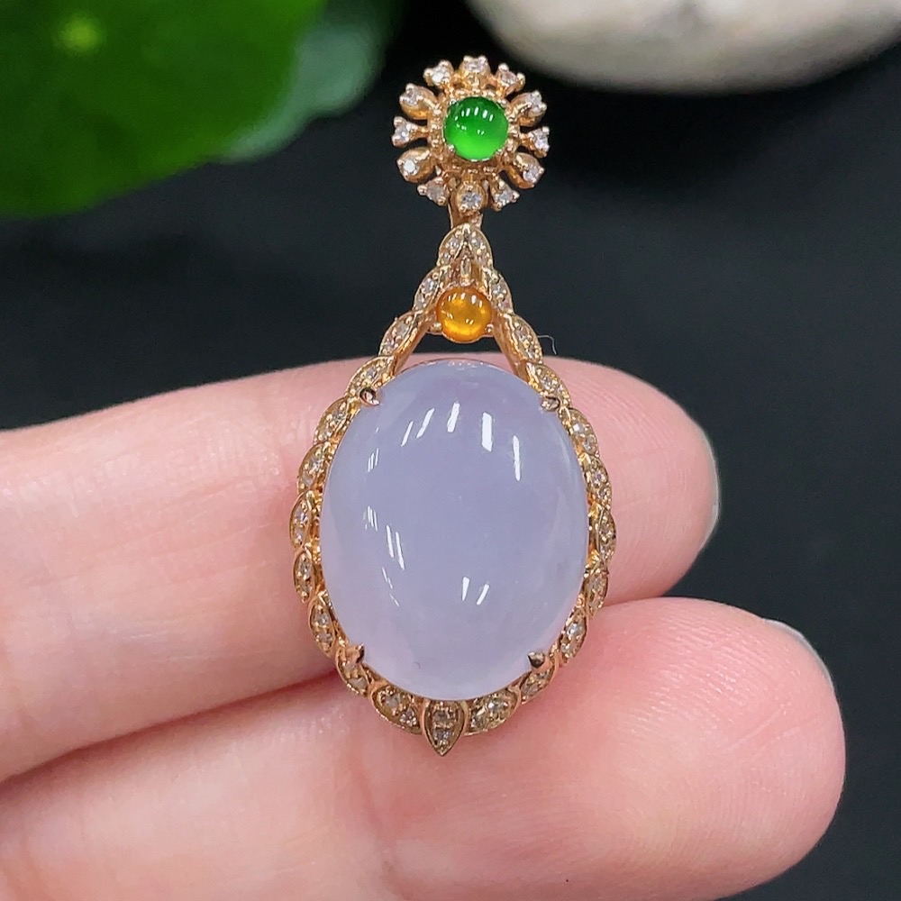 Jadeite Inlaid Pendant 18K Gold Total Weight Approx.4g