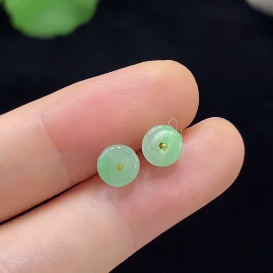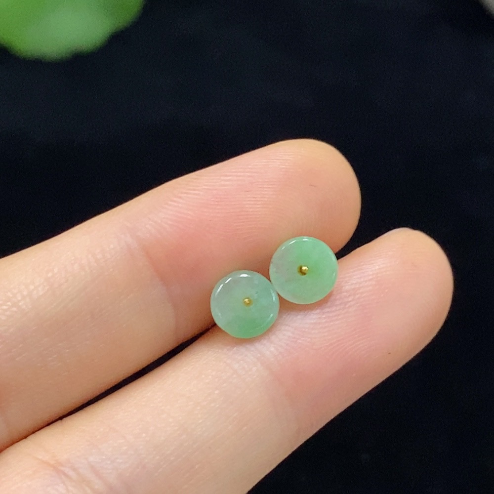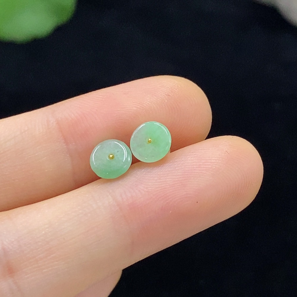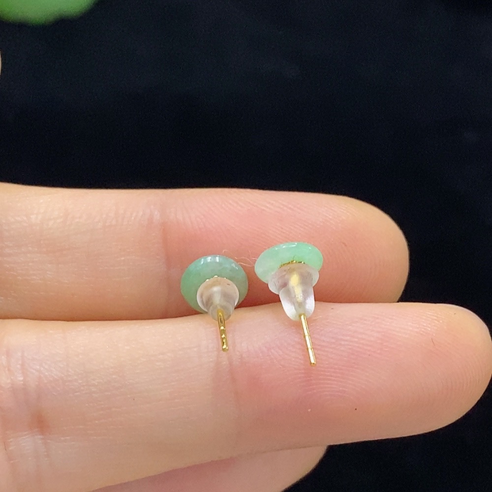 Jadeite Earrings with 18K Gold Setting Total Weight Approx. 0.38g