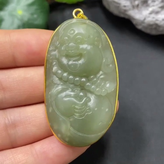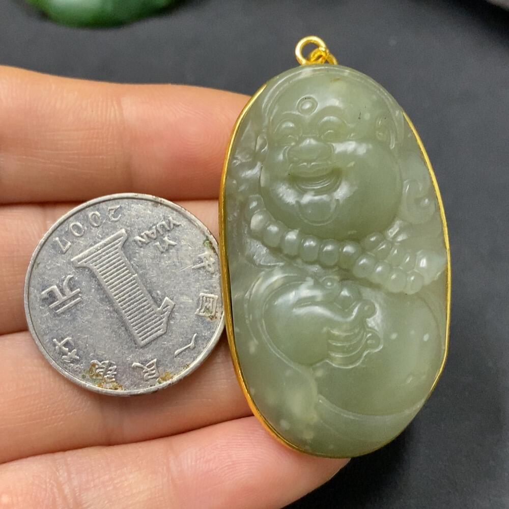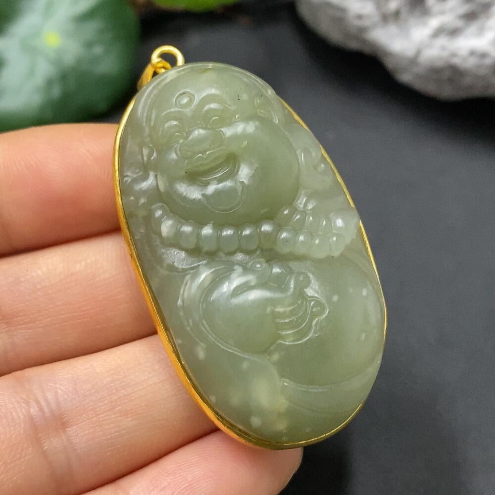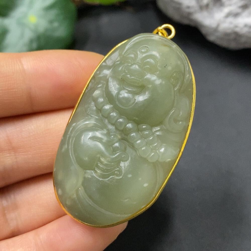 Hetian Jade Inlaid Pendant with Cracks, Non-Gold Inlaid, Total Weight 29g