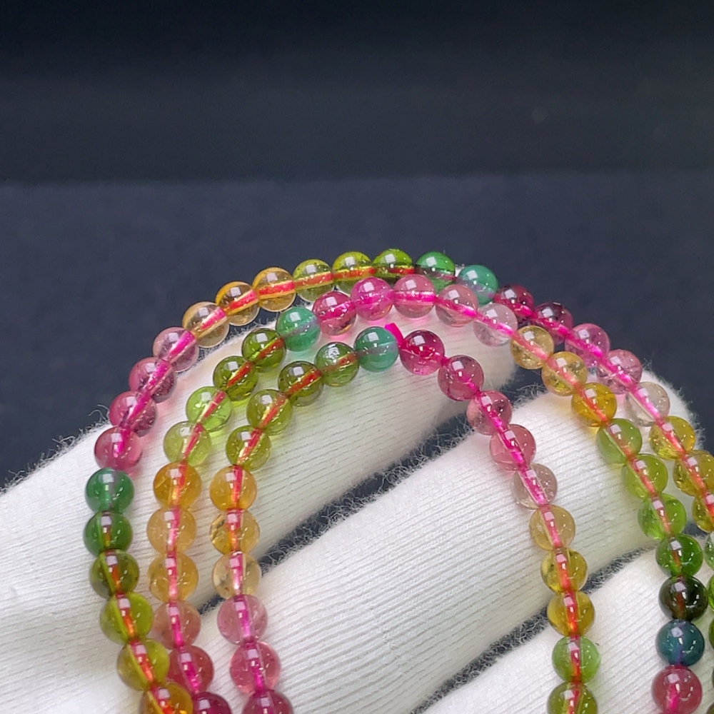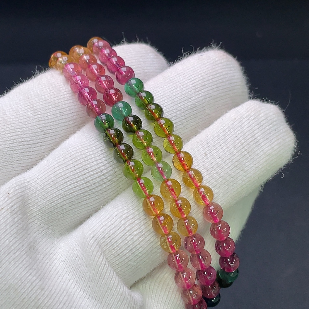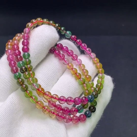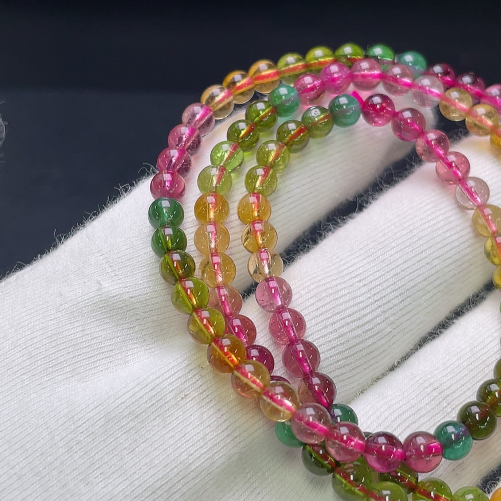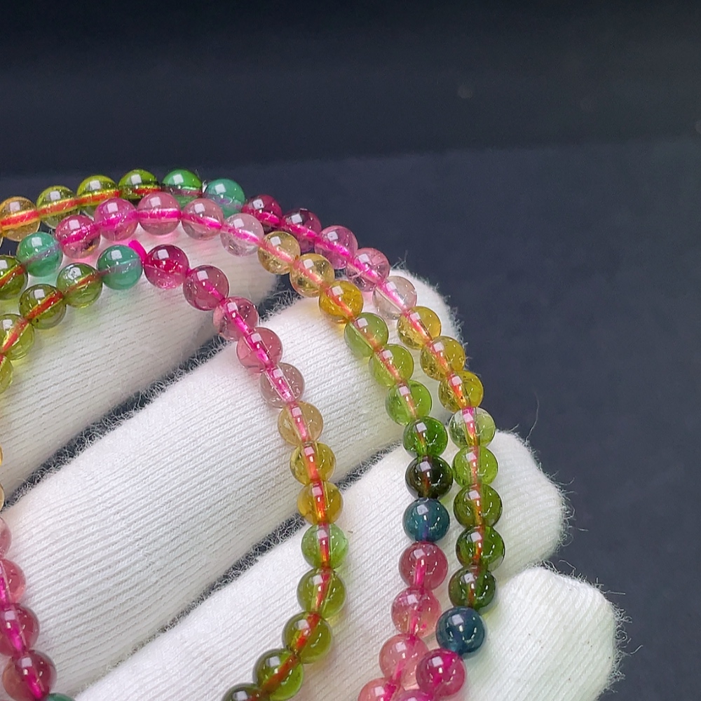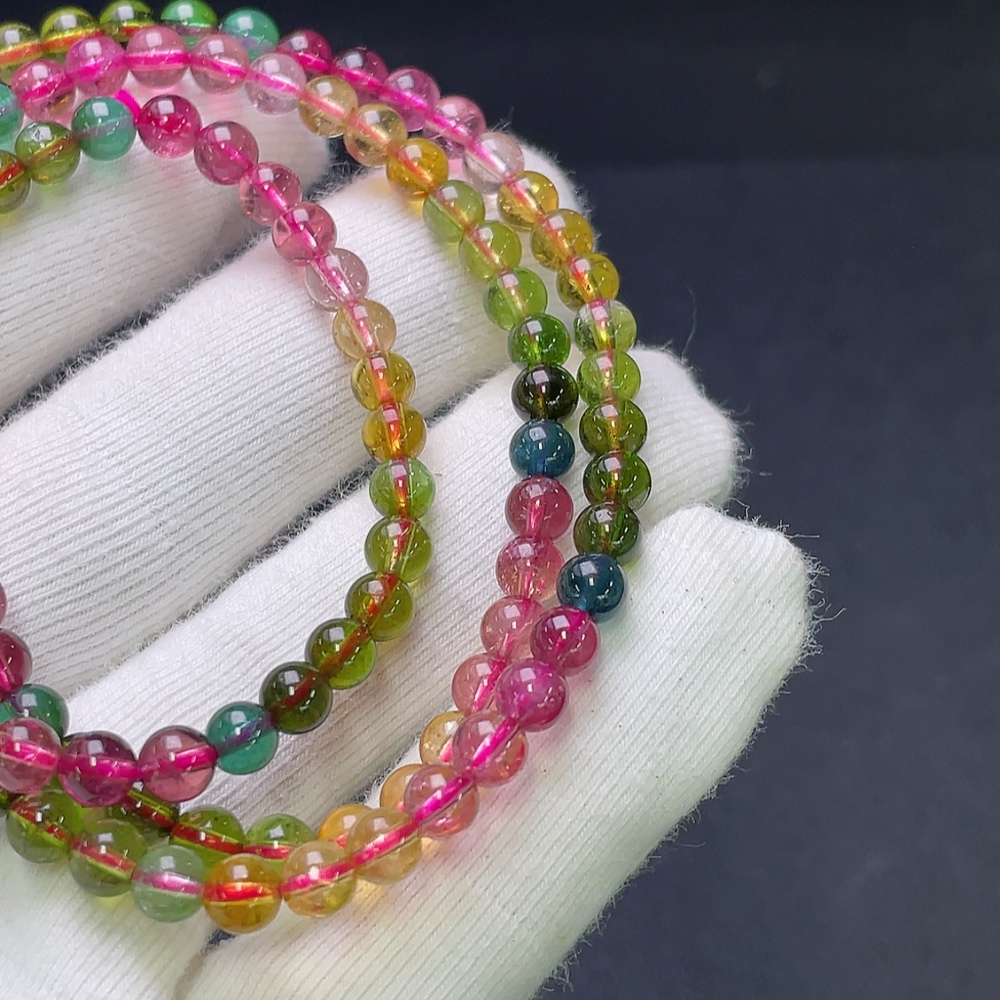 Tourmaline bead necklace with visible organic inclusions, total weight approx. 20g, bead size 4.7mm