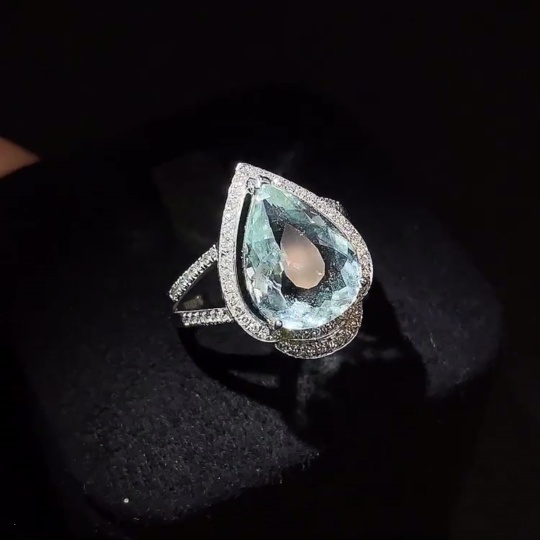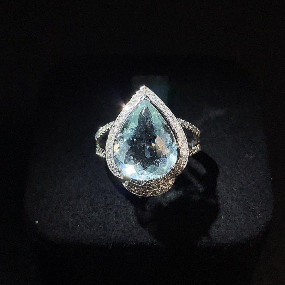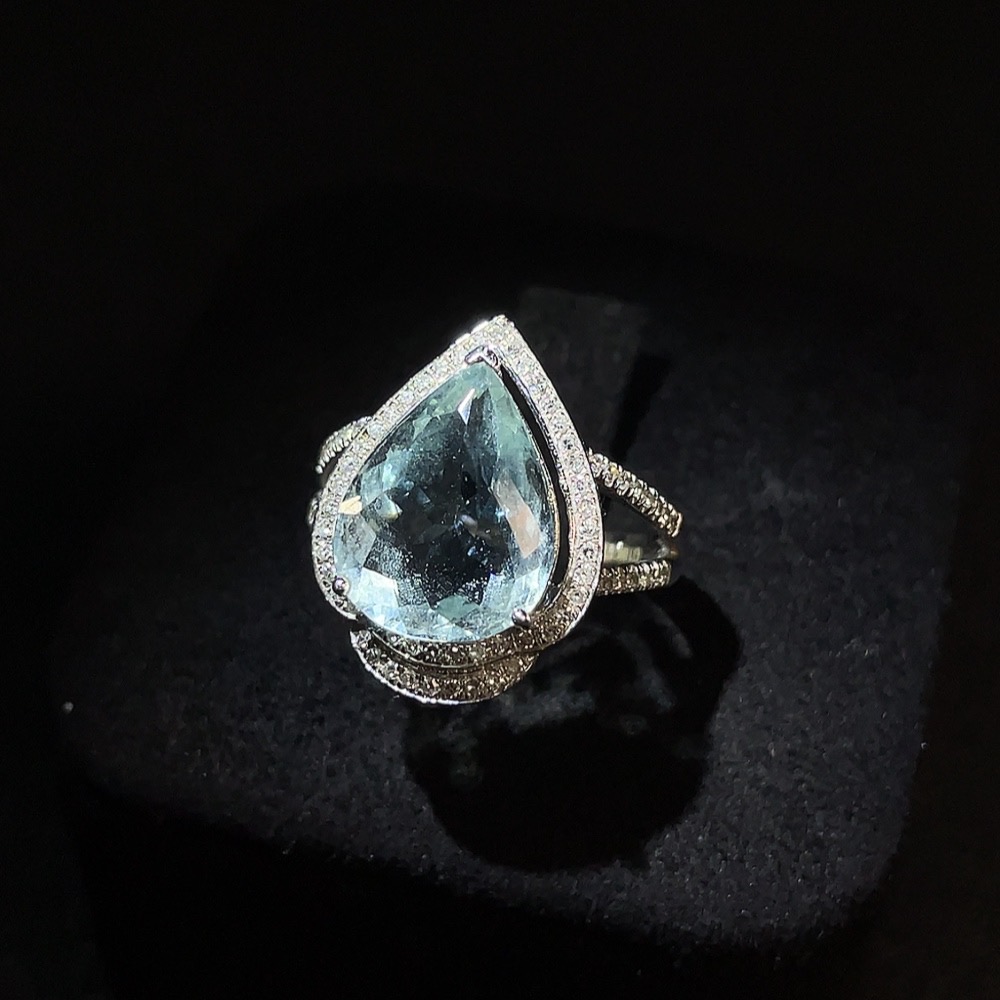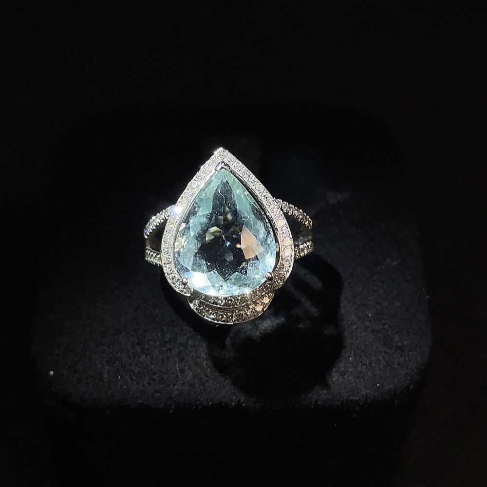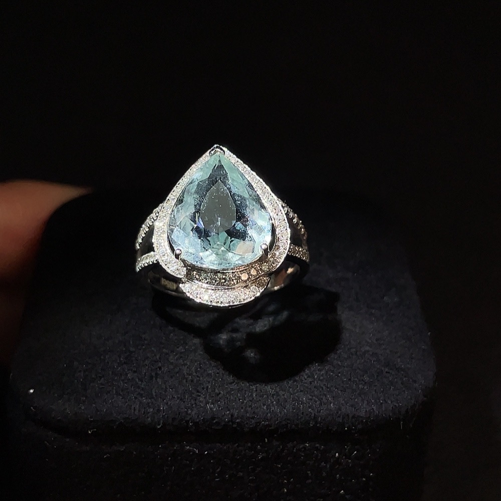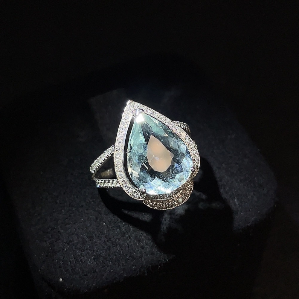 Aquamarine Ring 18K Gold Size 12 Approx. 4.03g With Diamond Accents