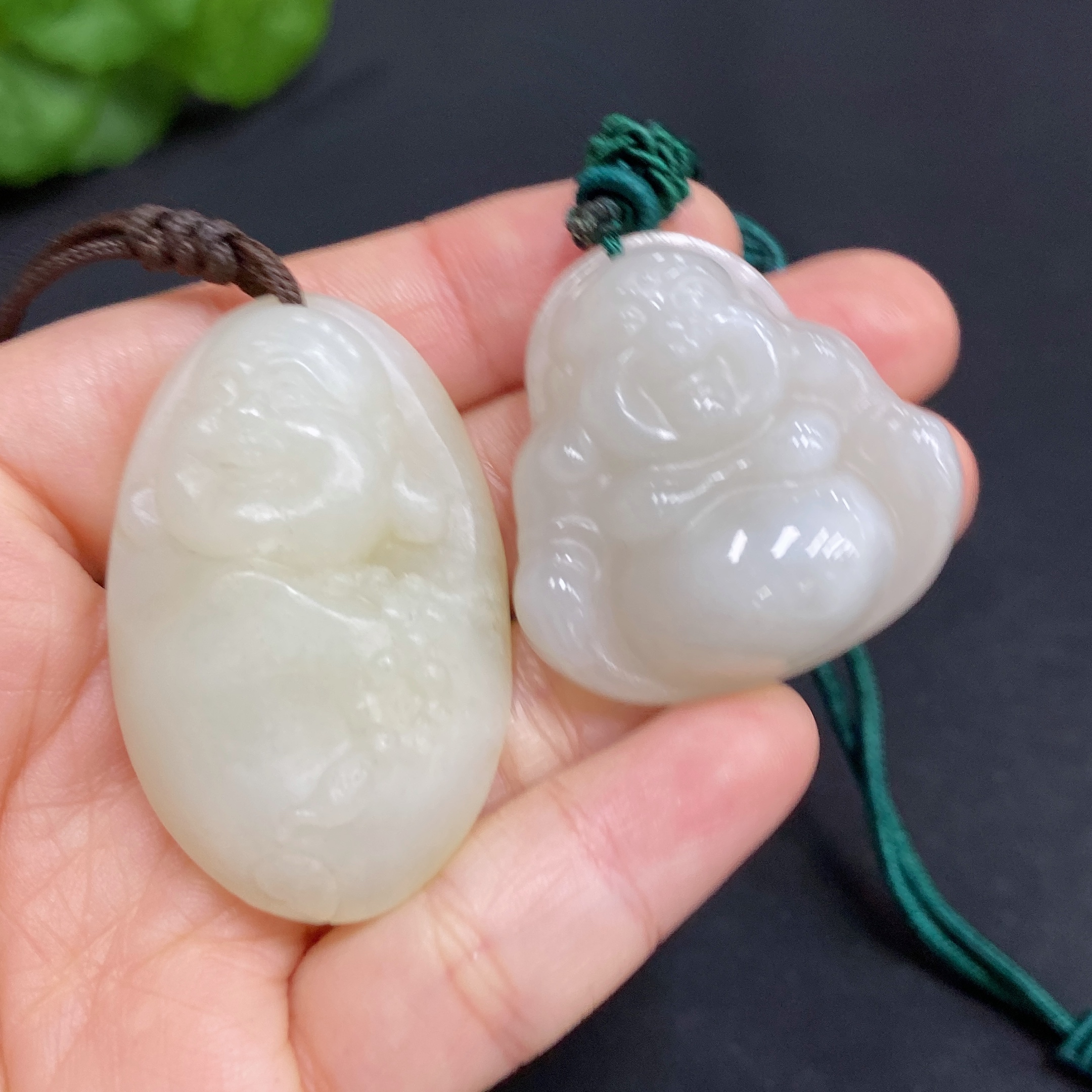 Hetian Jade Pendant - Buddha - Total Weight (including rope): 40.3g
