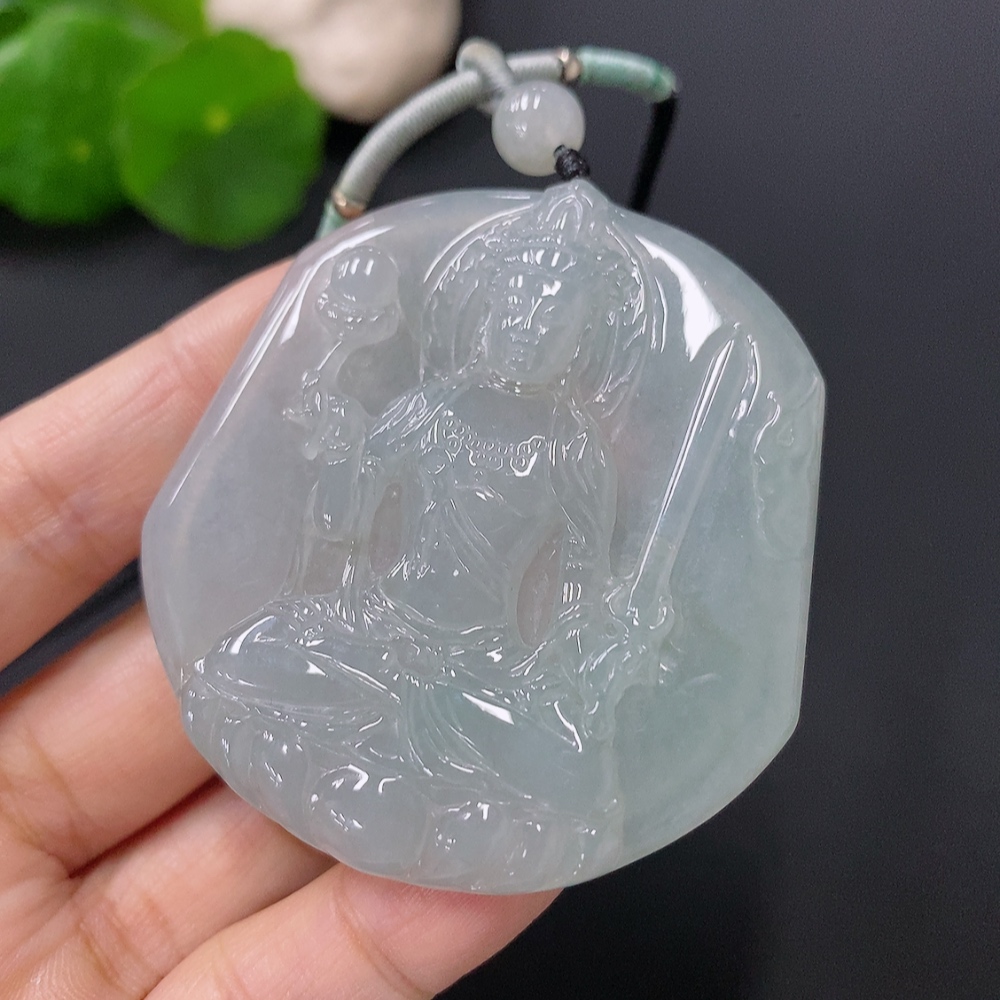 Jadeite Pendant of Akashagarbha Total Weight Approx. 33g Including Rope