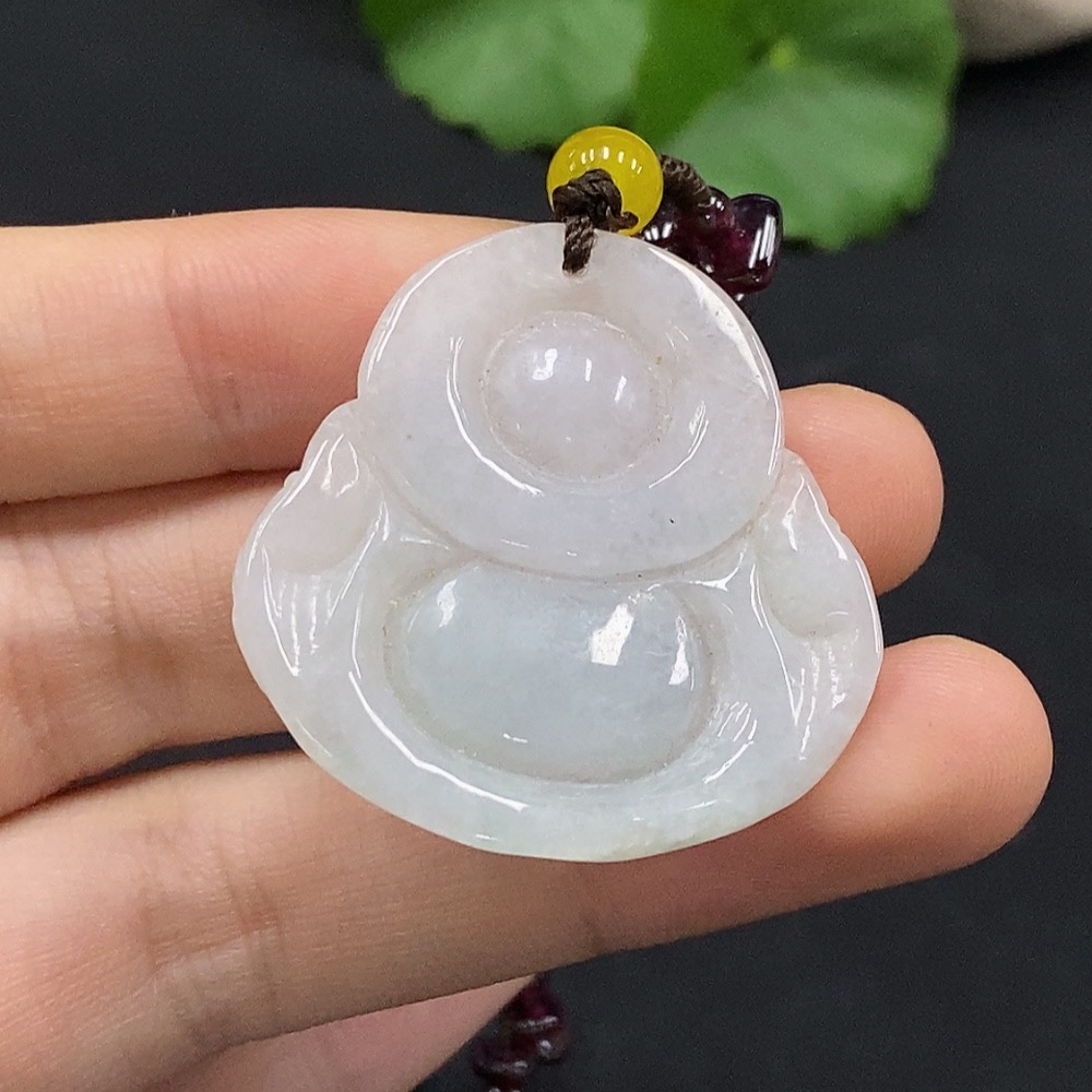 Jadeite Buddha Pendant Total Weight Approx. 17.6g (Including Rope Weight) (Non-Grade A Chain)
