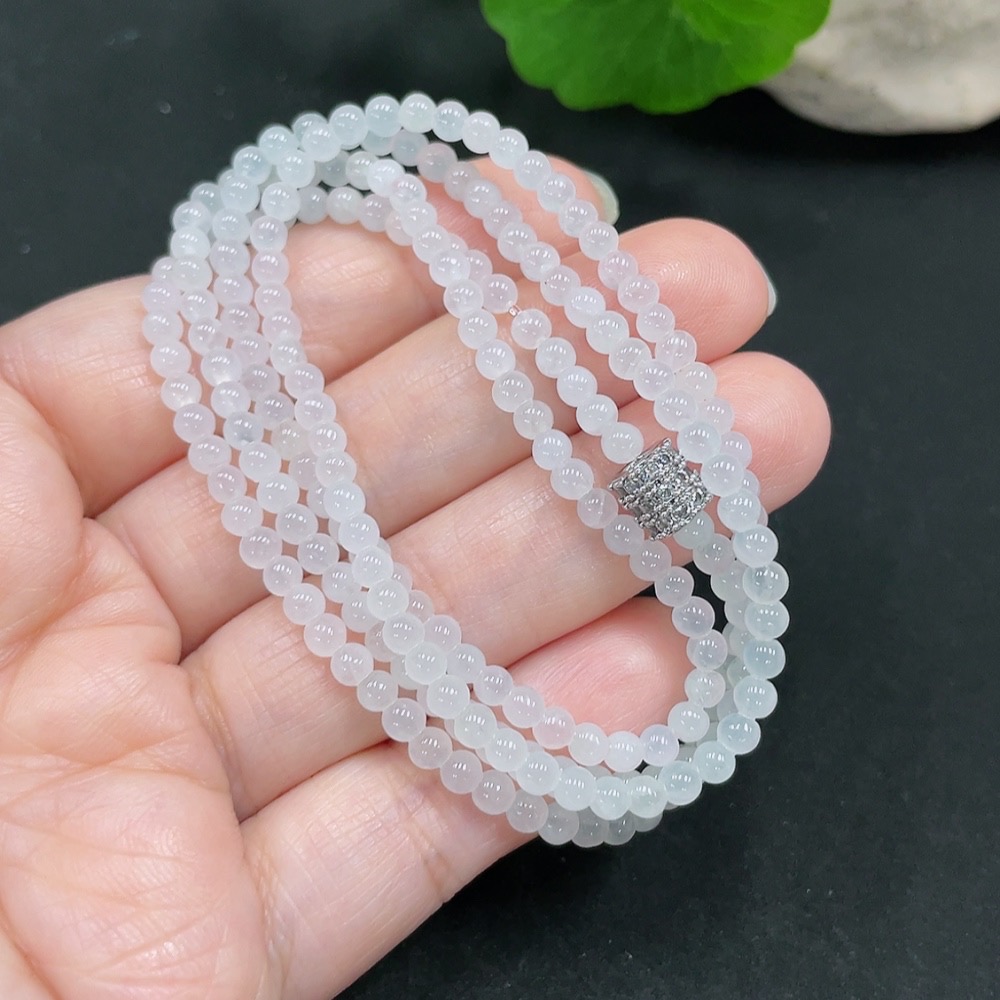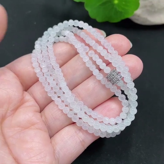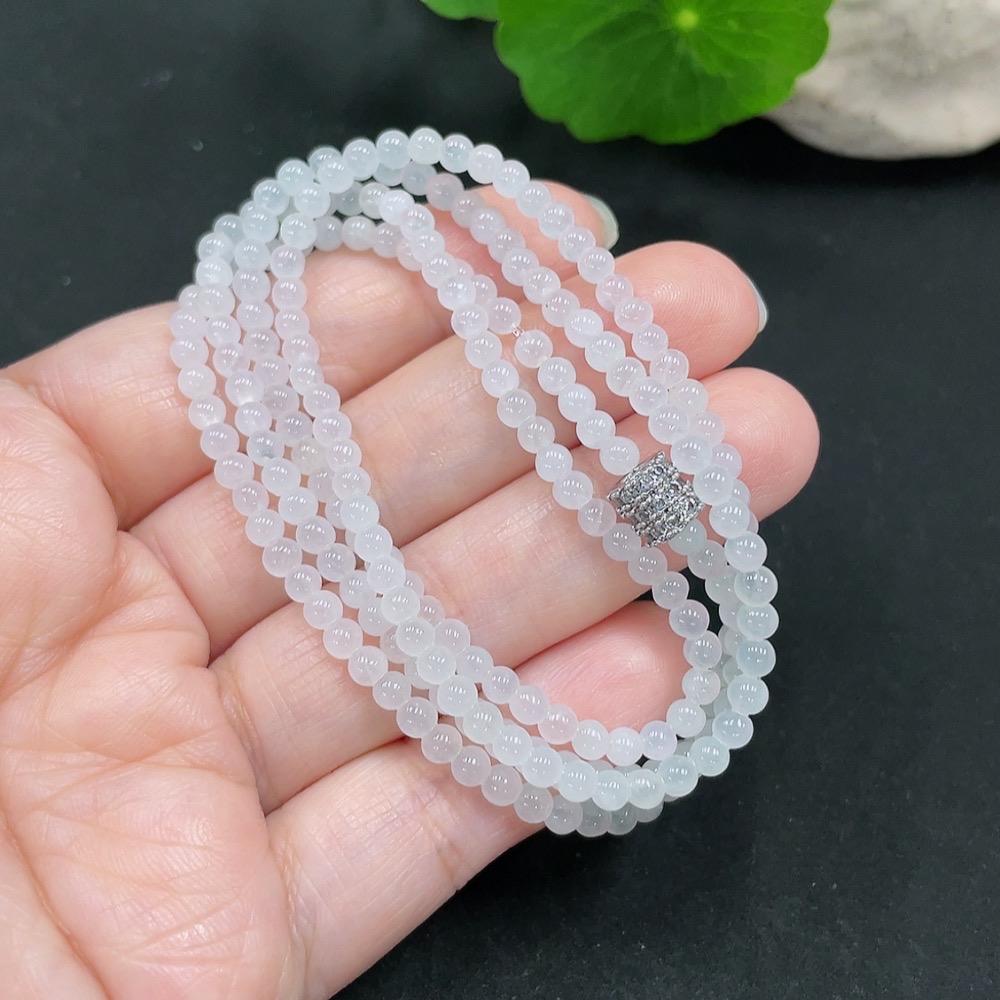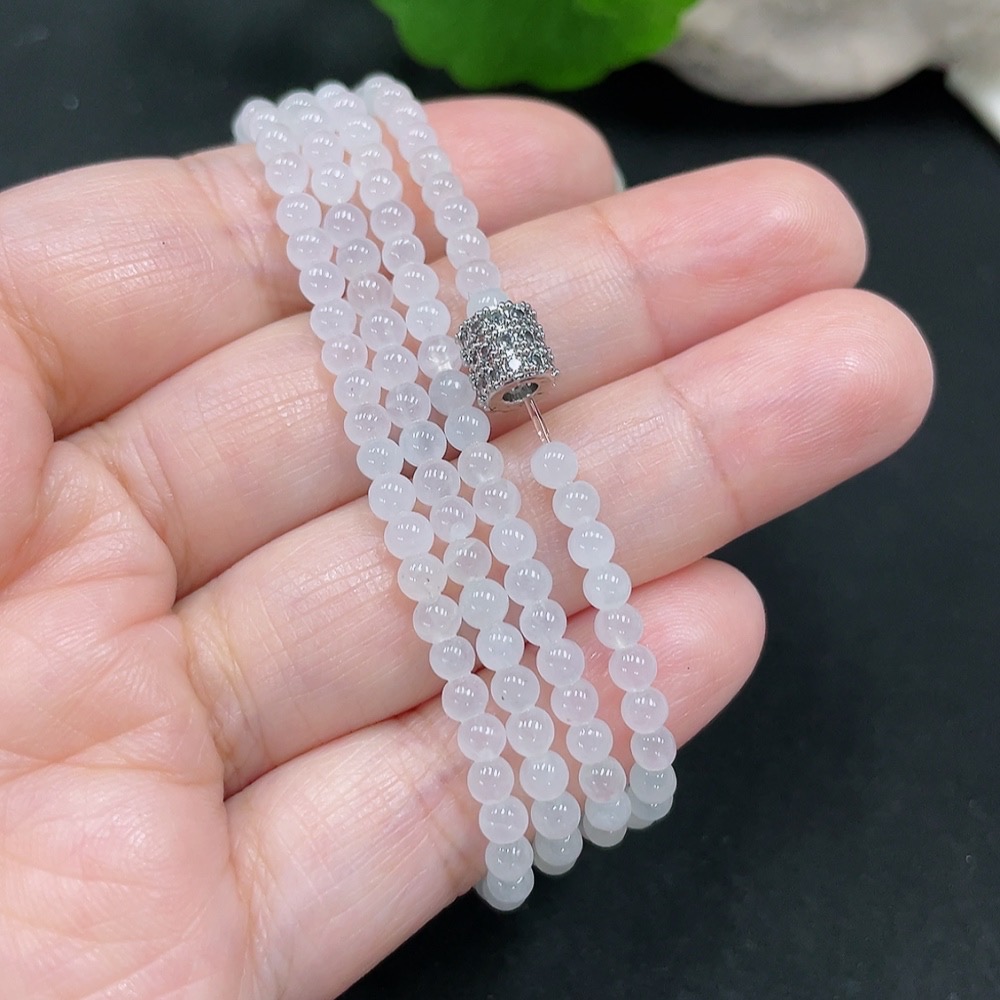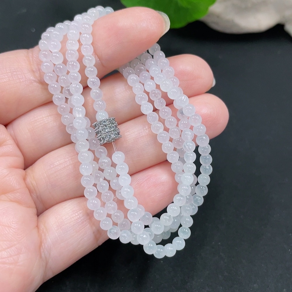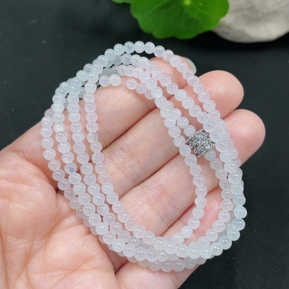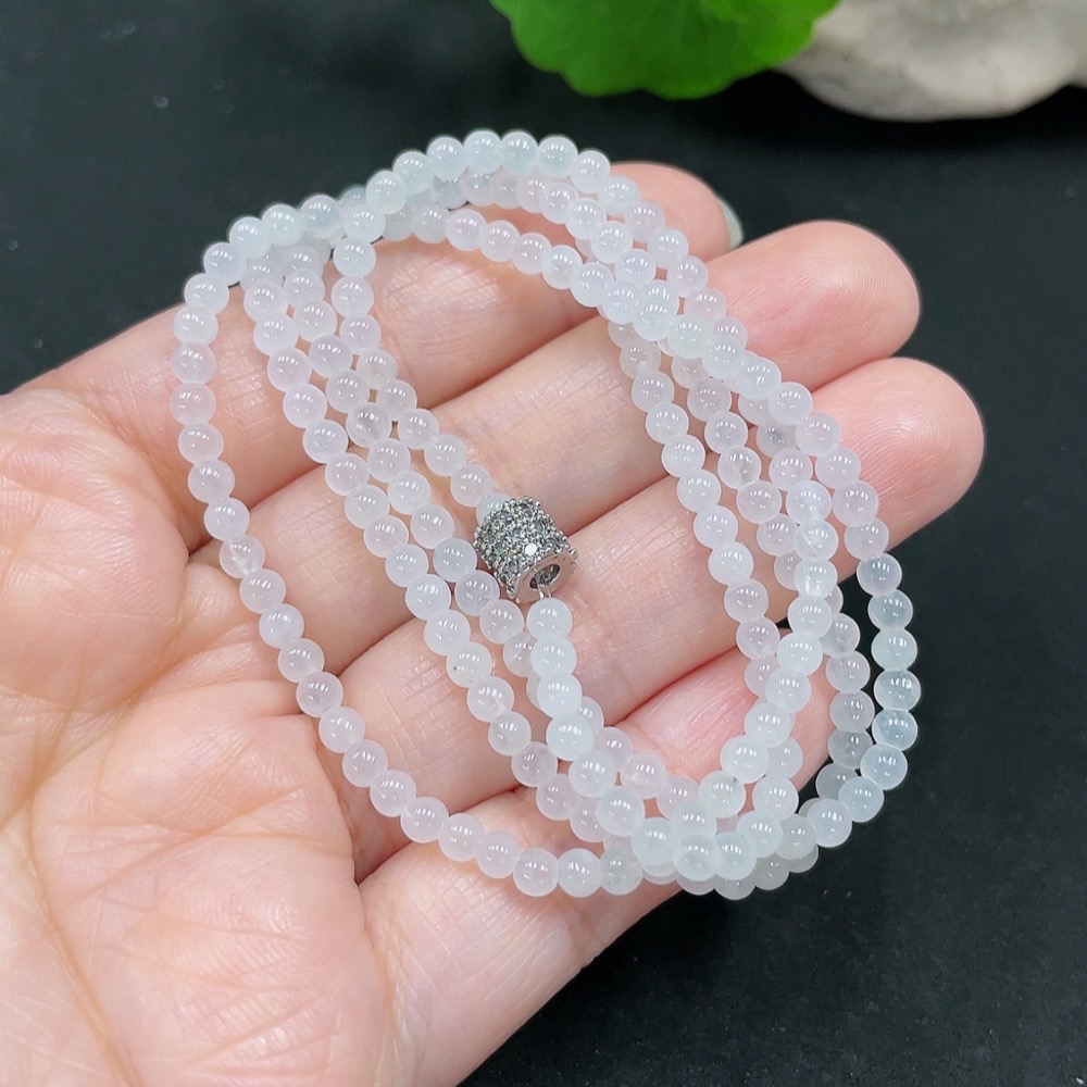 Jadeite Beaded Necklace Approx. 3.4mm Total Weight Approx. 14.36g Without Gold Inlay