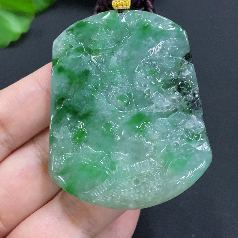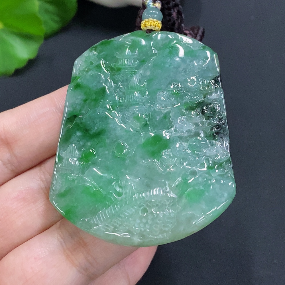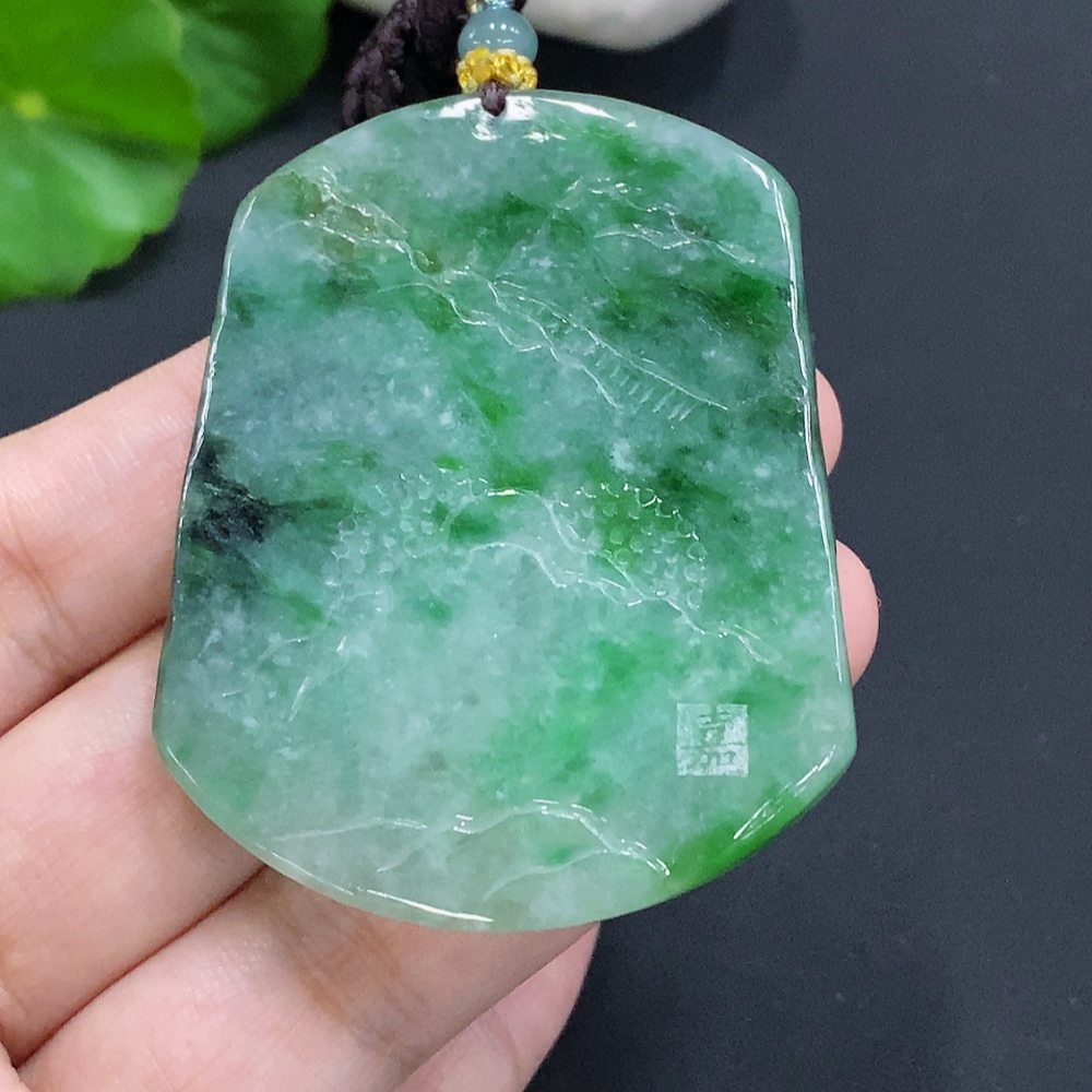 Jadeite Landscape Pendant with Cord, Total Weight Approx. 40.6g