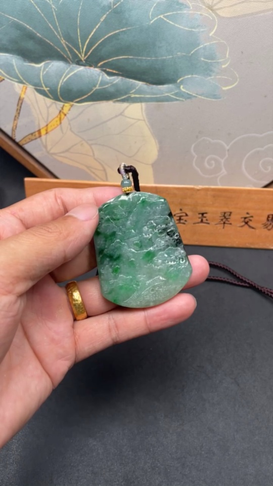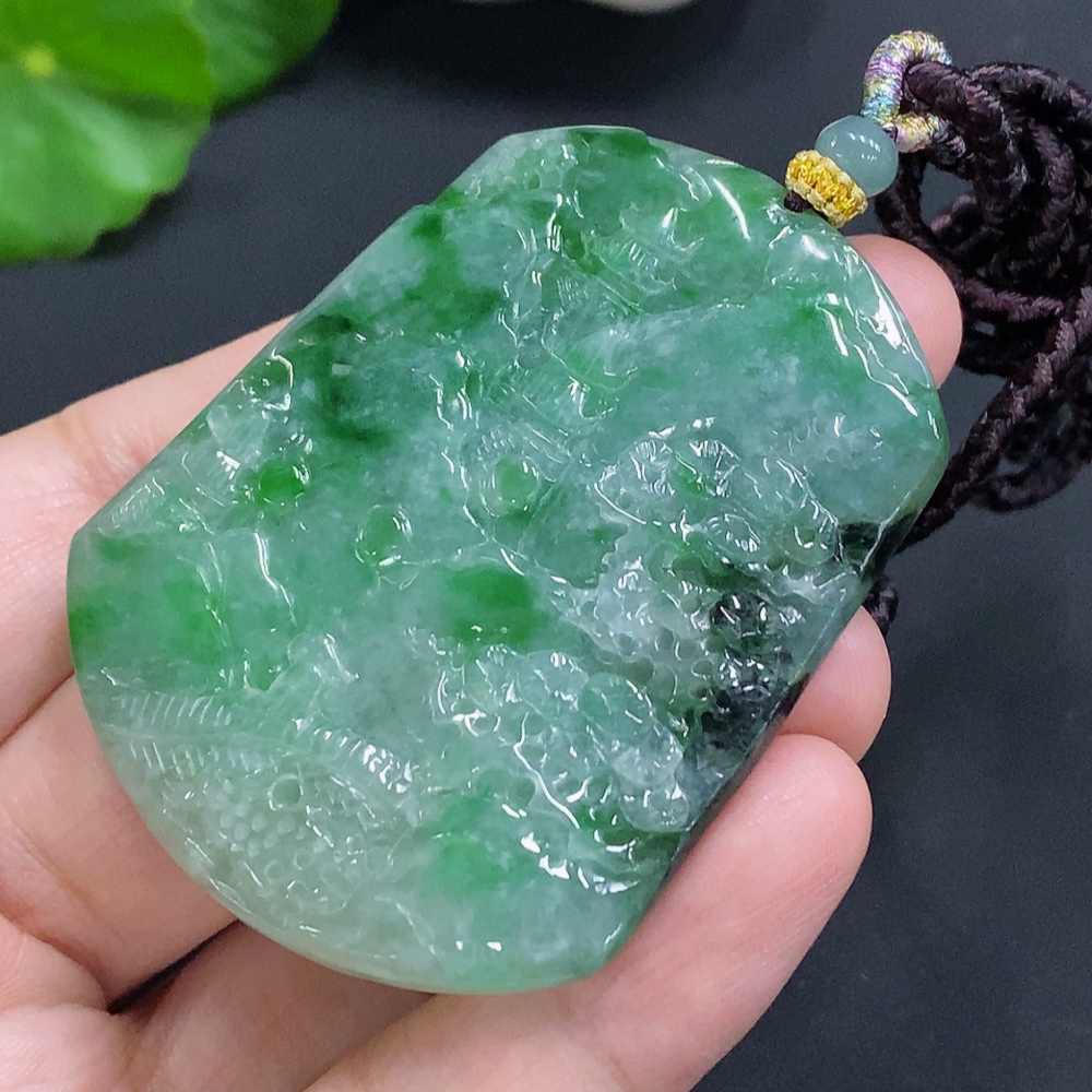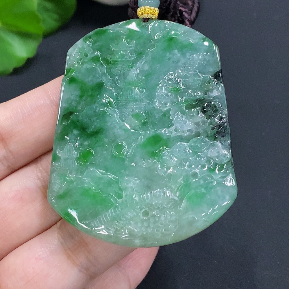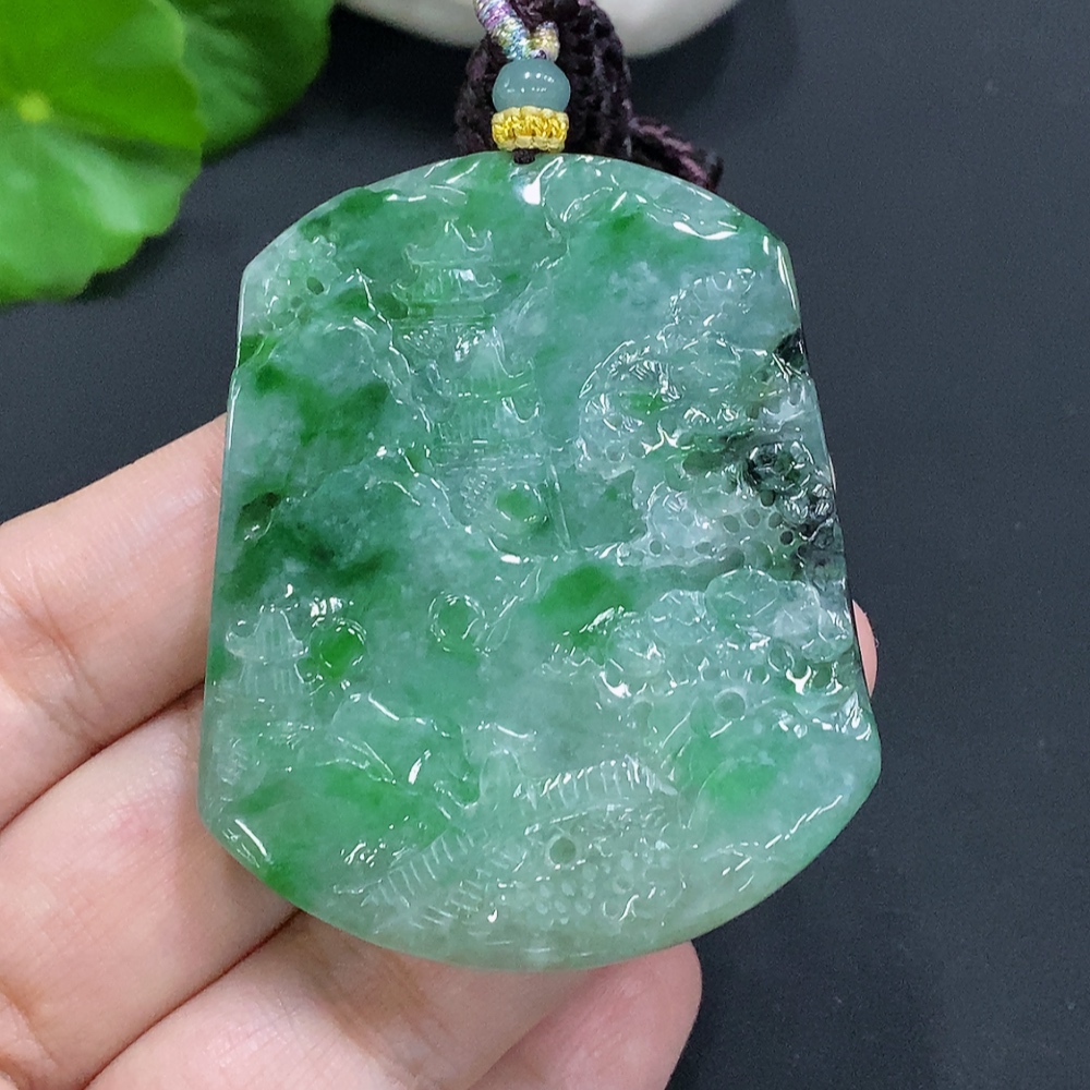Jadeite Landscape Pendant with Cord, Total Weight Approx. 40.6g