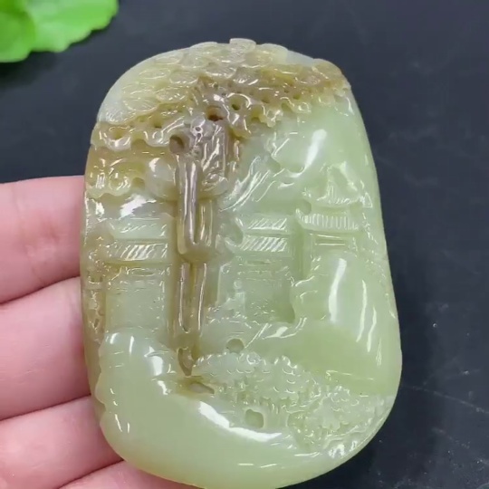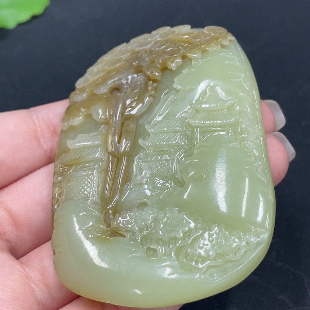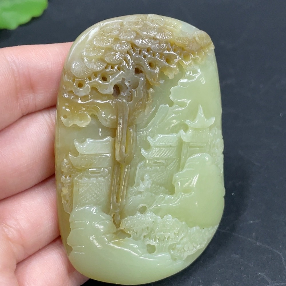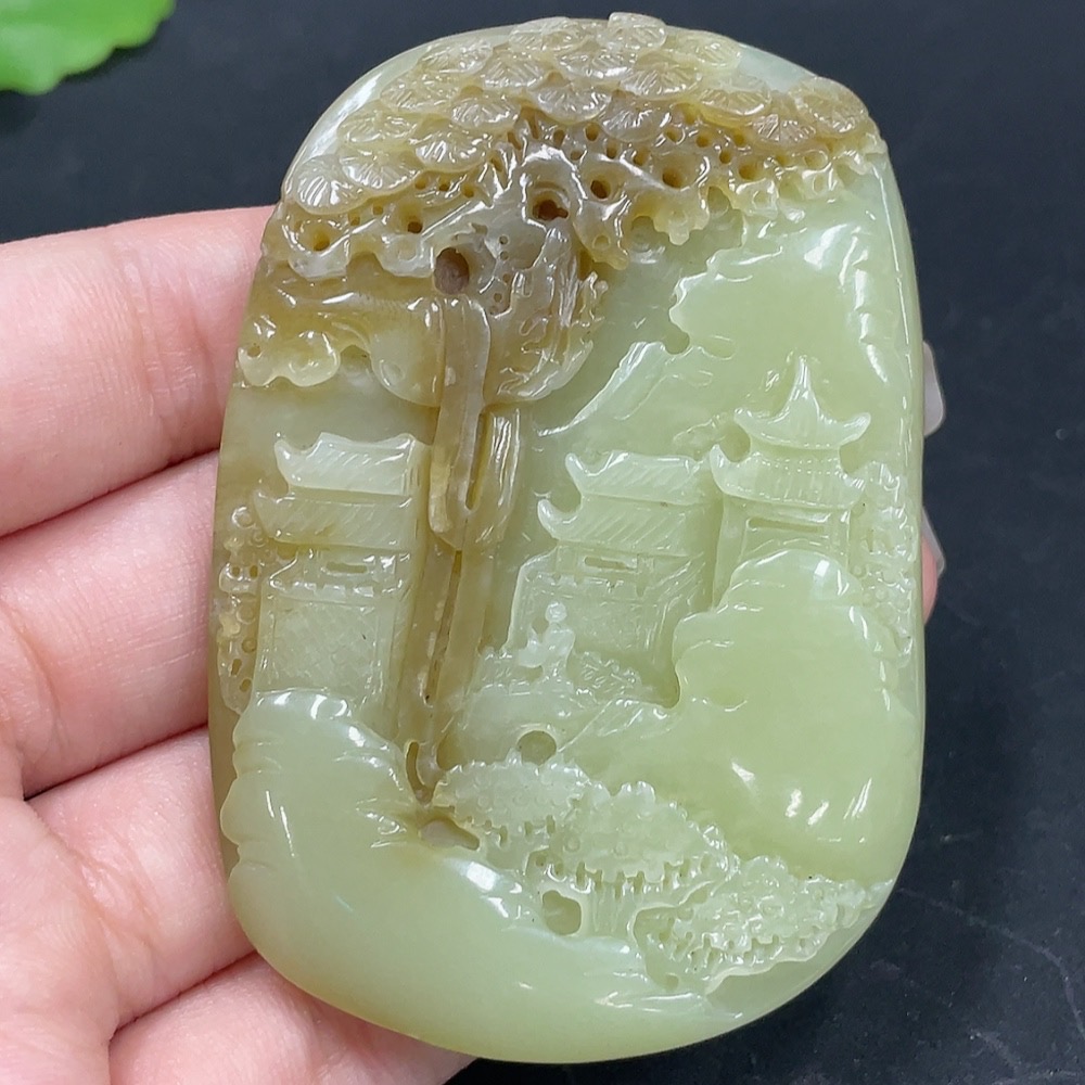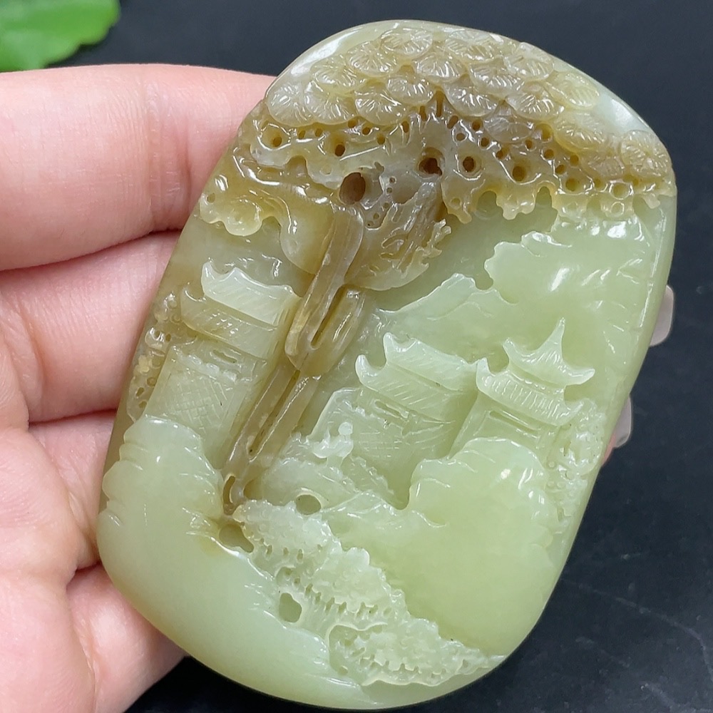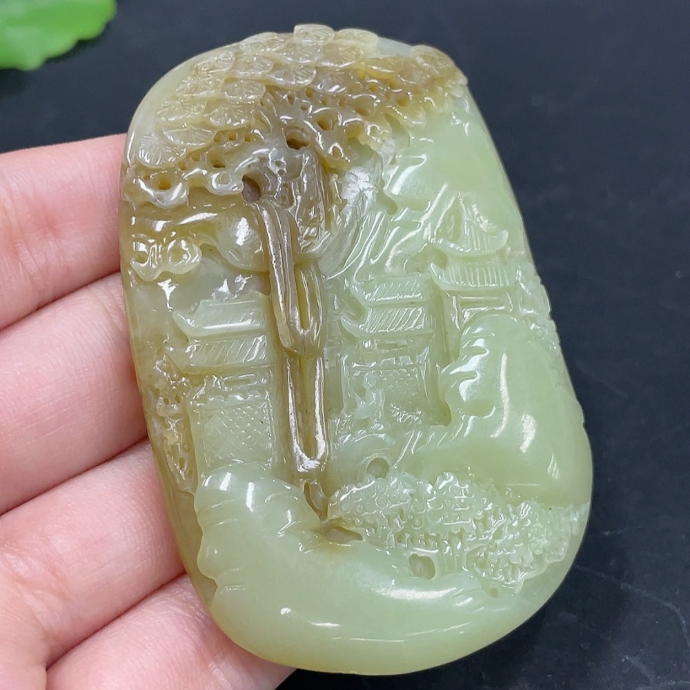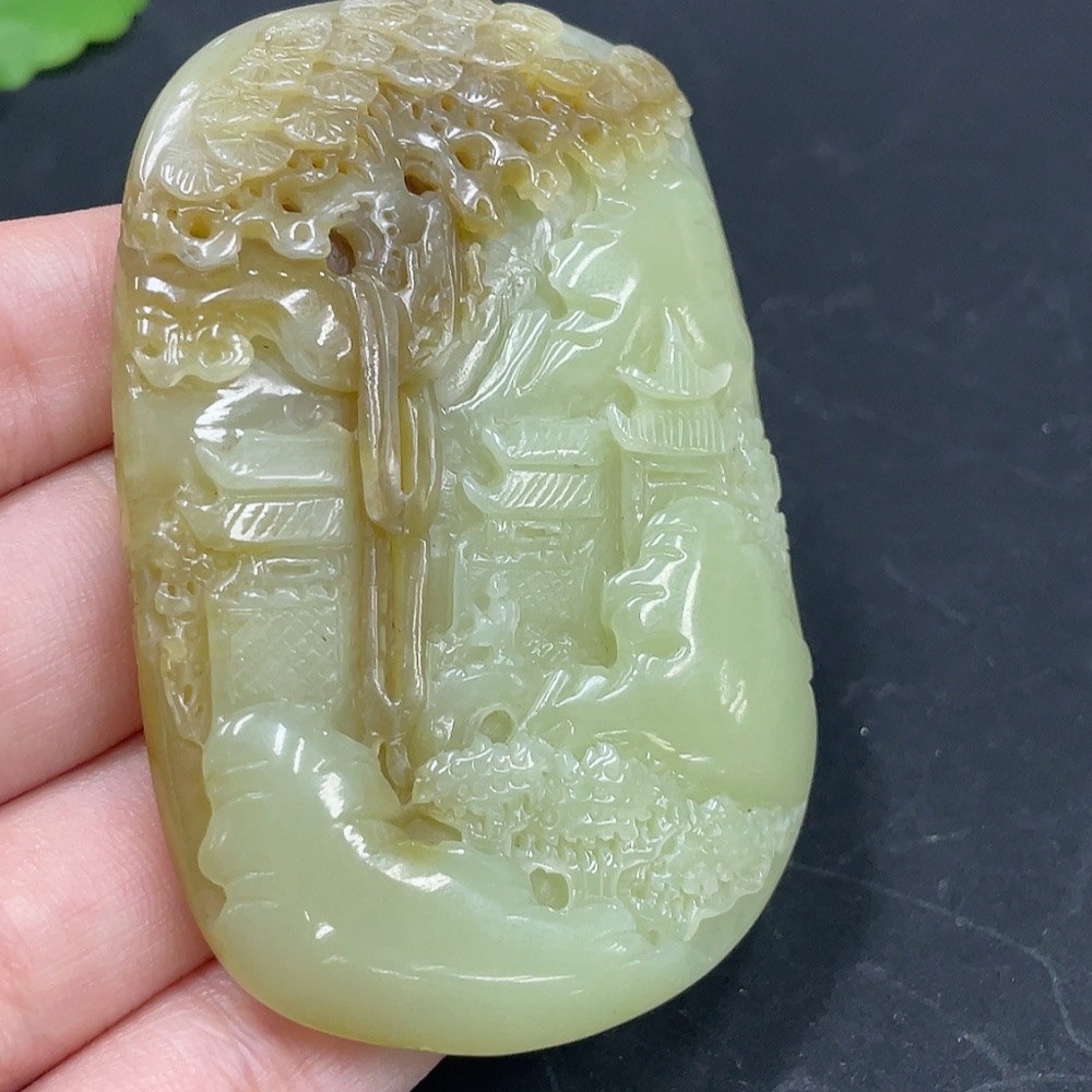 Hetian Jade Pendant - Landscape Plaque, total weight approx. 60.3g