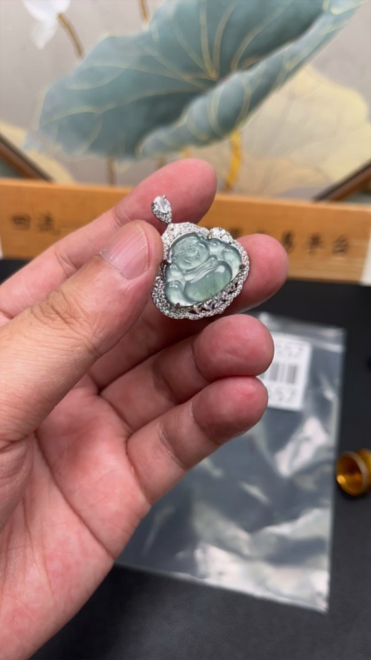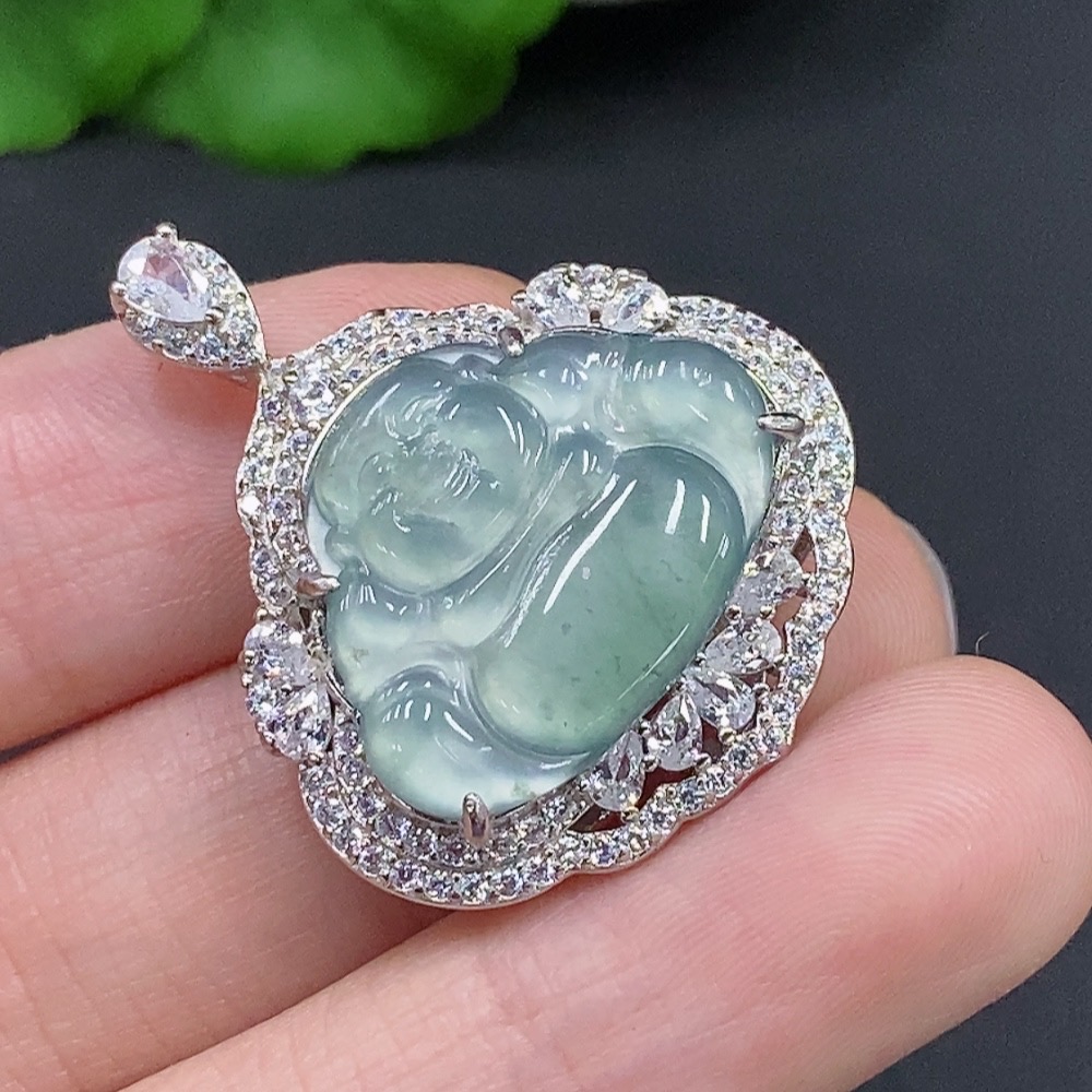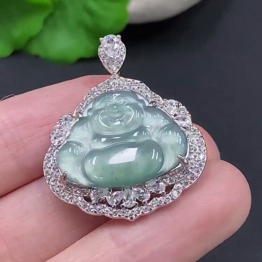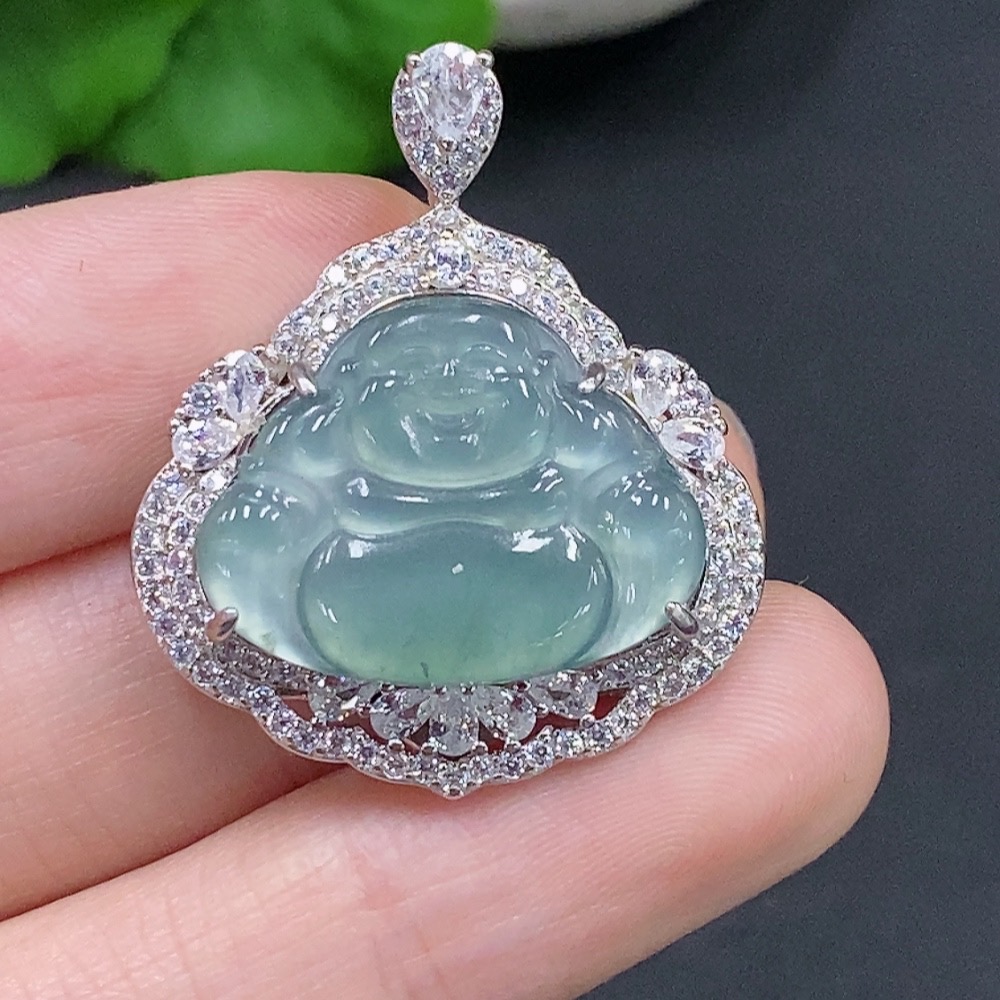 Jadeite Buddha Pendant Inlaid Non-Gold Total Weight About 6.17g
