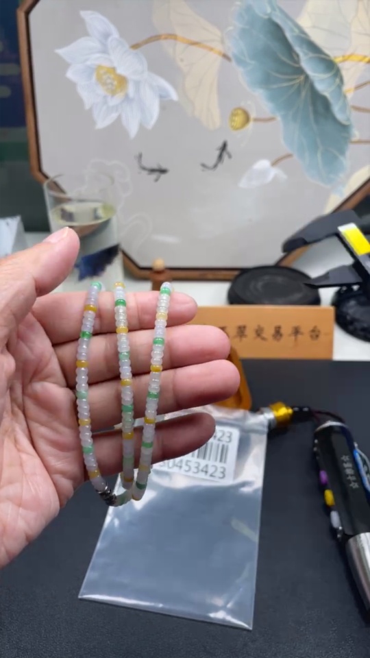 Jadeite Beaded Necklace approx. 4.4mm total weight about 25.9g (color origin undetermined)