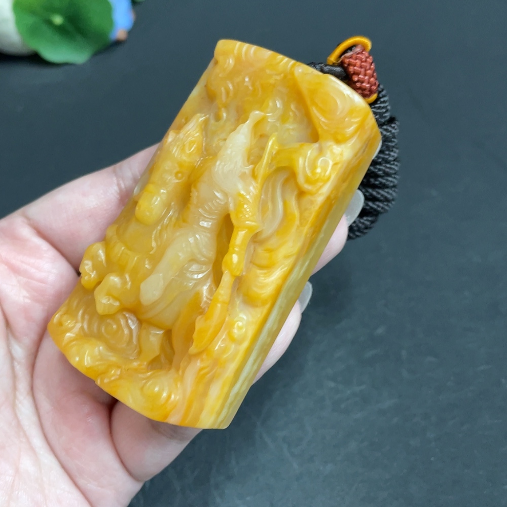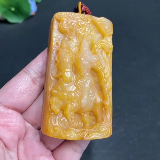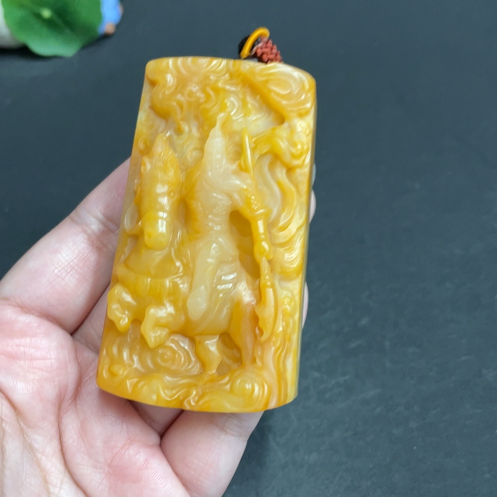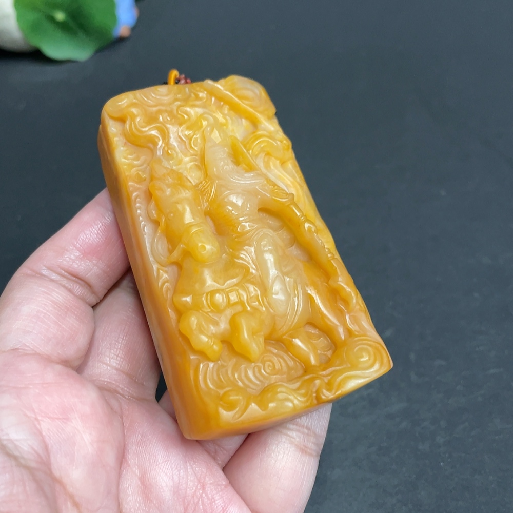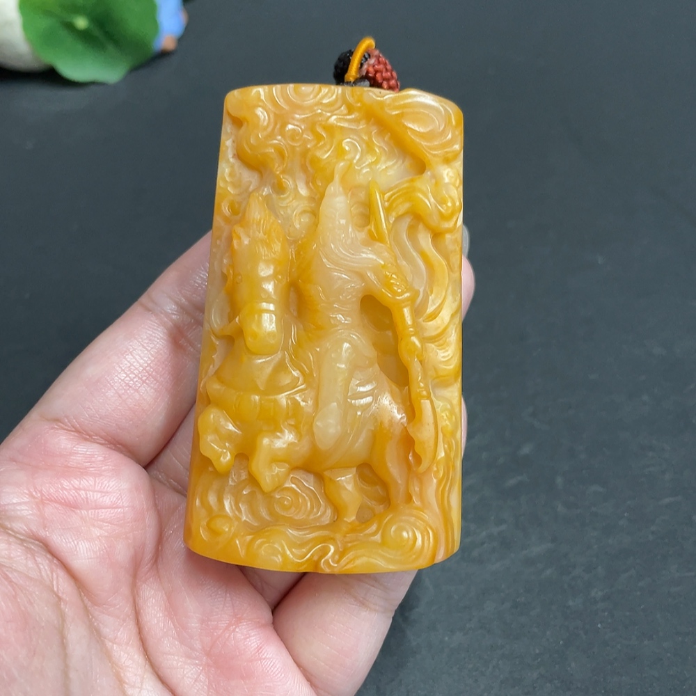 Yellow Dragon Jade Pendant - Guan Gong