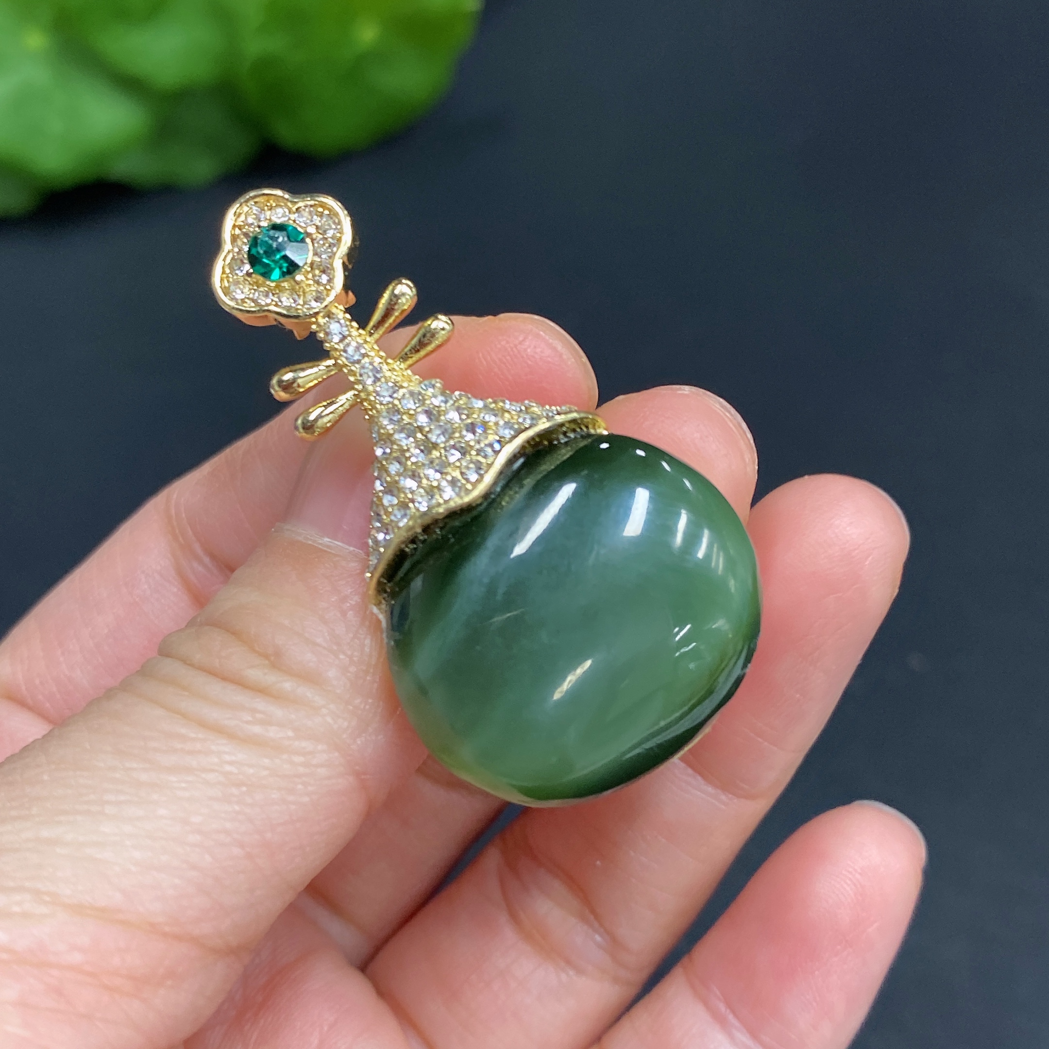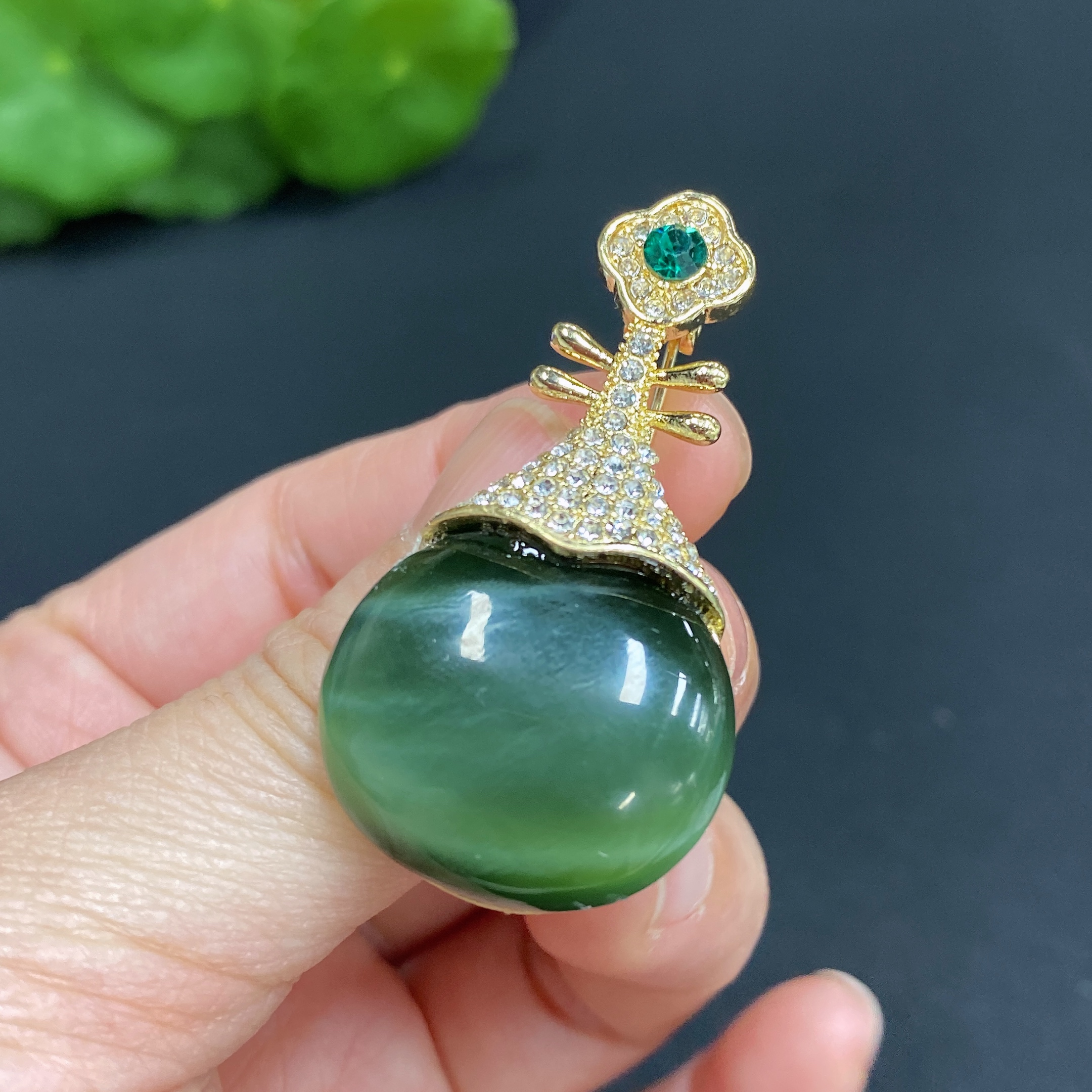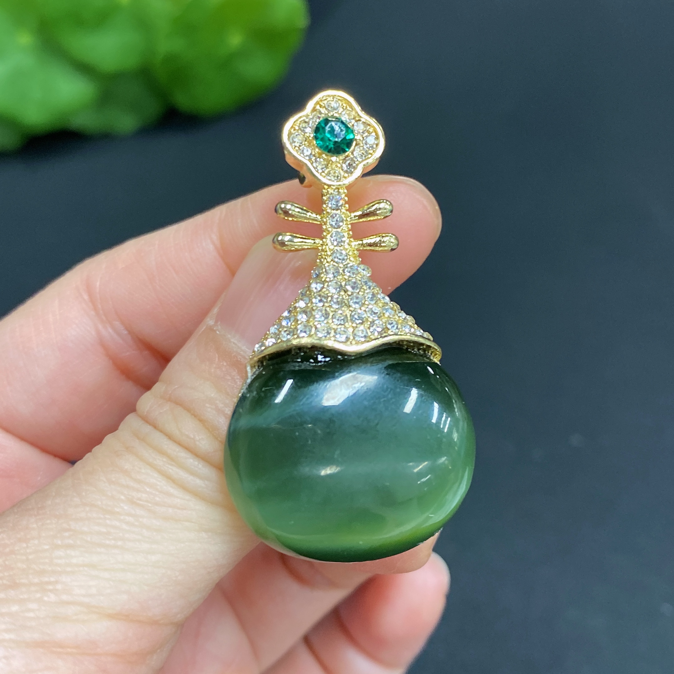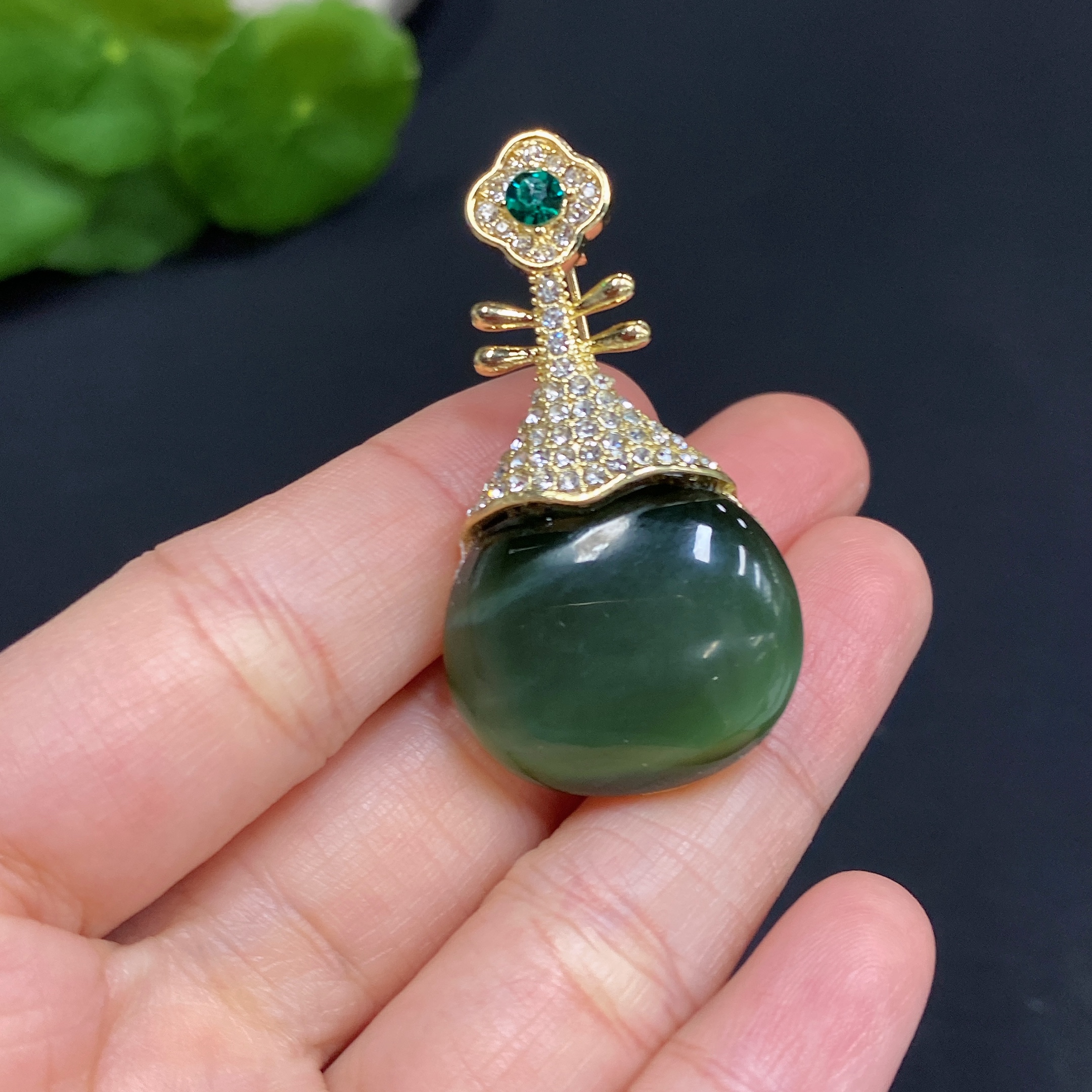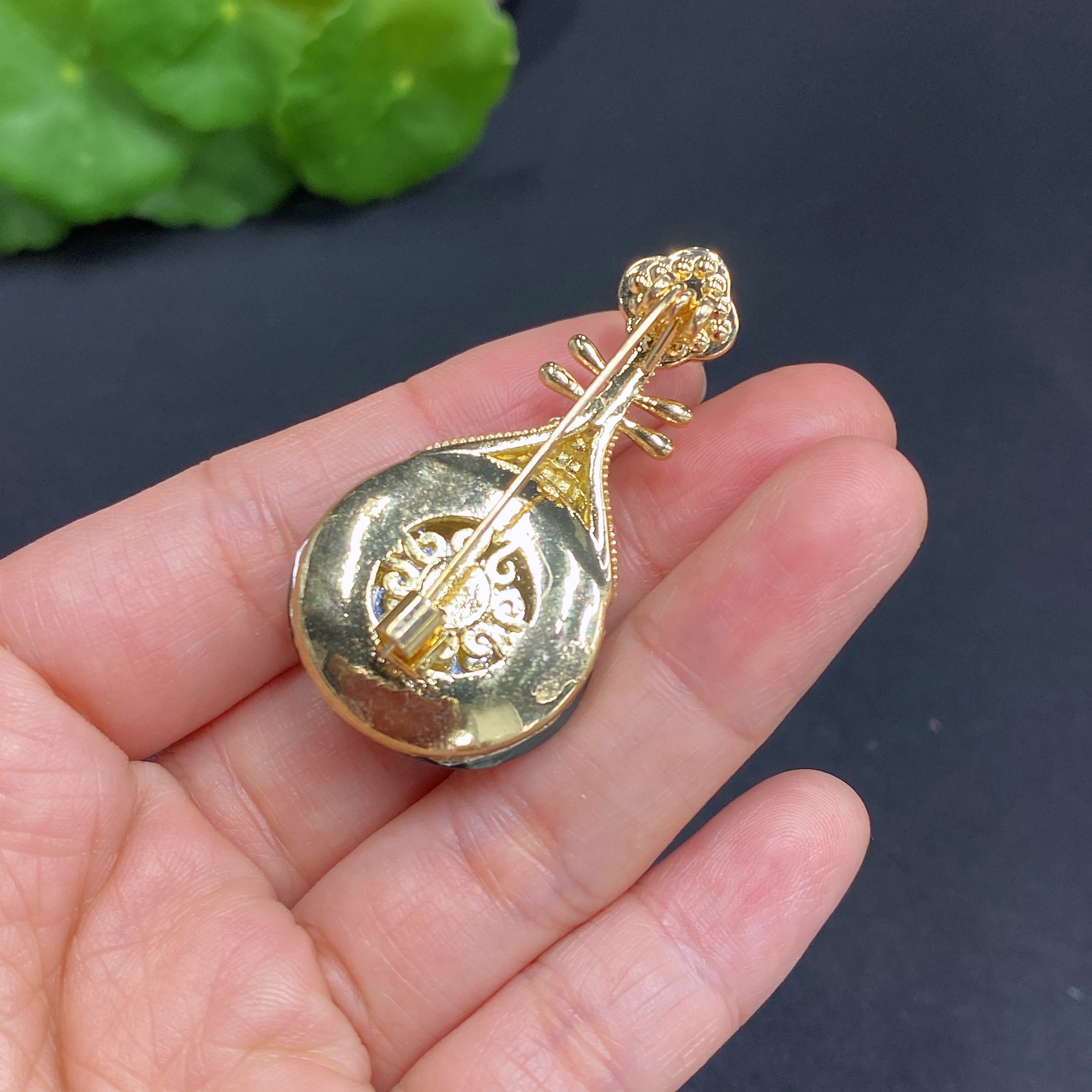 Hetian Jade Inlaid Brooch Non-Gold Total Weight Approx.12.5g