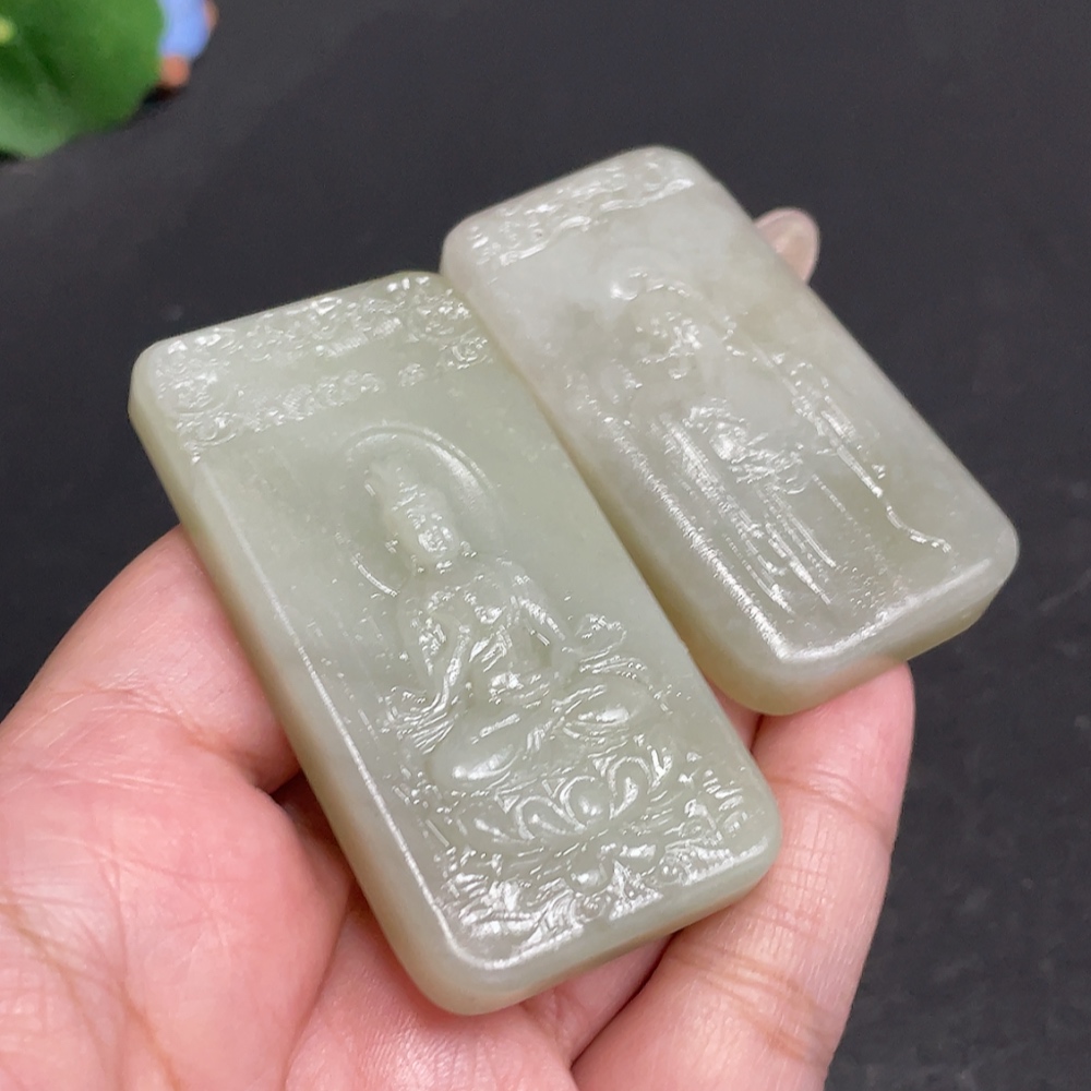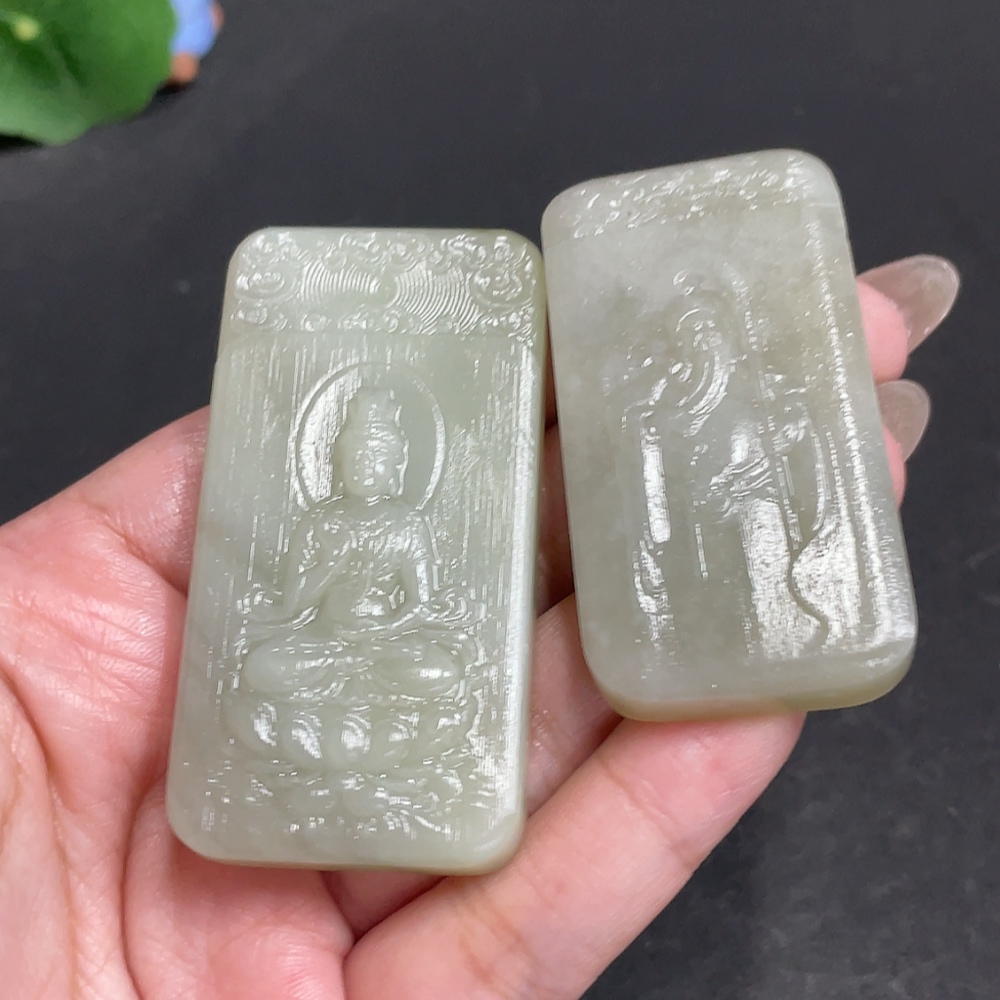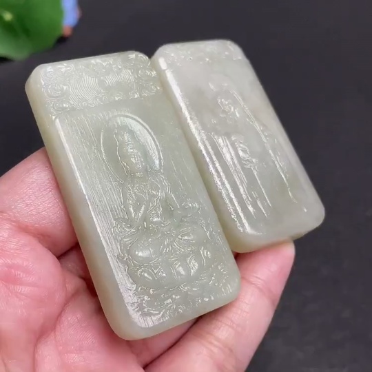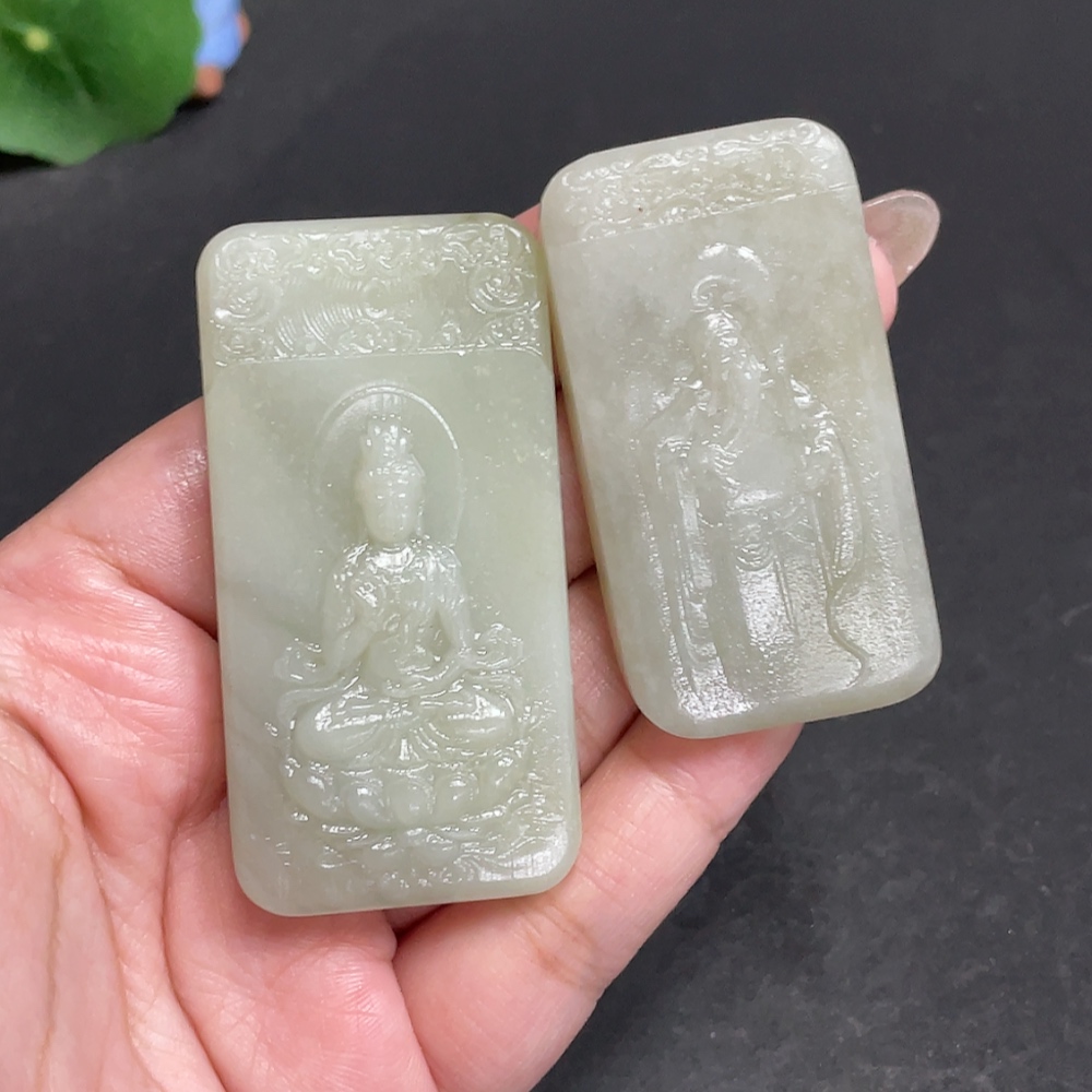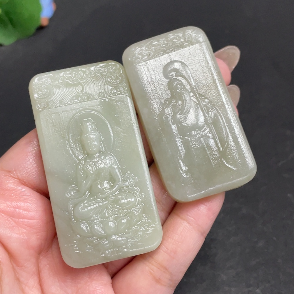 Hetian Jade Pendant - Guanyin + Guan Gong, Total Weight Approx. 81.2g