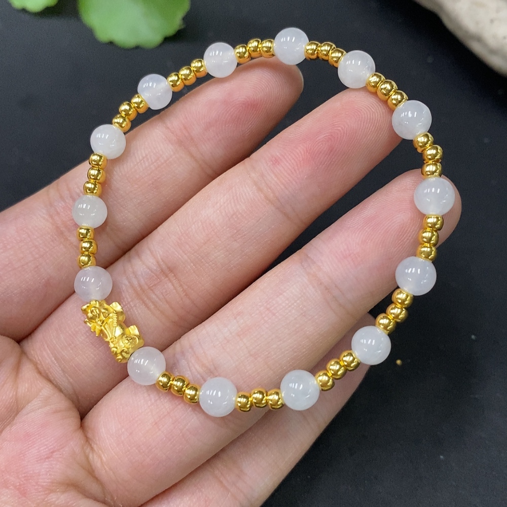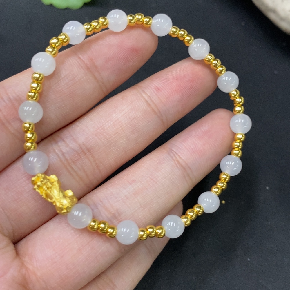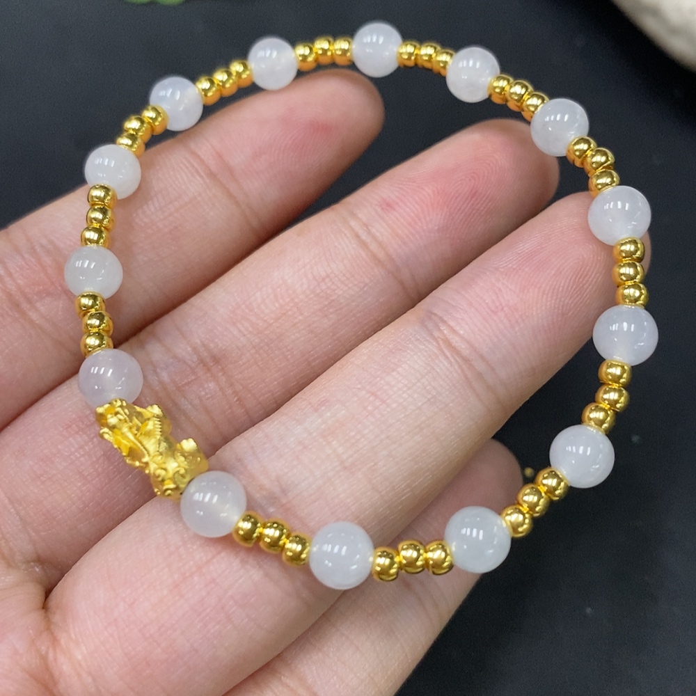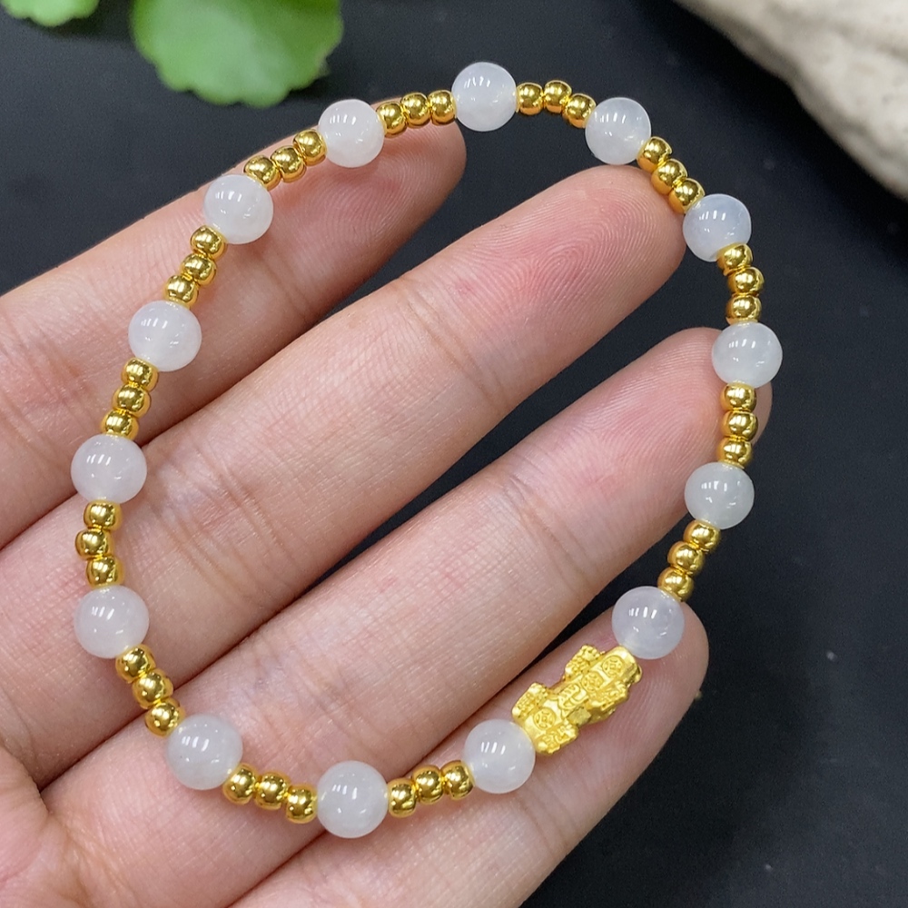 Jadeite Inlaid Bracelet Approx. 5.5mm AU99% Total Weight Approx. 4.61g