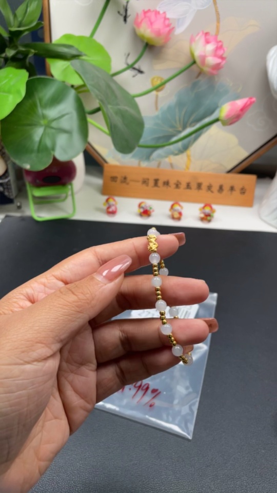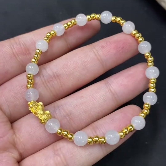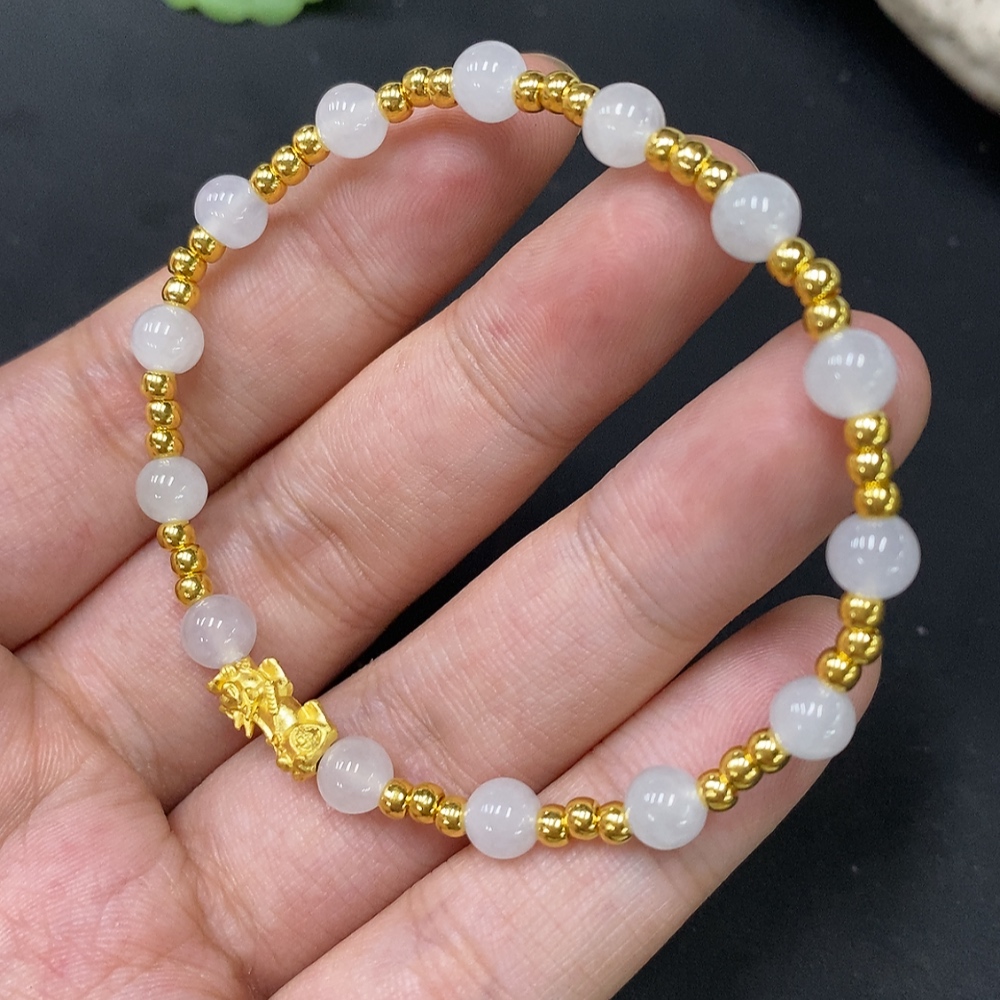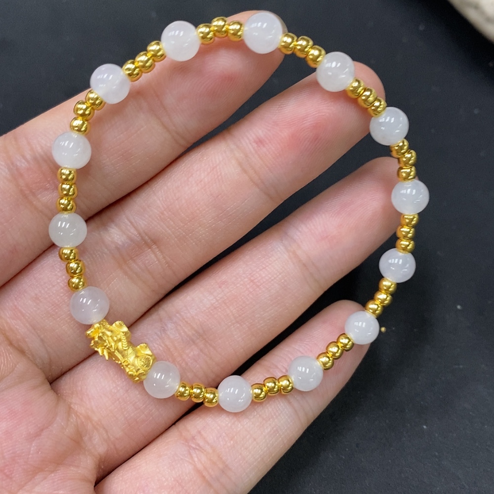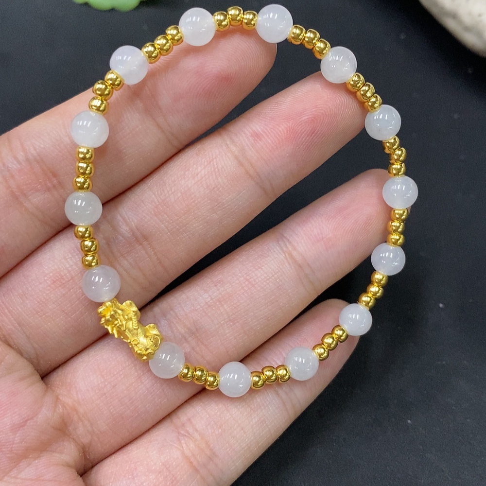 Jadeite Inlaid Bracelet Approx. 5.5mm AU99% Total Weight Approx. 4.61g