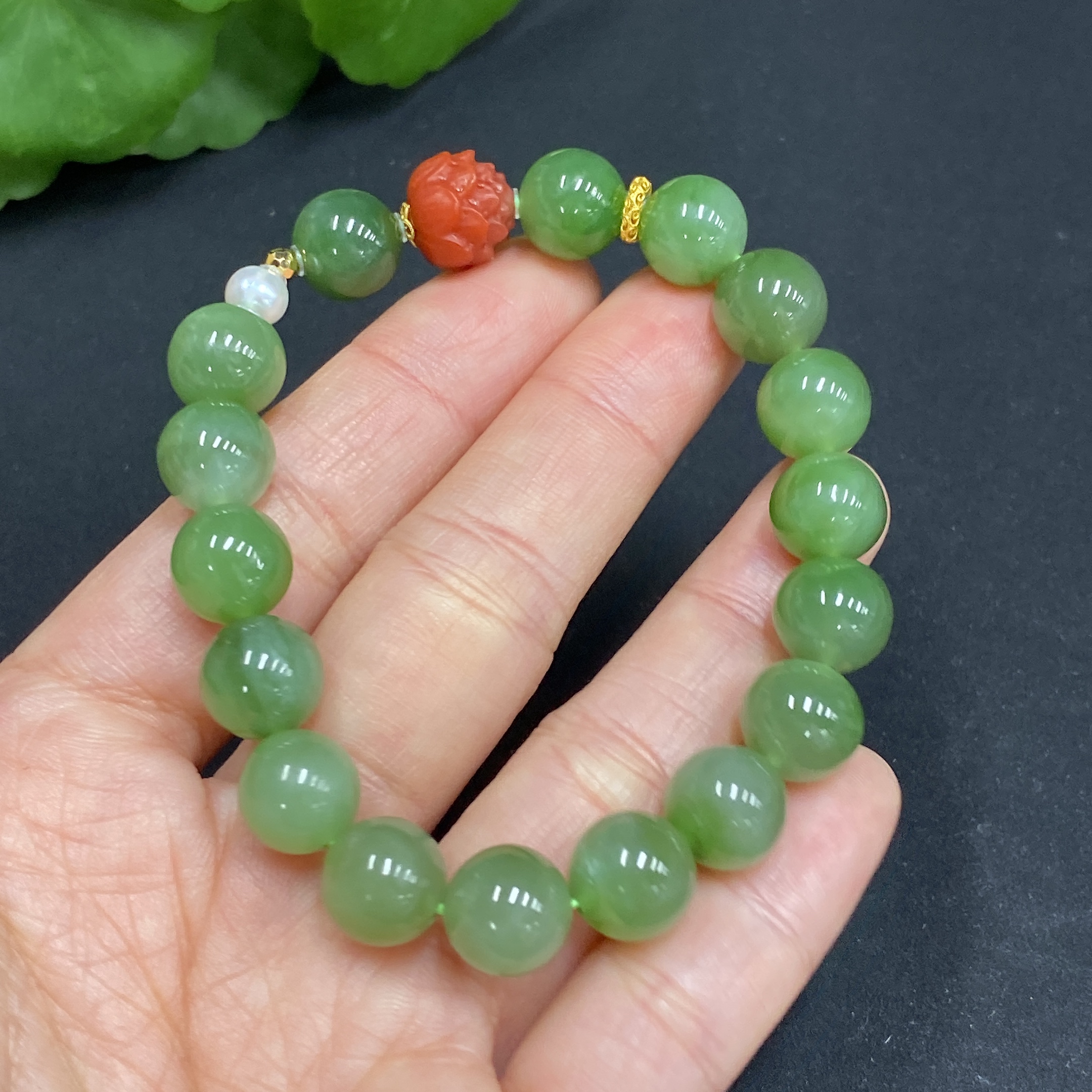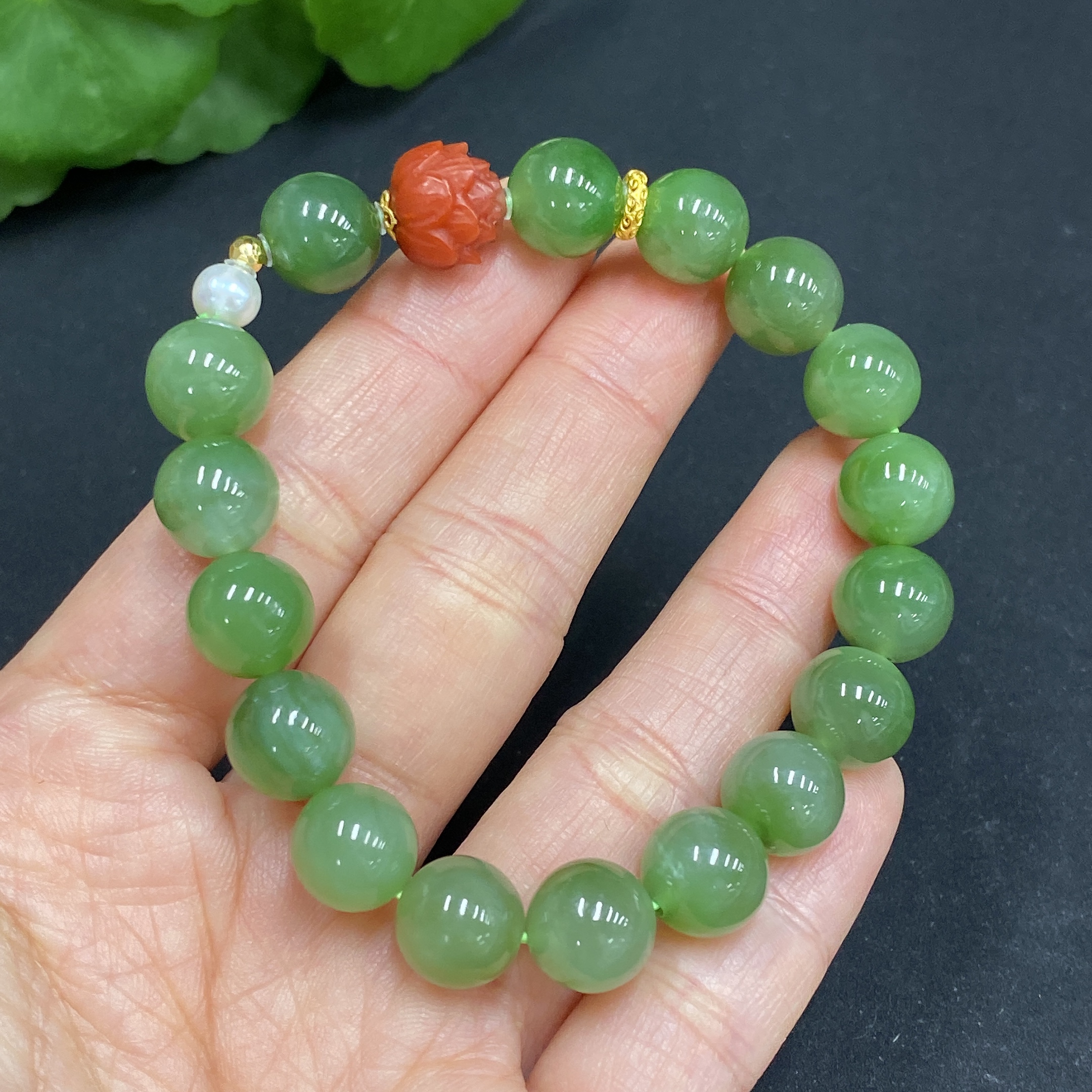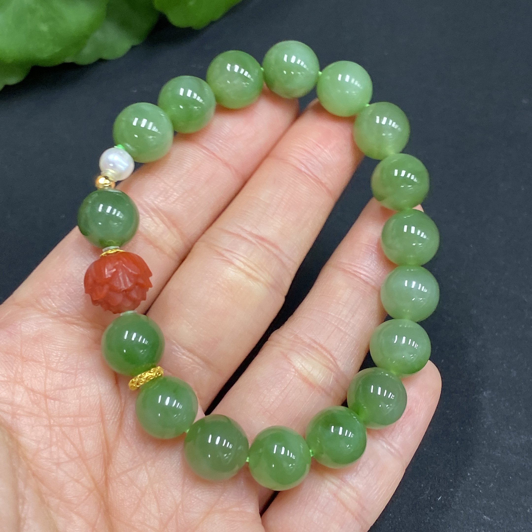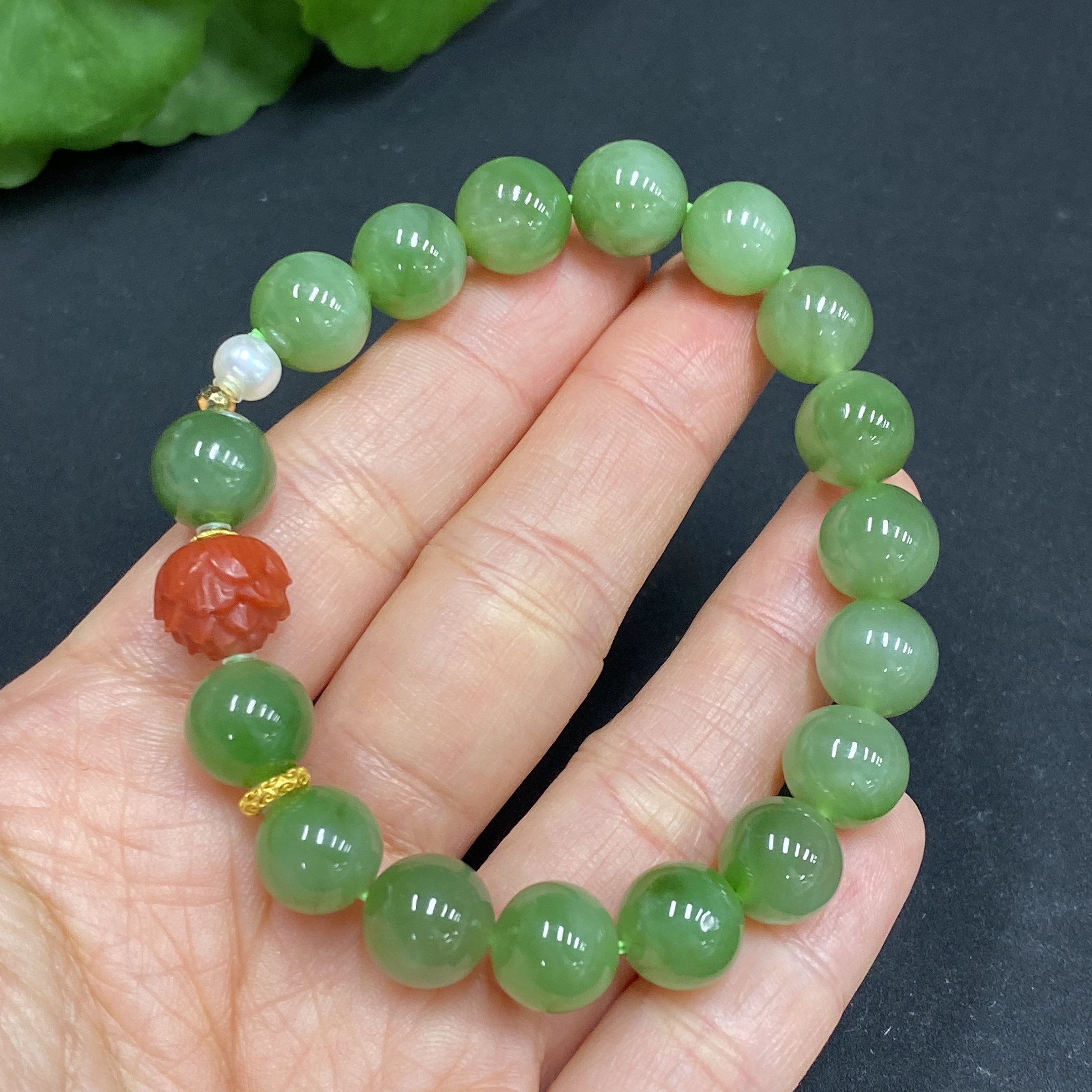 Hetian Jade Bracelet, Approx. 9mm, 18K Gold, Total Weight About 24g, Non-Hetian Jade Accessories