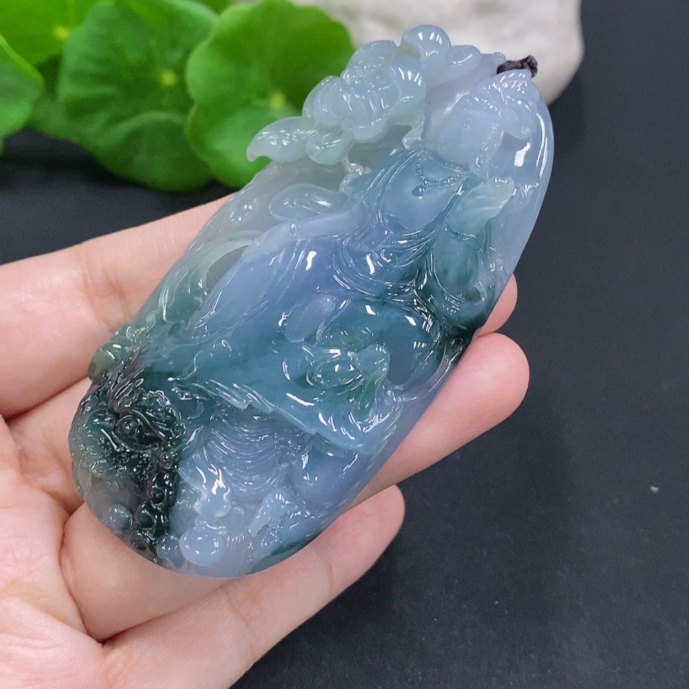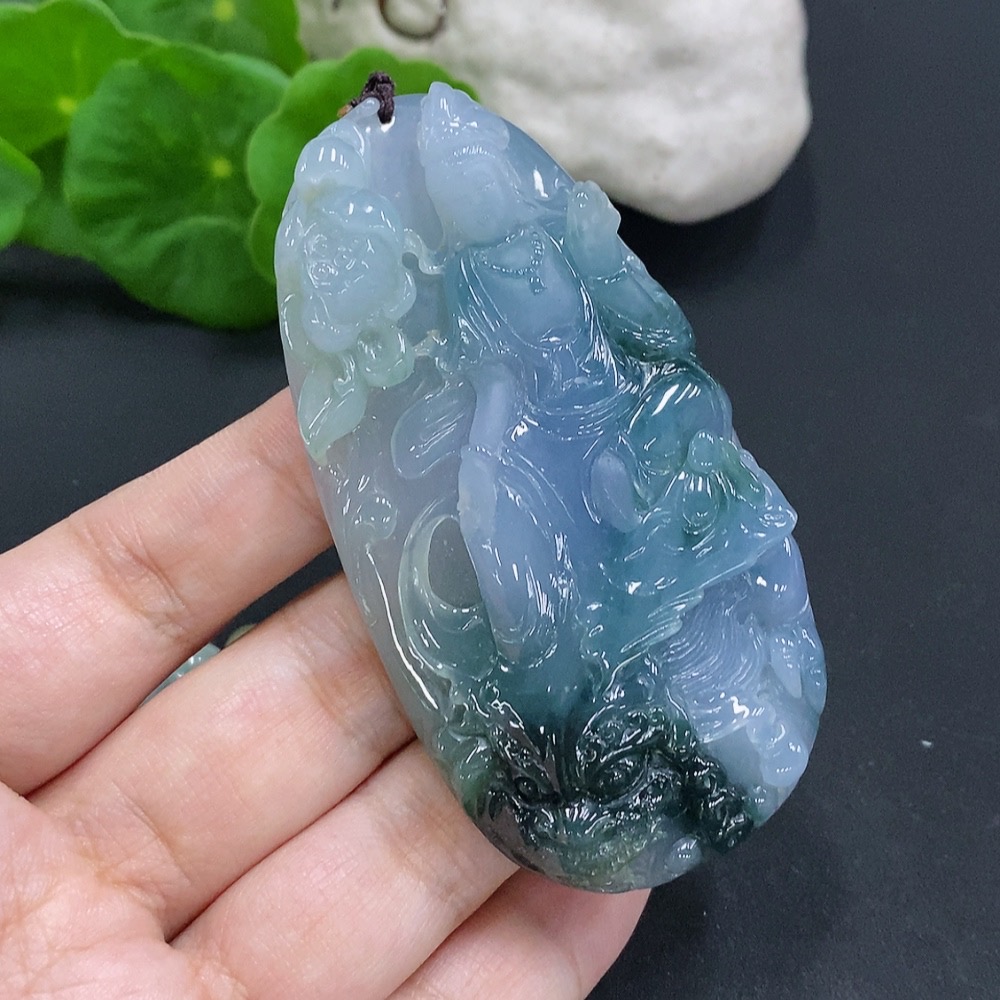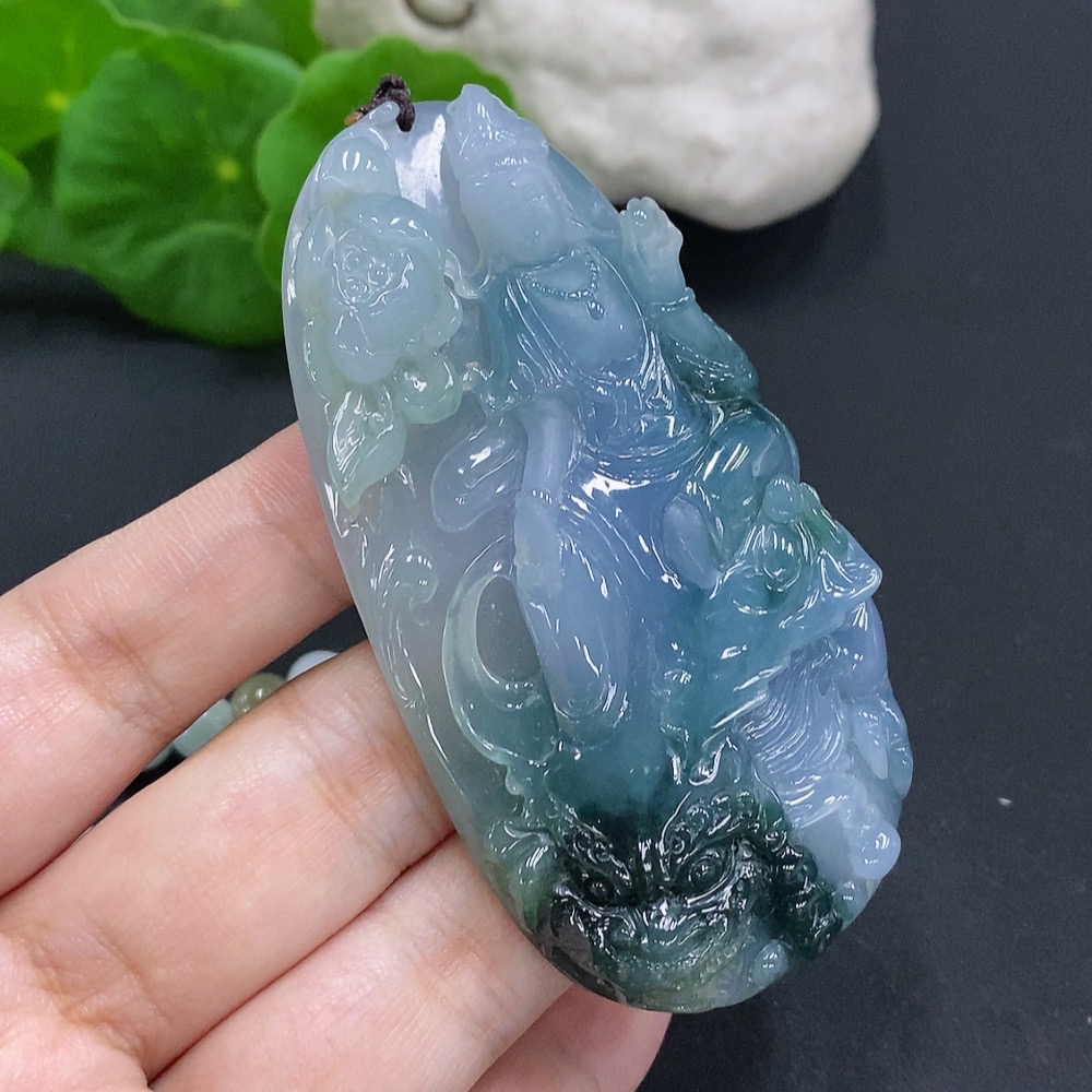 Jadeite Imperial Dragon Guanyin Pendant with Chain, Total Weight Approx. 128.2g (Color Origin Undetermined)