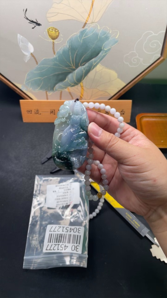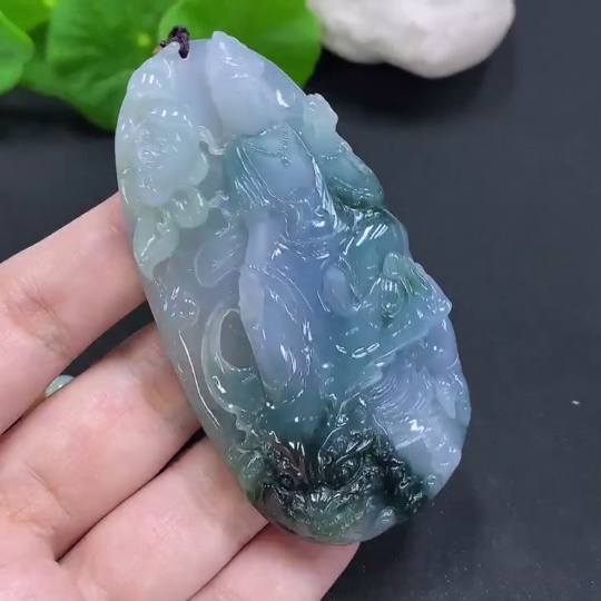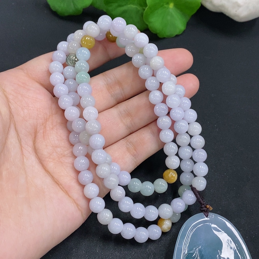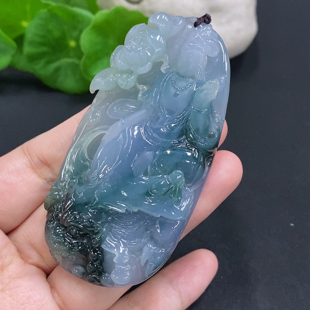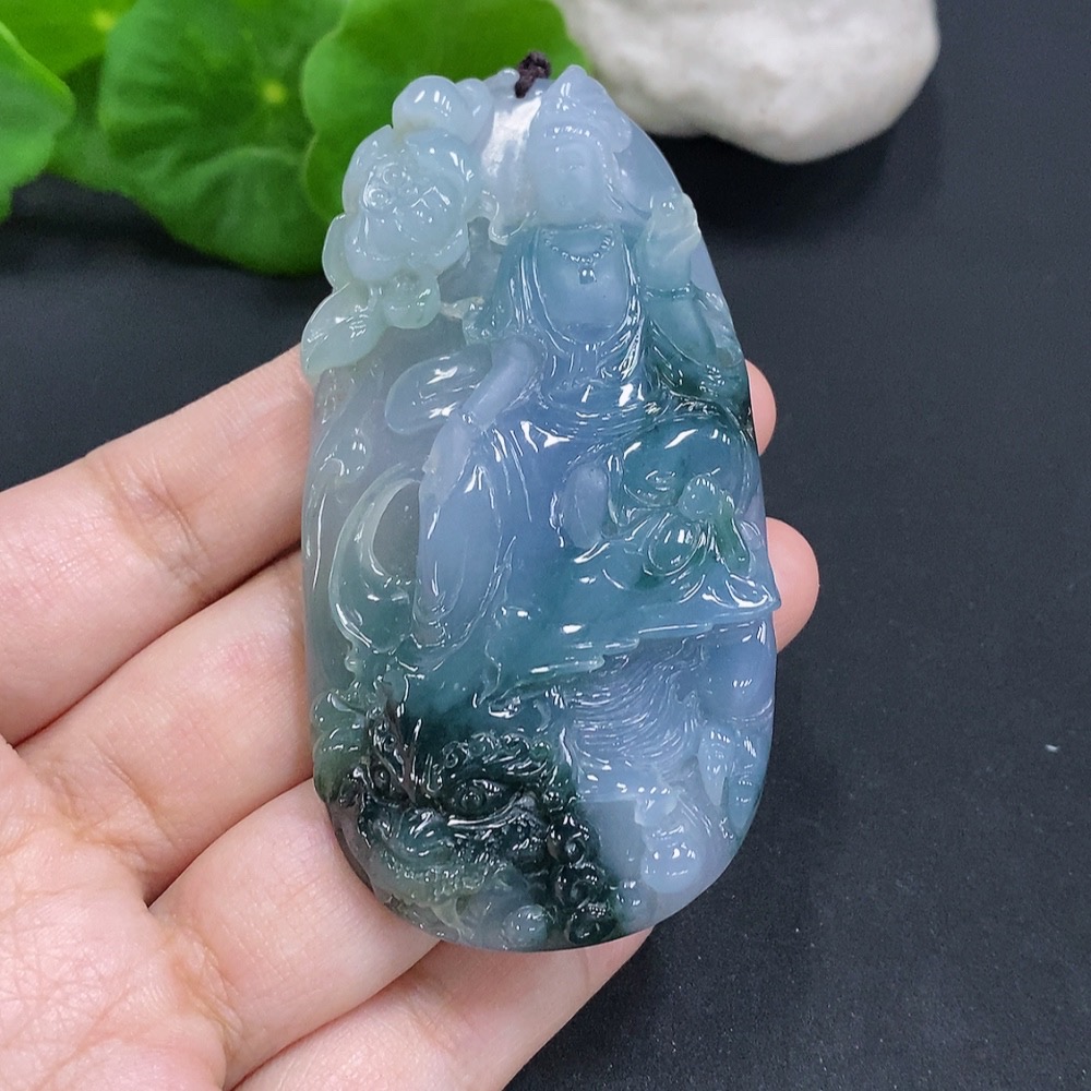 Jadeite Imperial Dragon Guanyin Pendant with Chain, Total Weight Approx. 128.2g (Color Origin Undetermined)