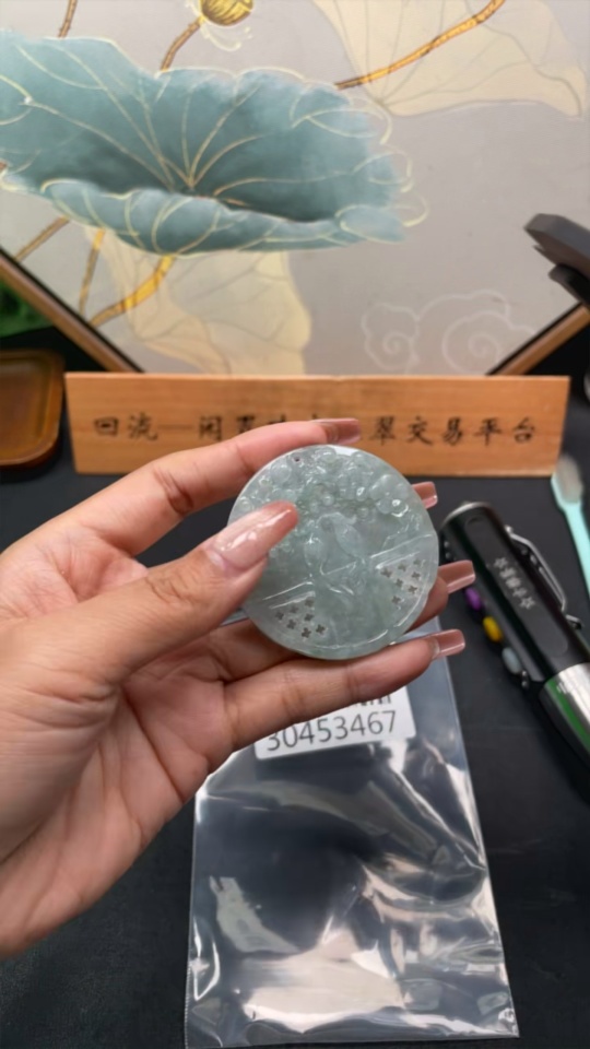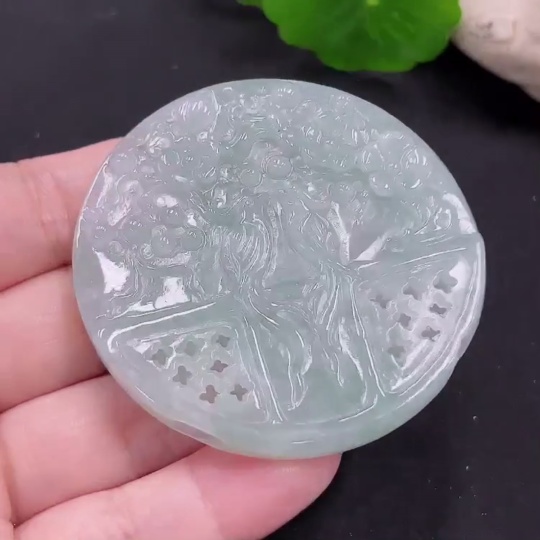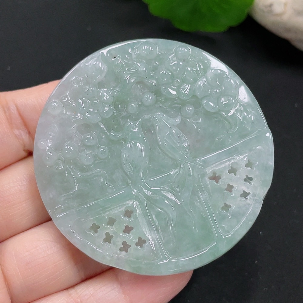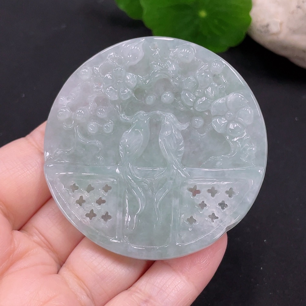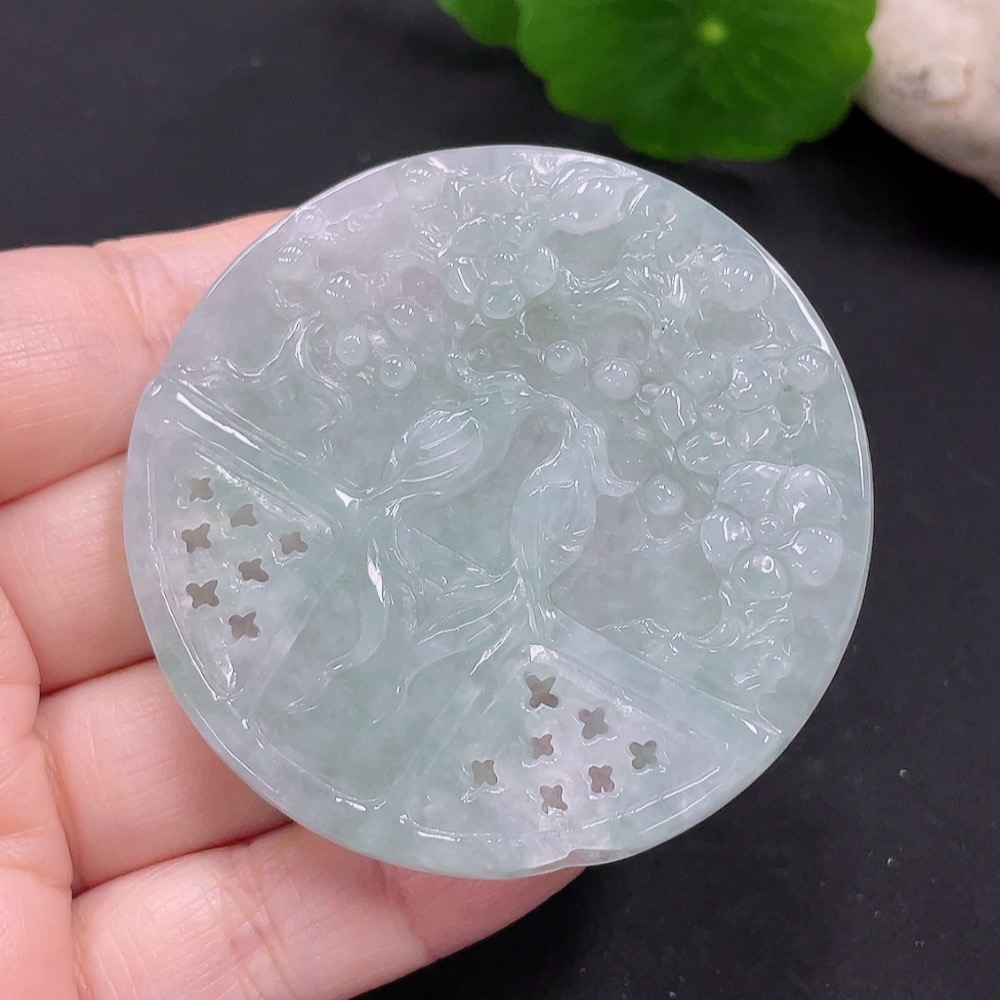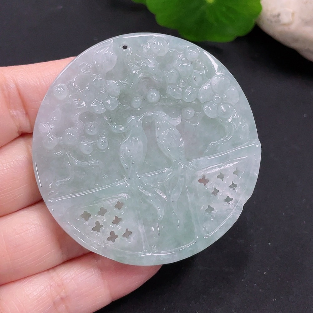 Jadeite floral and bird plaque pendant with a total weight of approximately 33.7 grams