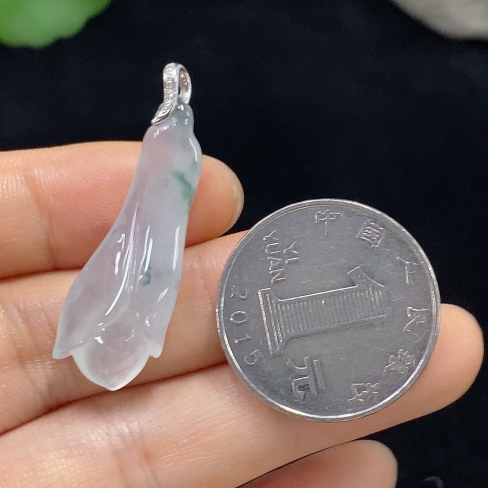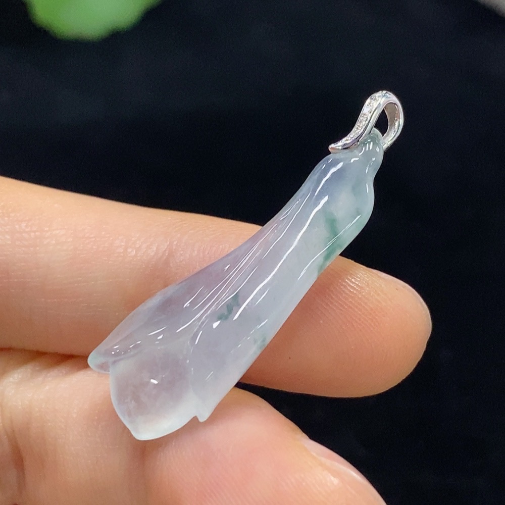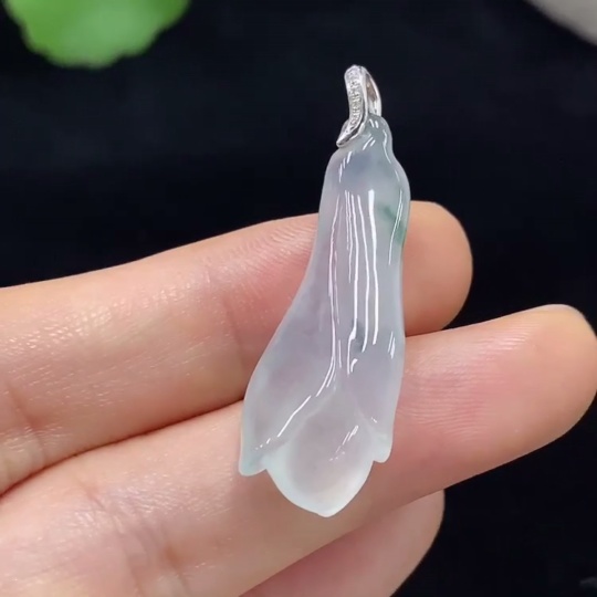 JadeiteMagnolia Pendant with 18K Gold, Total Weight Approx. 4.18g