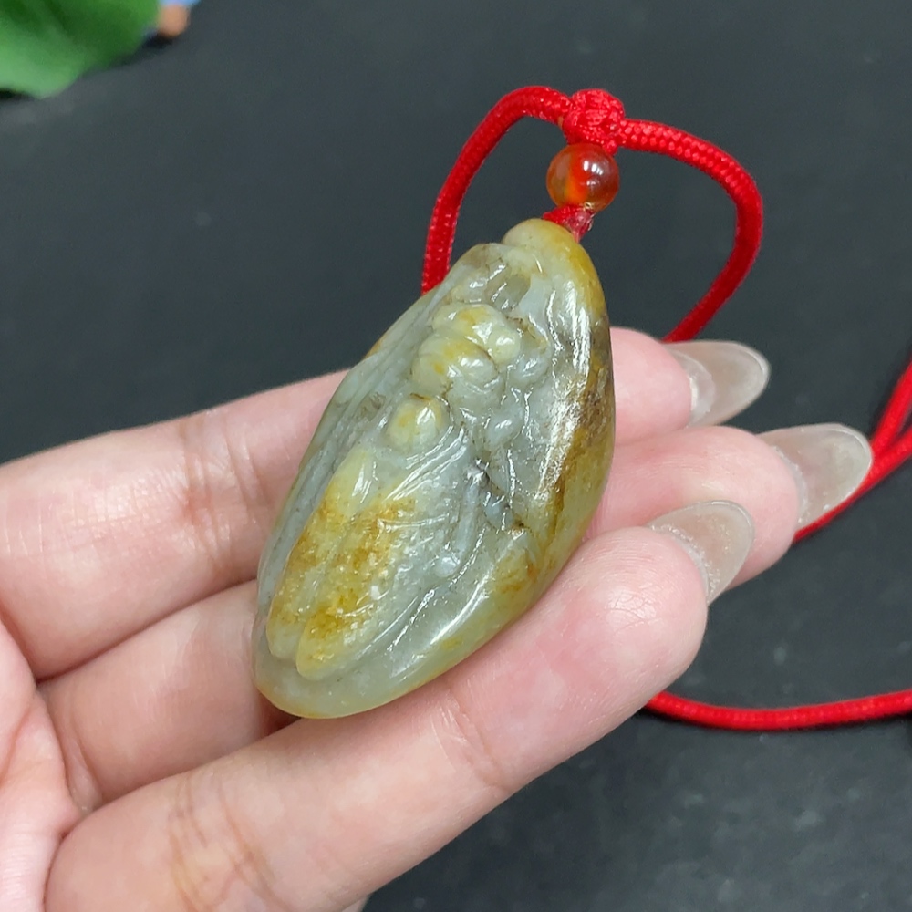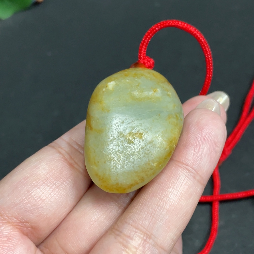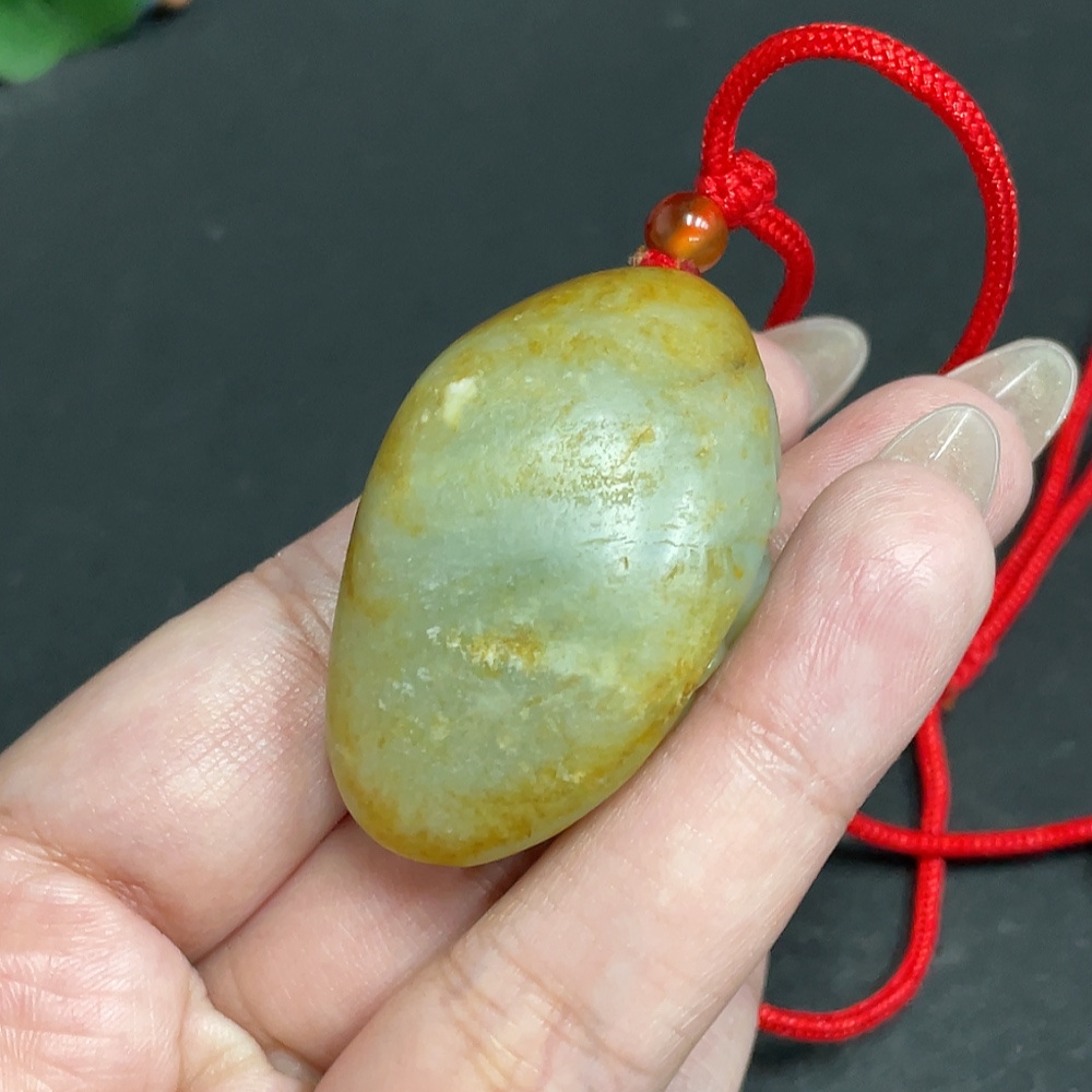 Hetian Jade Seed Material Pendant – A Startling Debut, Containing Other Mineral Components, Undetermined Skin Color Origin, Total Weight (Including Rope) Approximately 40.2g