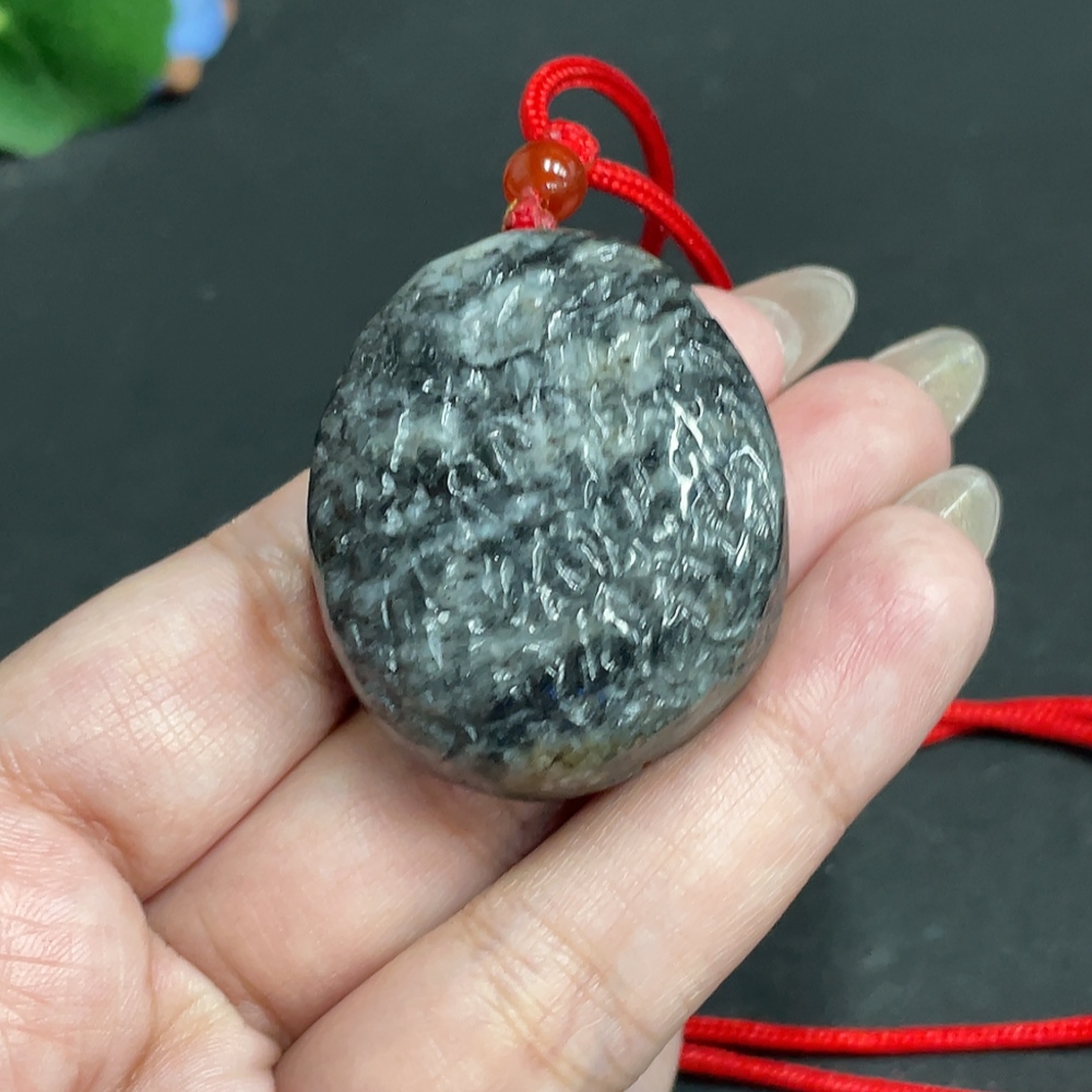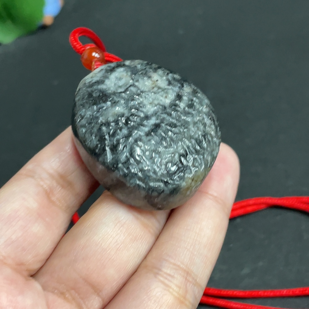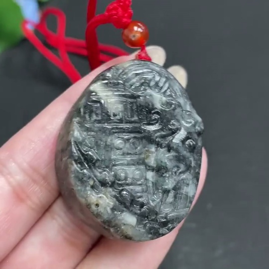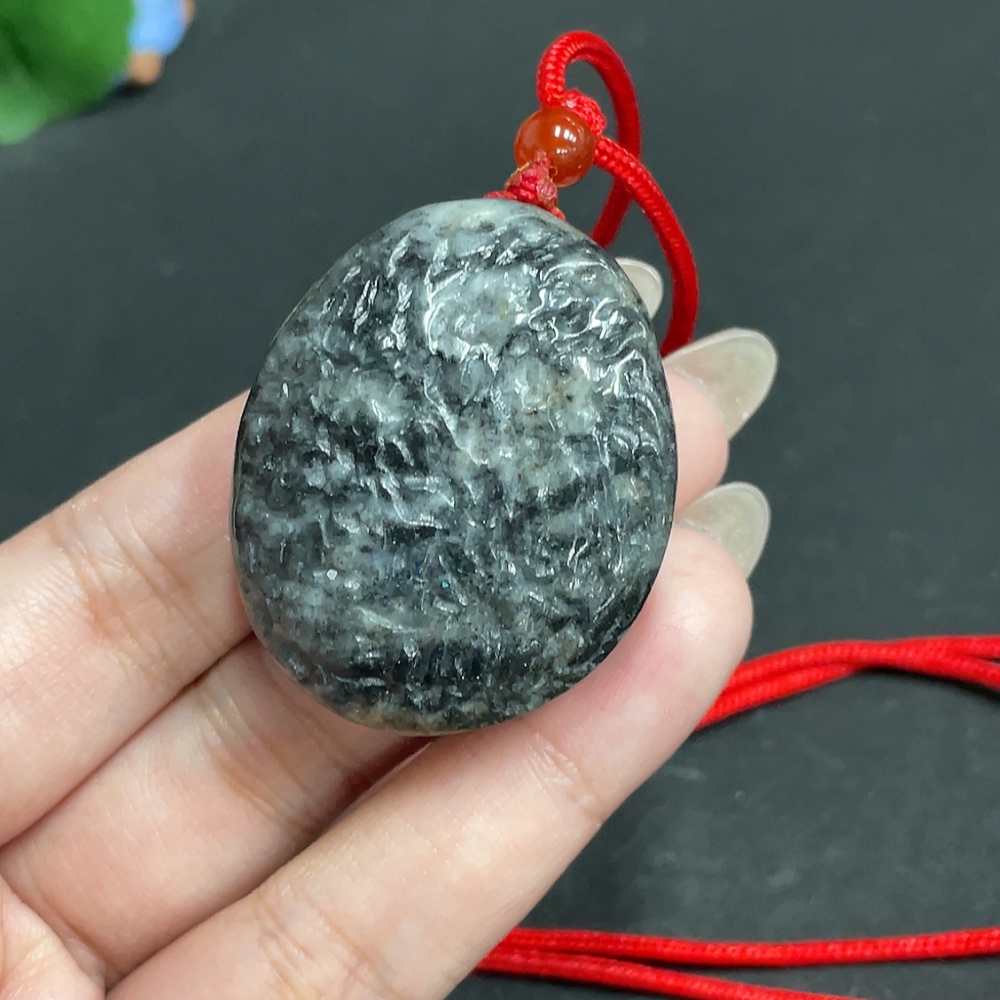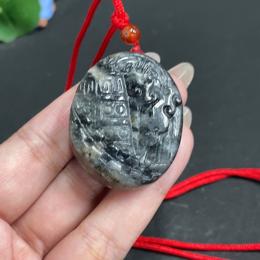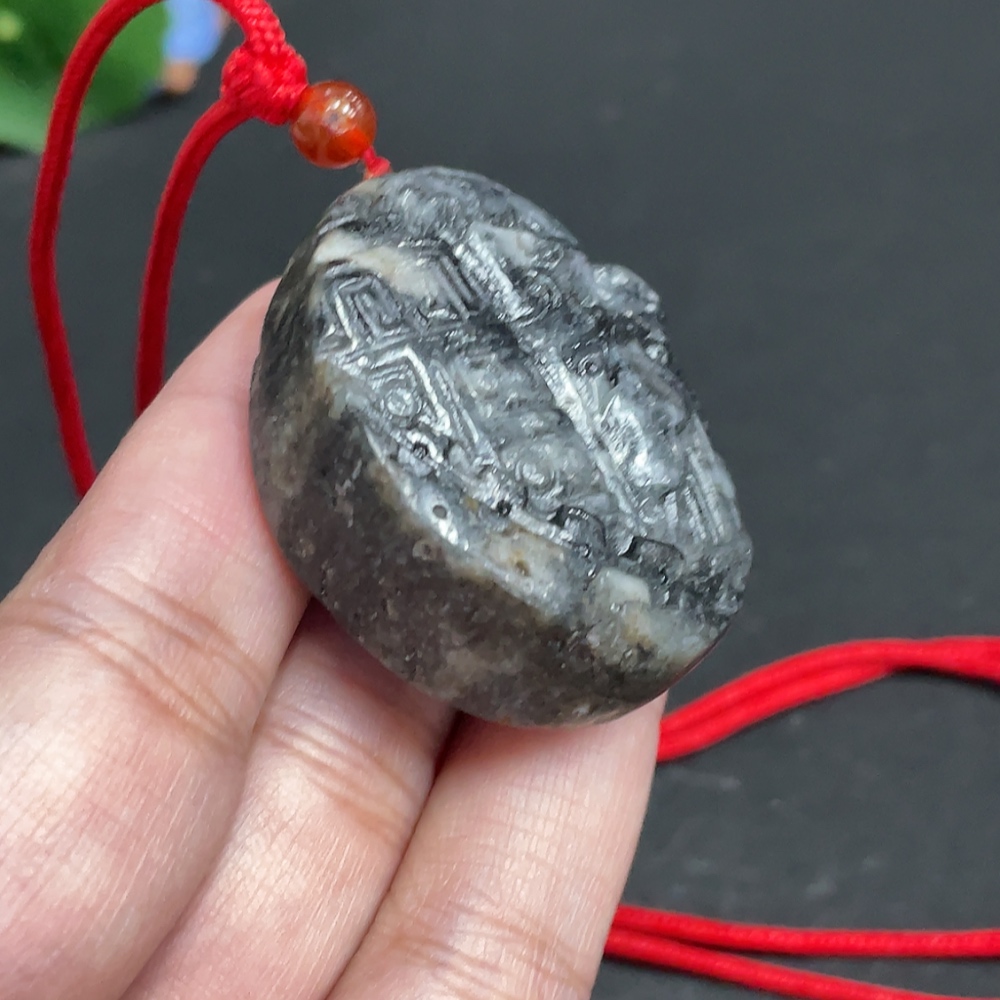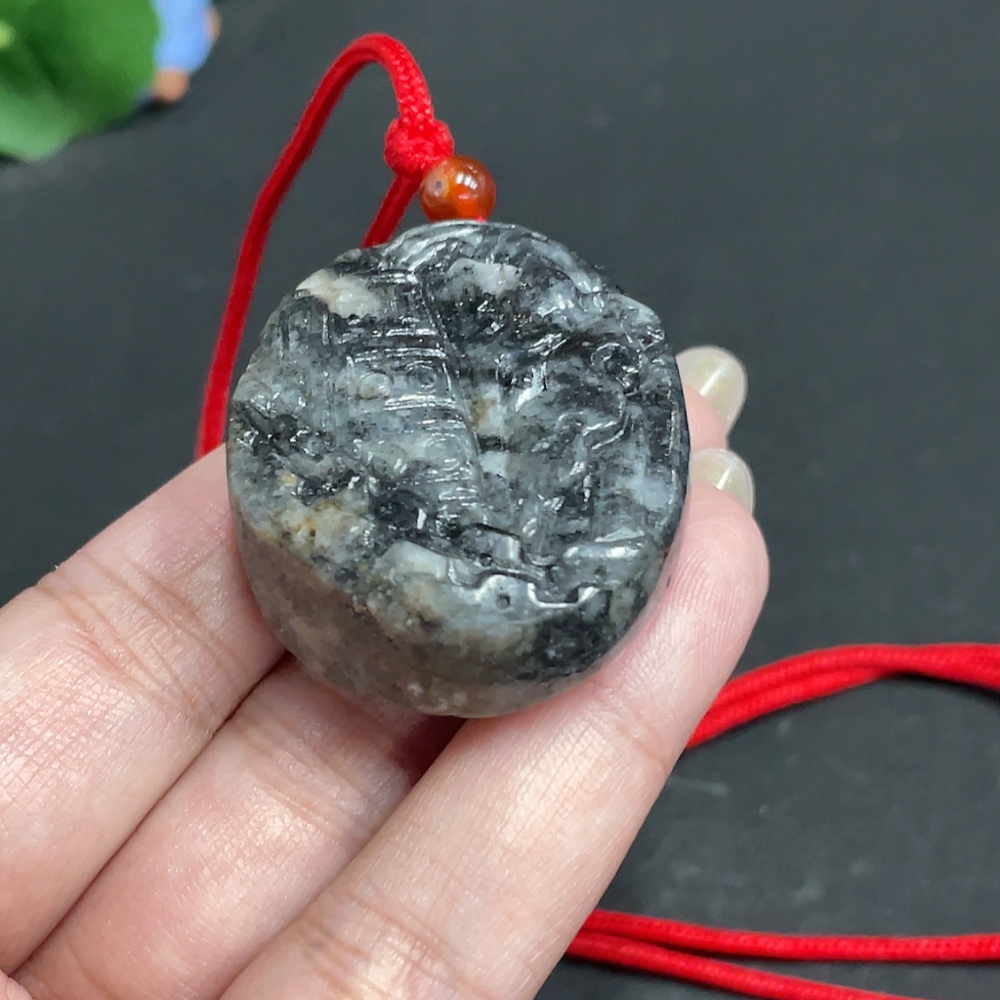 Hetian Jade Pendant, Antique-style Piece, Containing Other Mineral Components, Undetermined Skin Color Origin, Total Weight Approximately [Including Rope] 48.1g