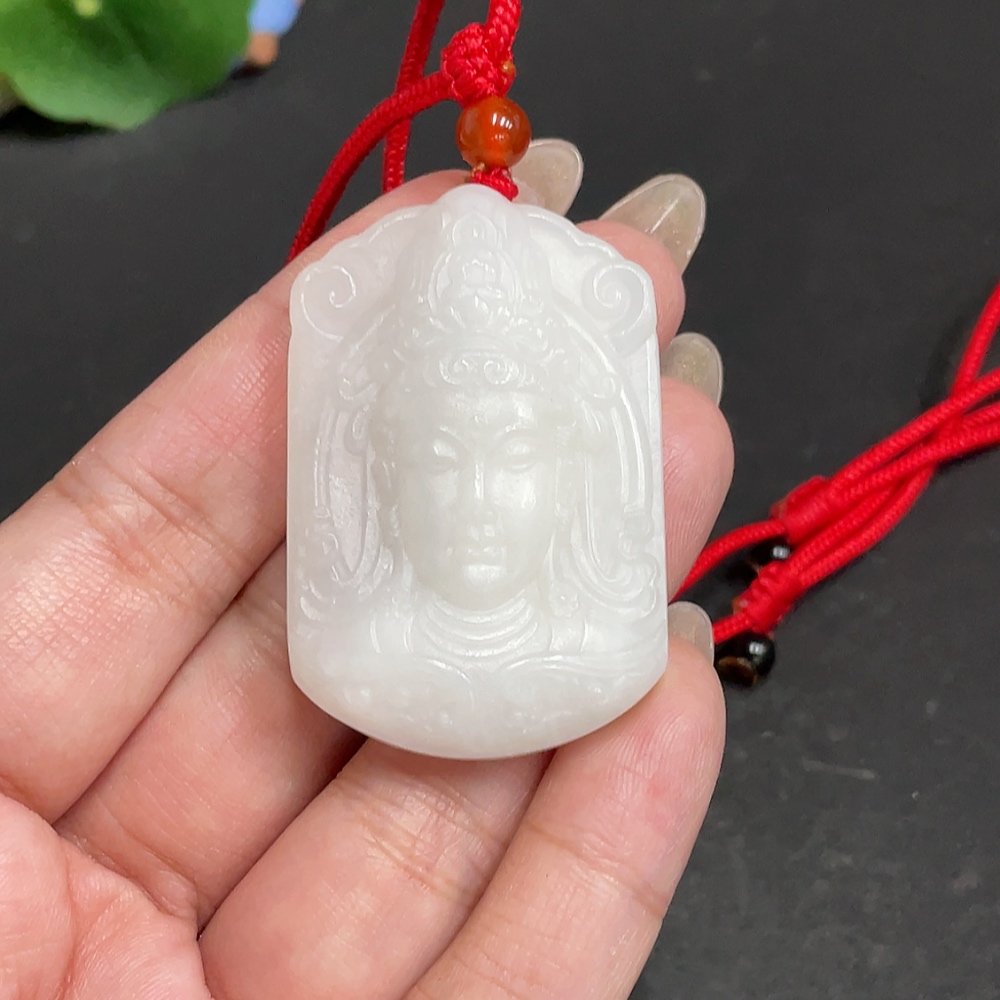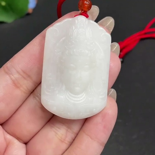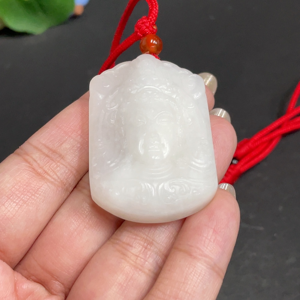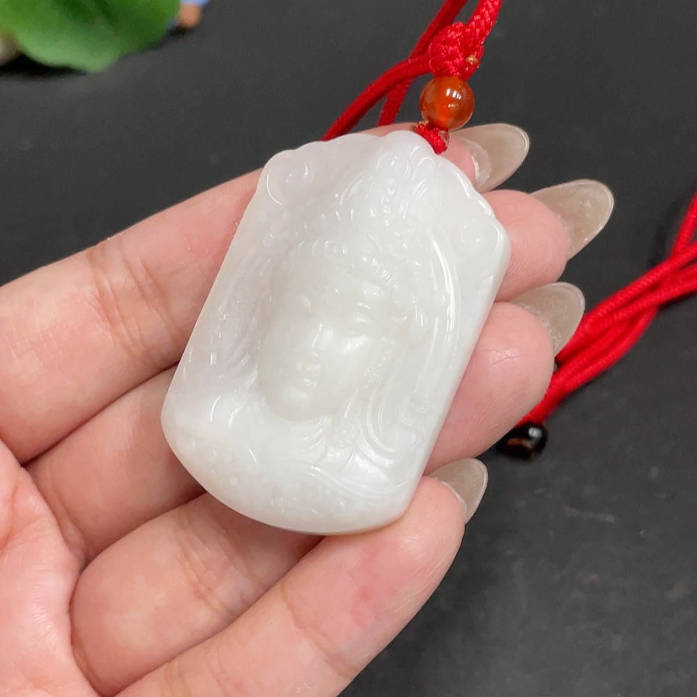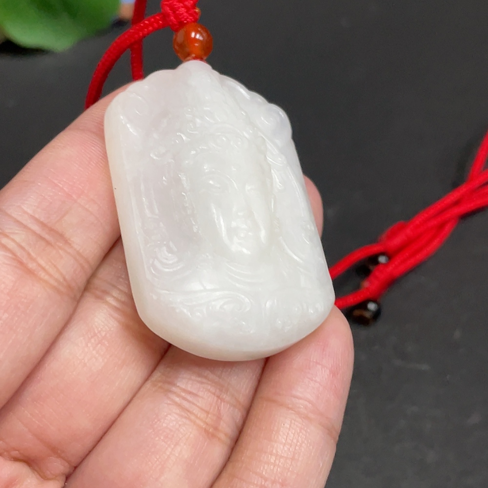 Hetian Jade Pendant Guanyin with Other Mineral Components Total Weight Approx. 32.3g (Including Rope)