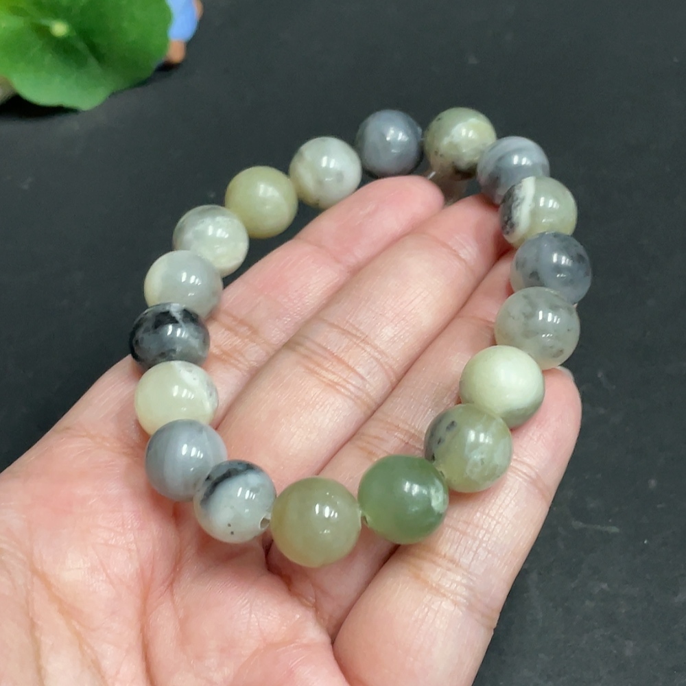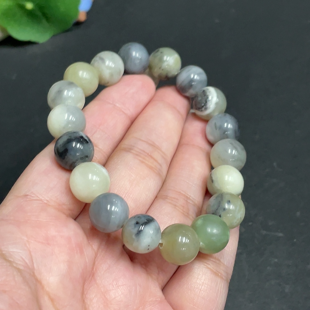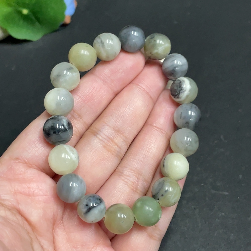 Hetian Jade Bracelet, Approx. 11 mm, Total Weight About 39.4g, Containing Other Mineral Components