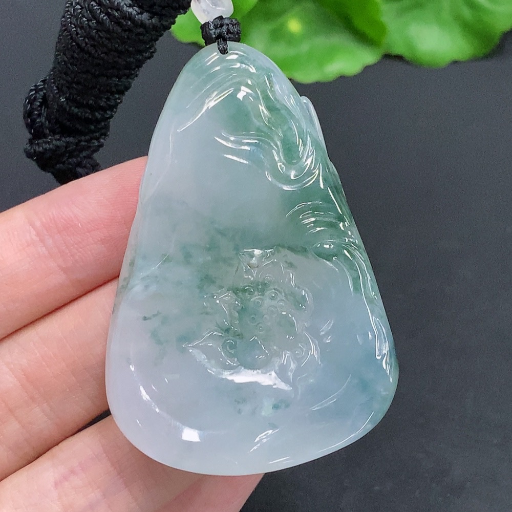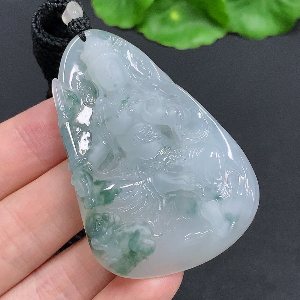 Jadeite Manjushri Bodhisattva Pendant Total Weight Approx. 47g (Including Rope)