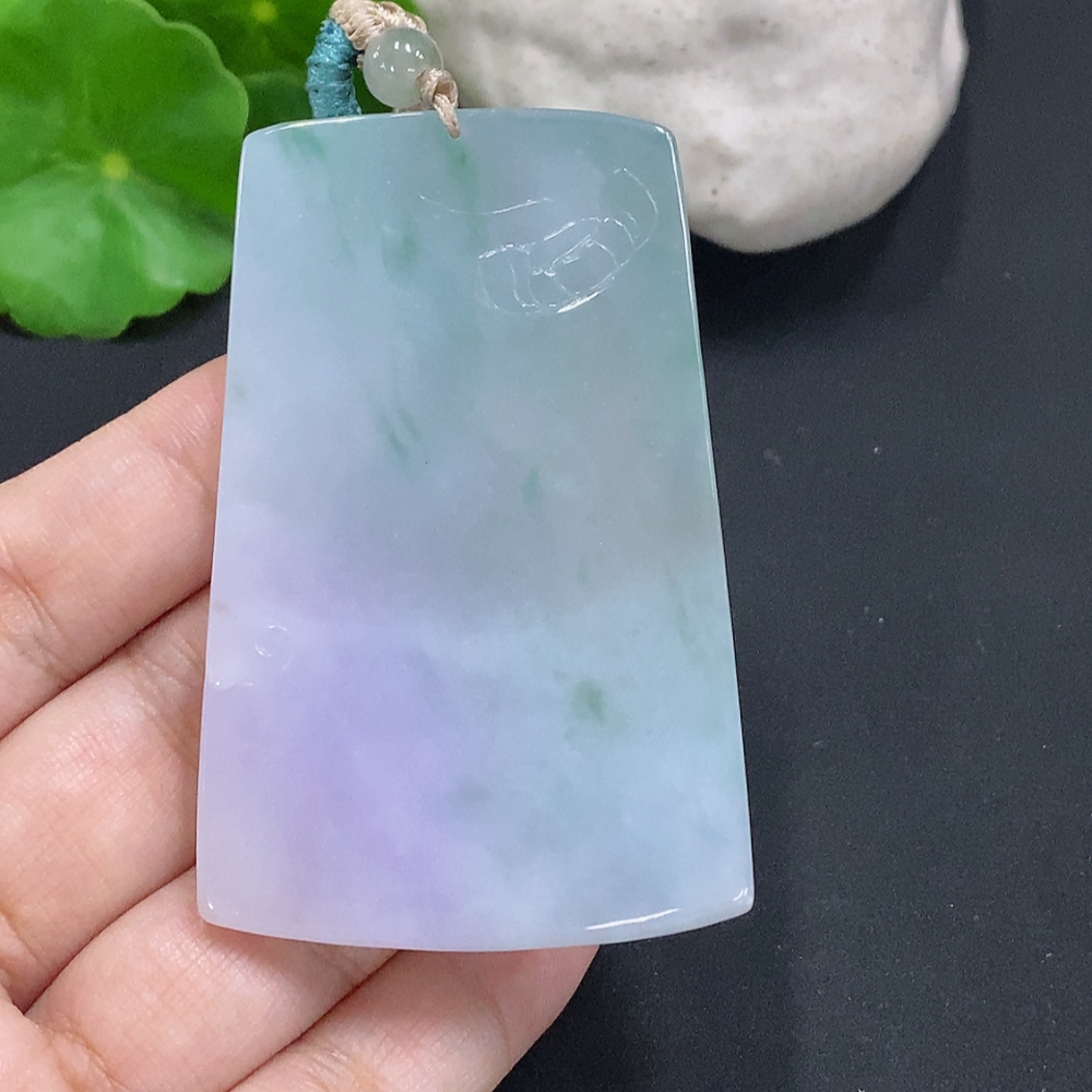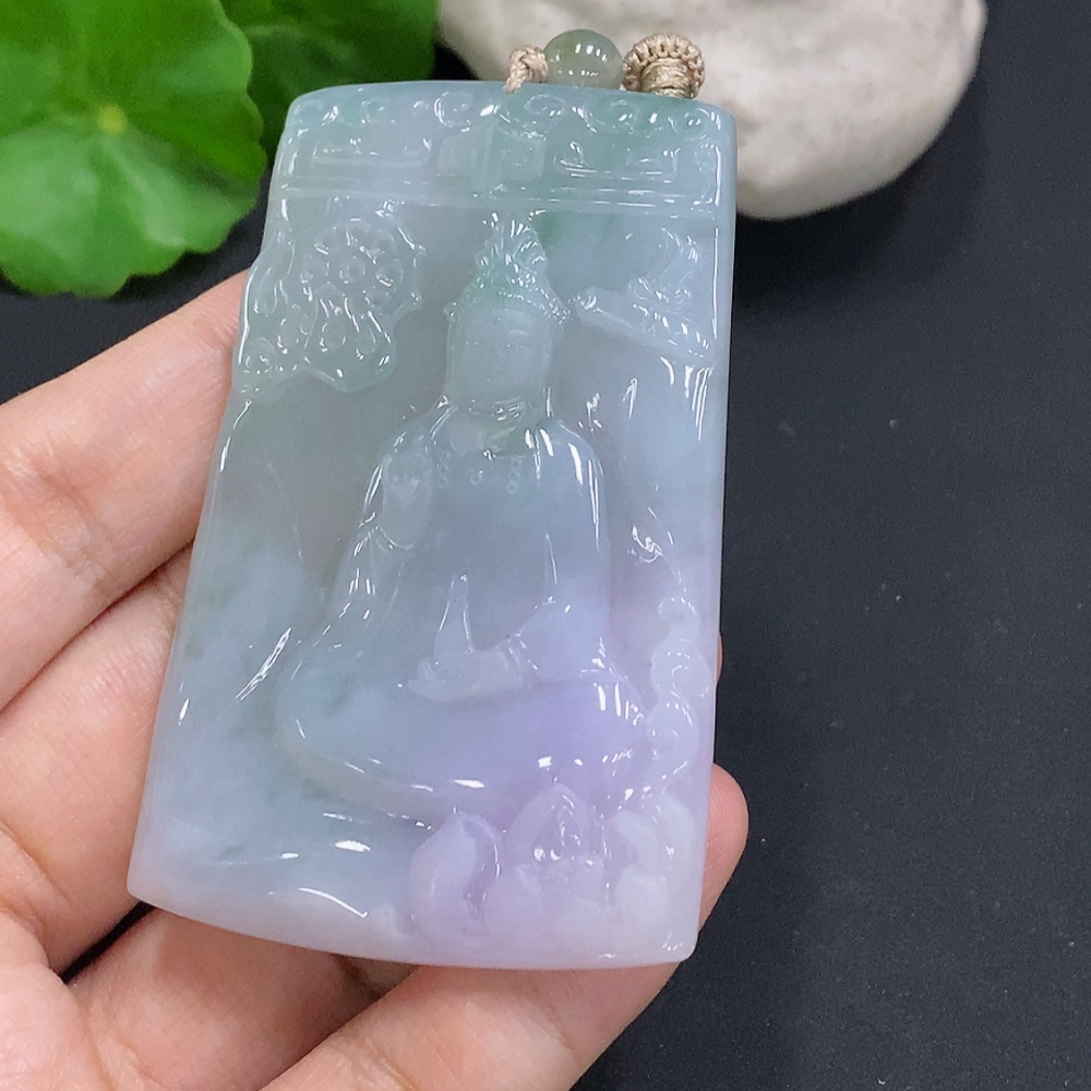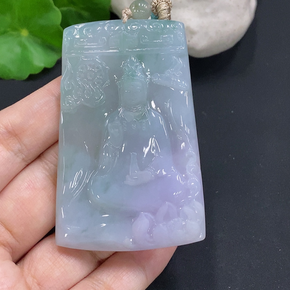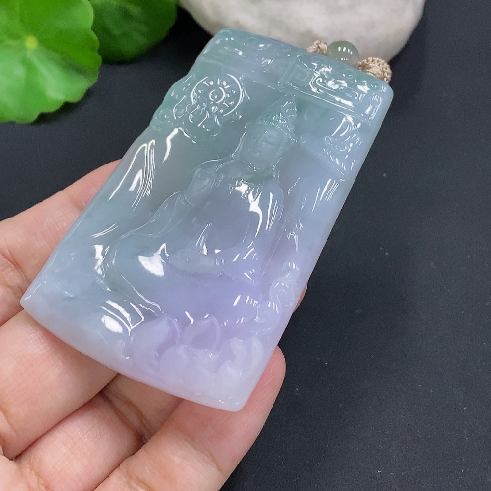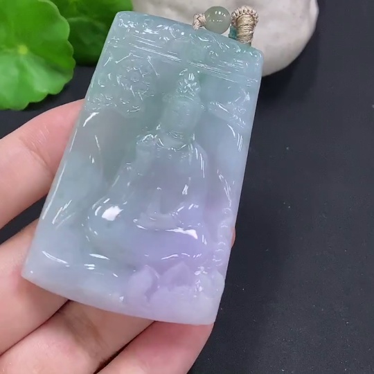 Jadeite Guanyin Pendant, Total Weight Including Rope Approximately 46.2g