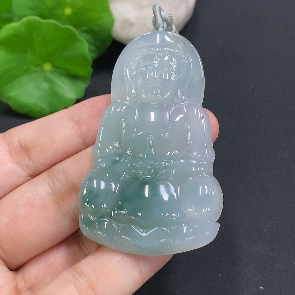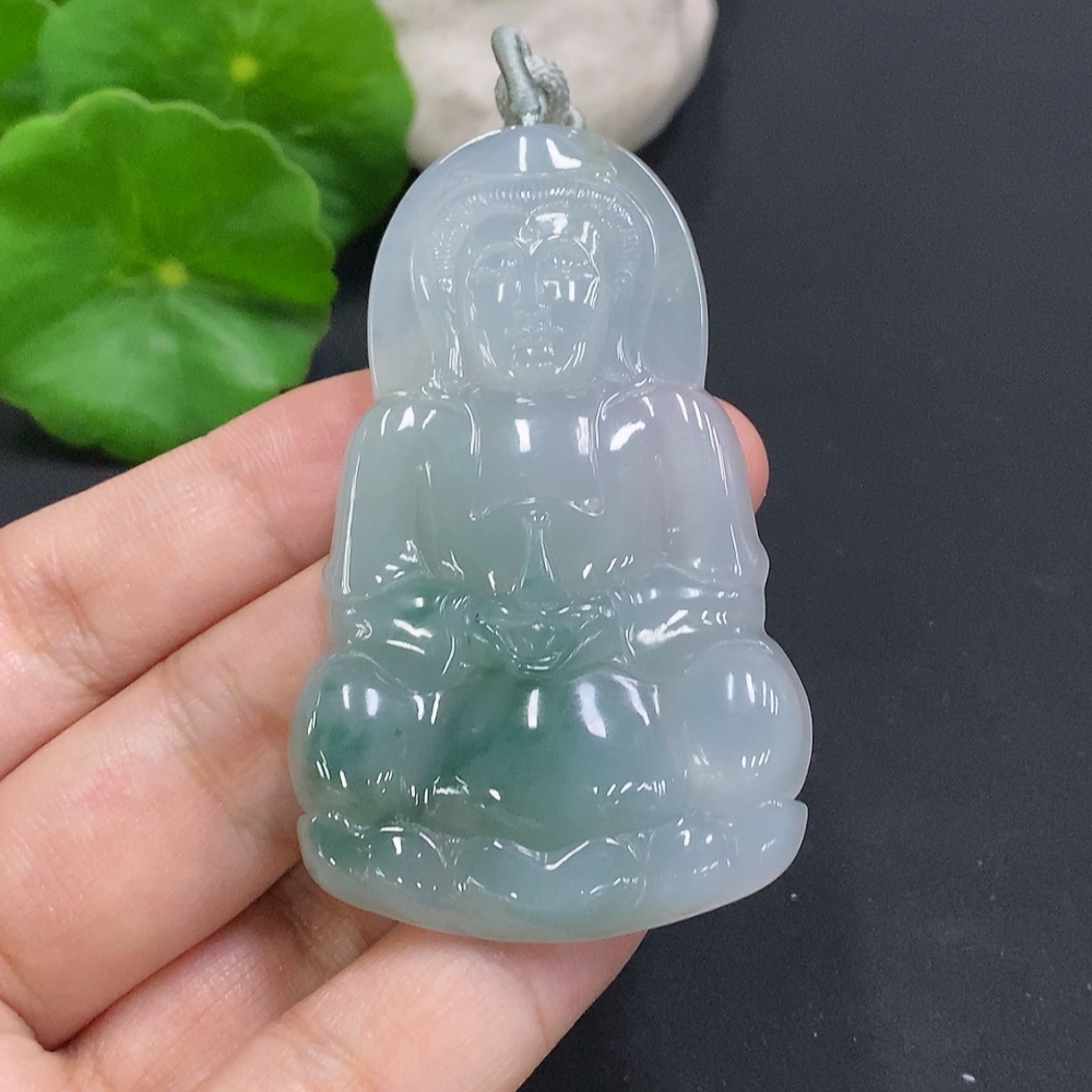 Jadeite Guanyin Pendant Total Weight Including Rope Approx. 25.8g (Matching Beads Non-Grade A)