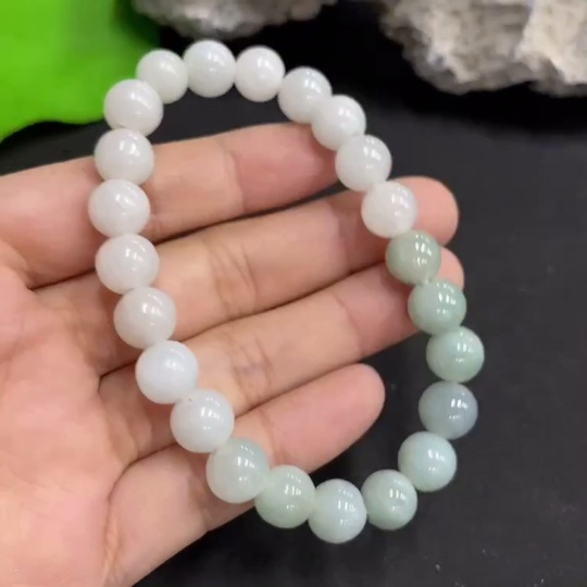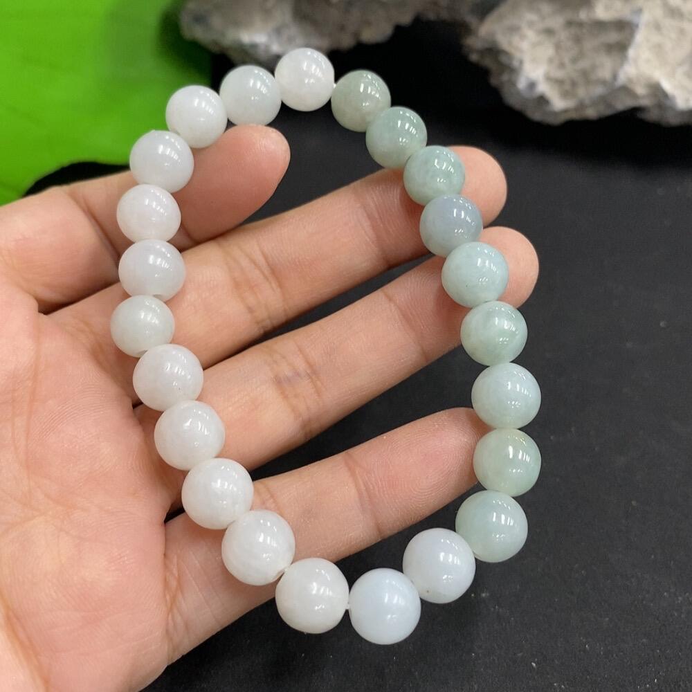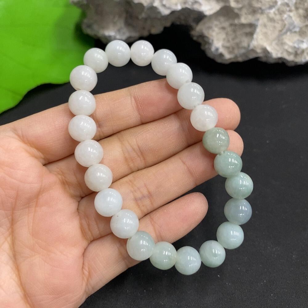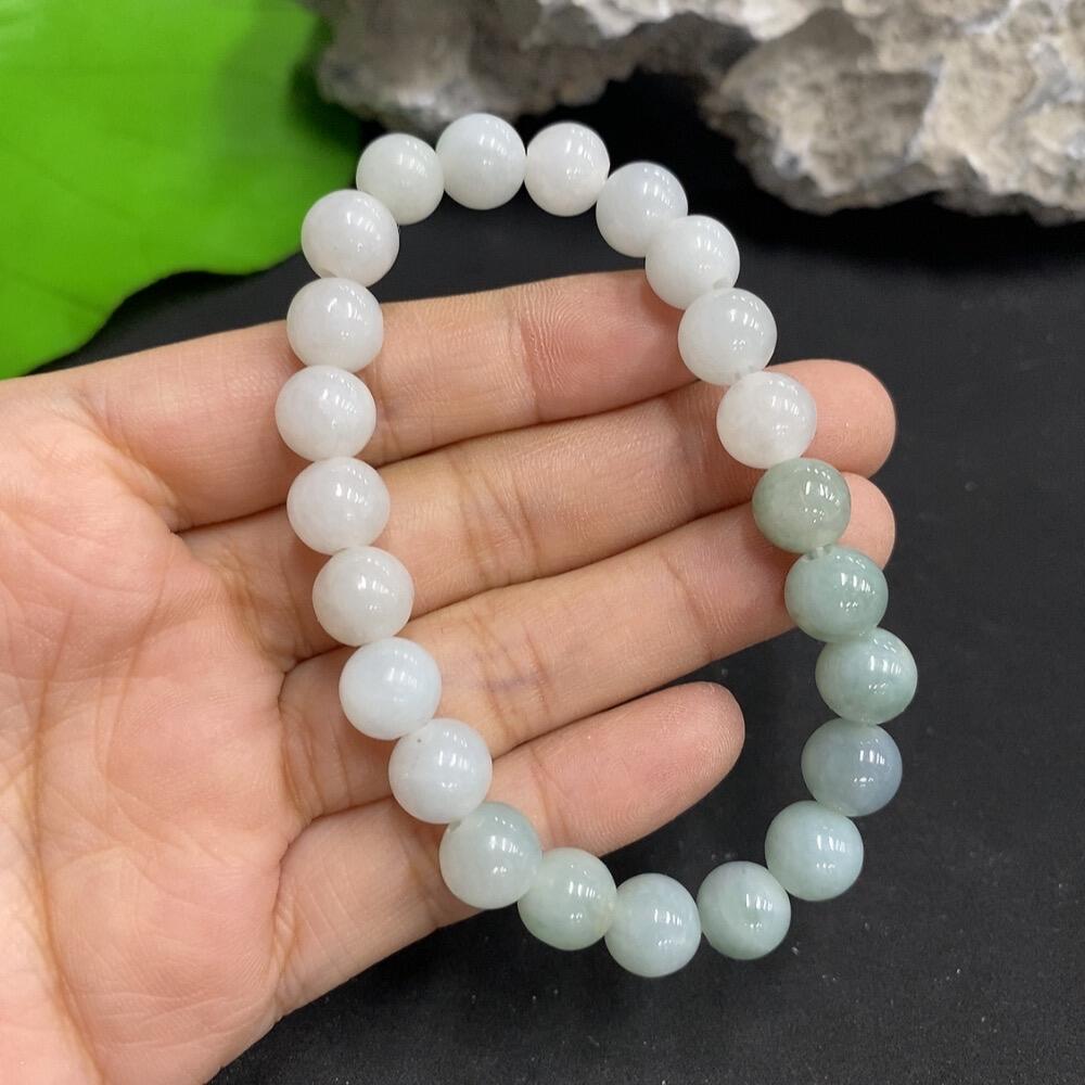 Jadeite Bead Necklace with Minor Cracks in Individual Beads Size 8.4mm