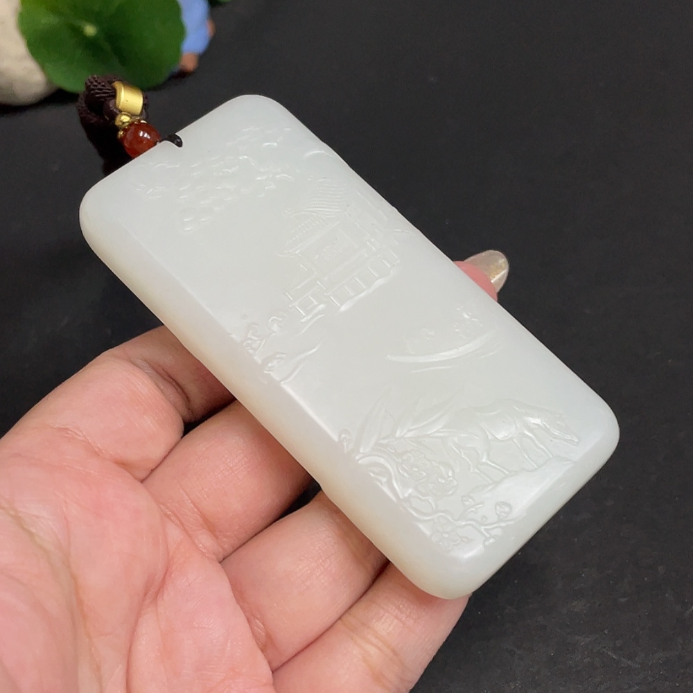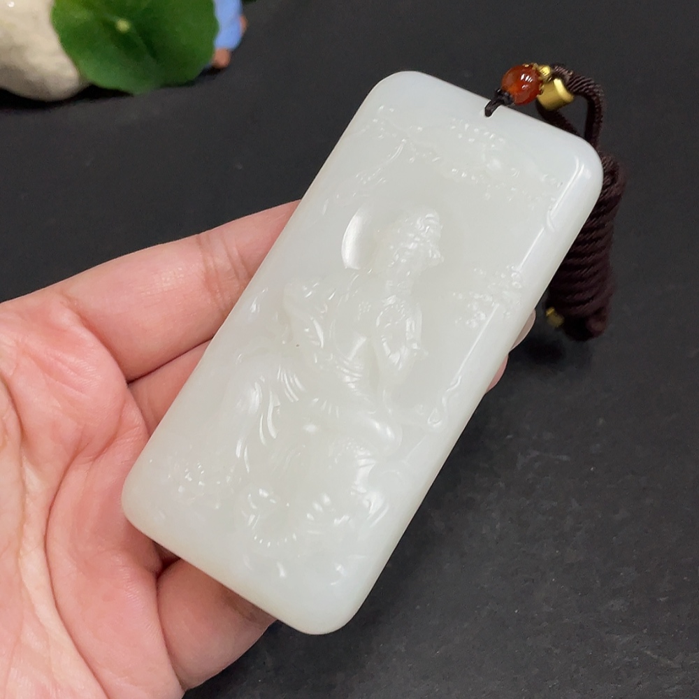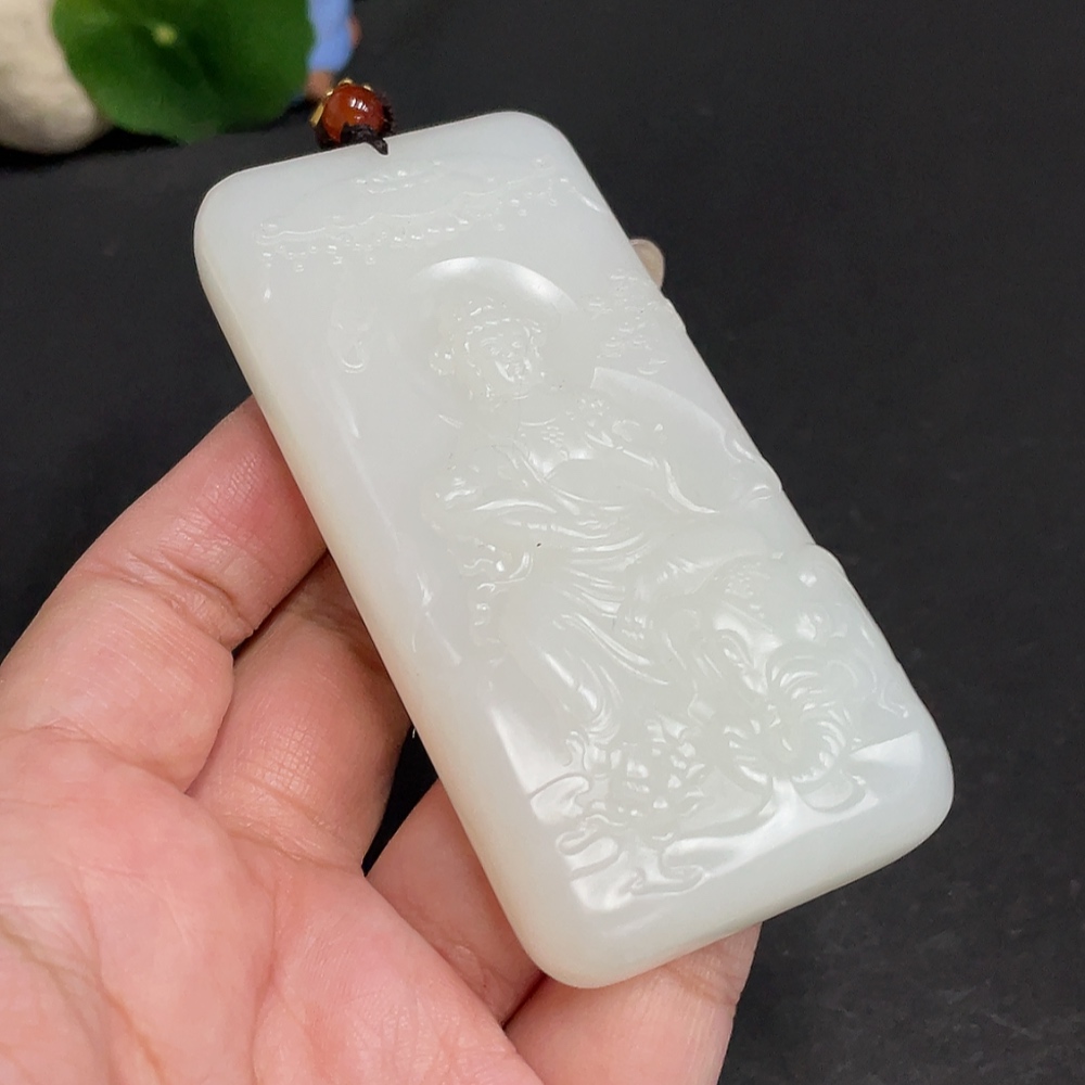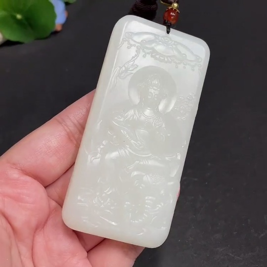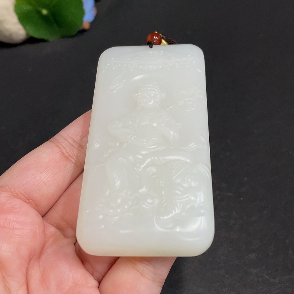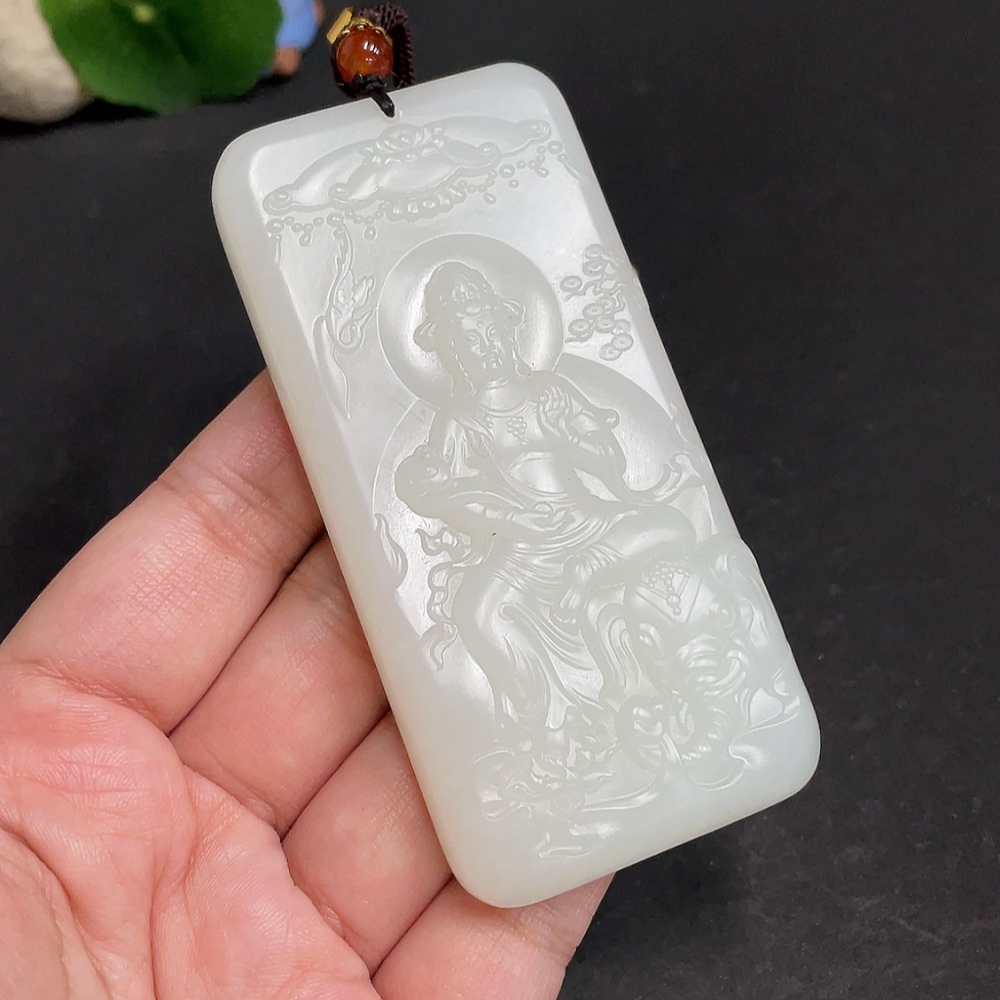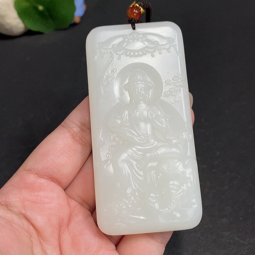 Hetian Jade Pendant of Samantabhadra Bodhisattva with Non-Hetian Jade Beads