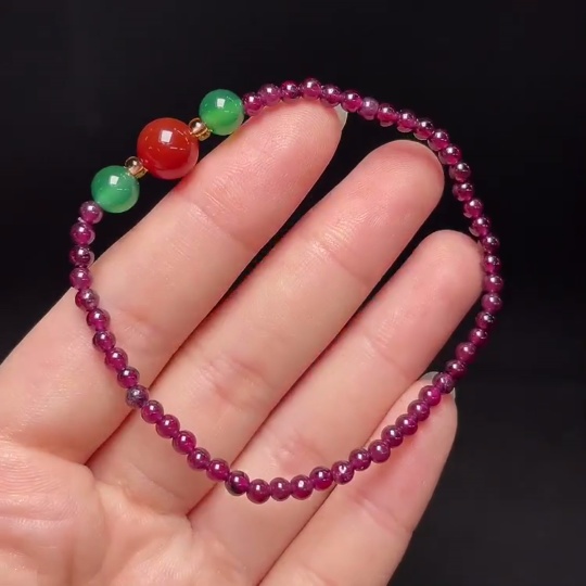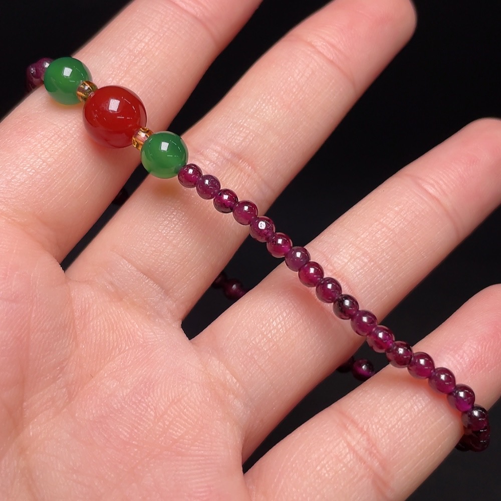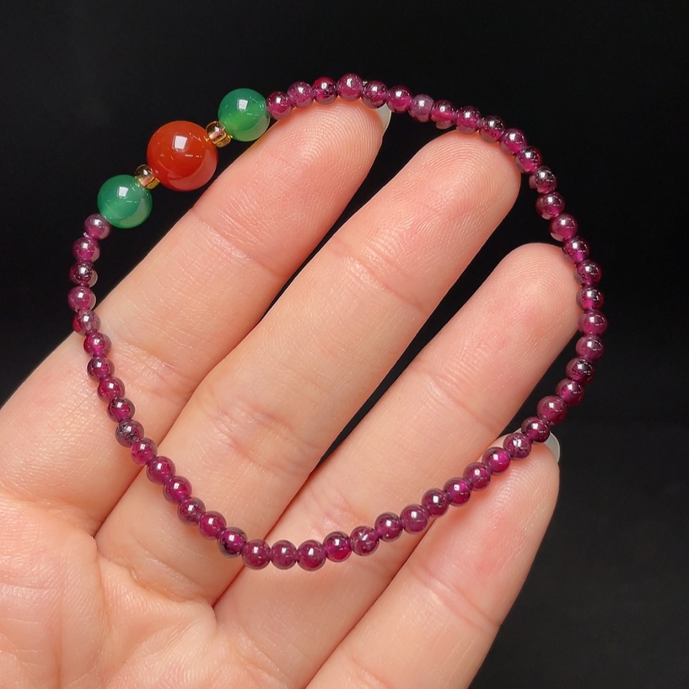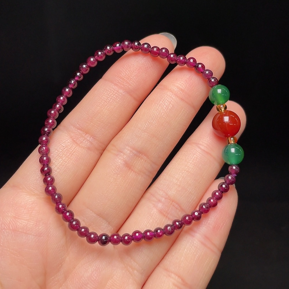 Garnet Bracelet with Non-Natural Accent Stones, Total Weight Approx. 4.8g, Stone Size Around 3.1mm