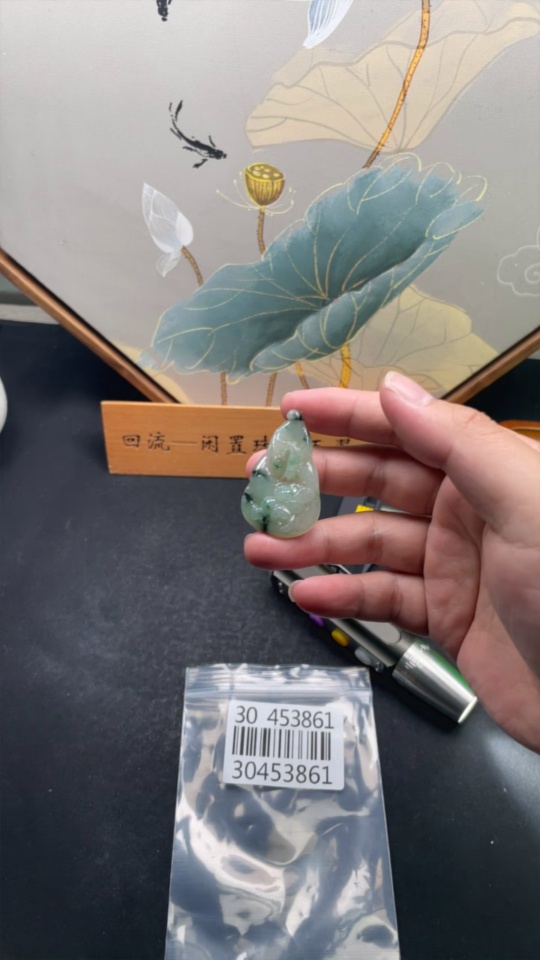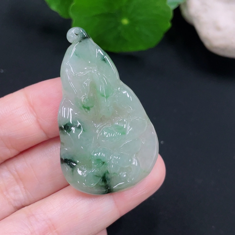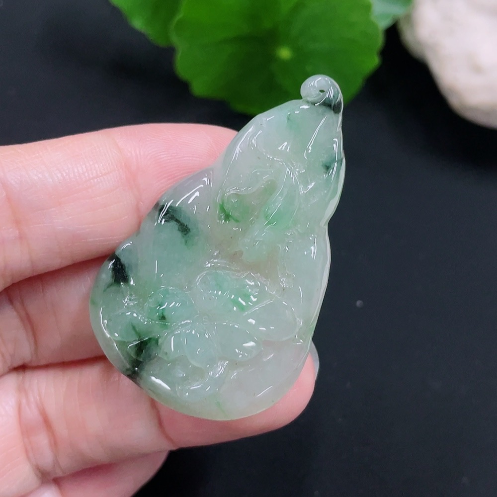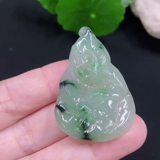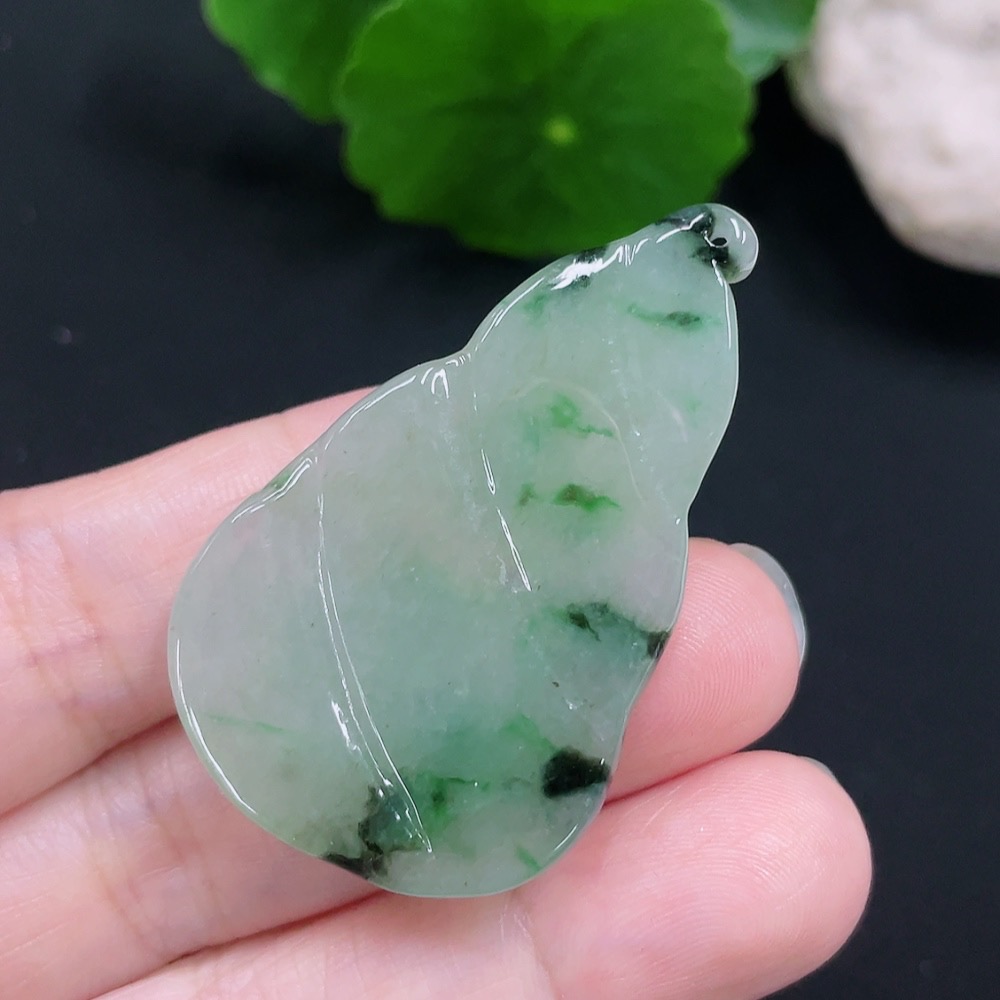 Jadeite Lotus Leaf Fish Pendant Total Weight Approx. 11.47g