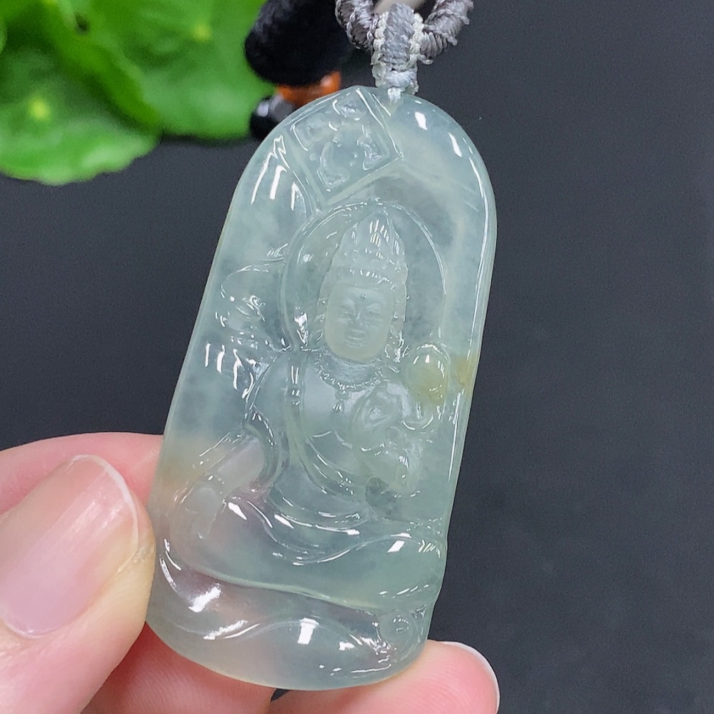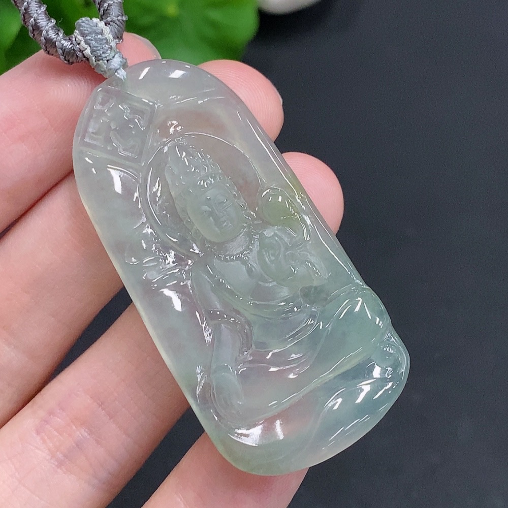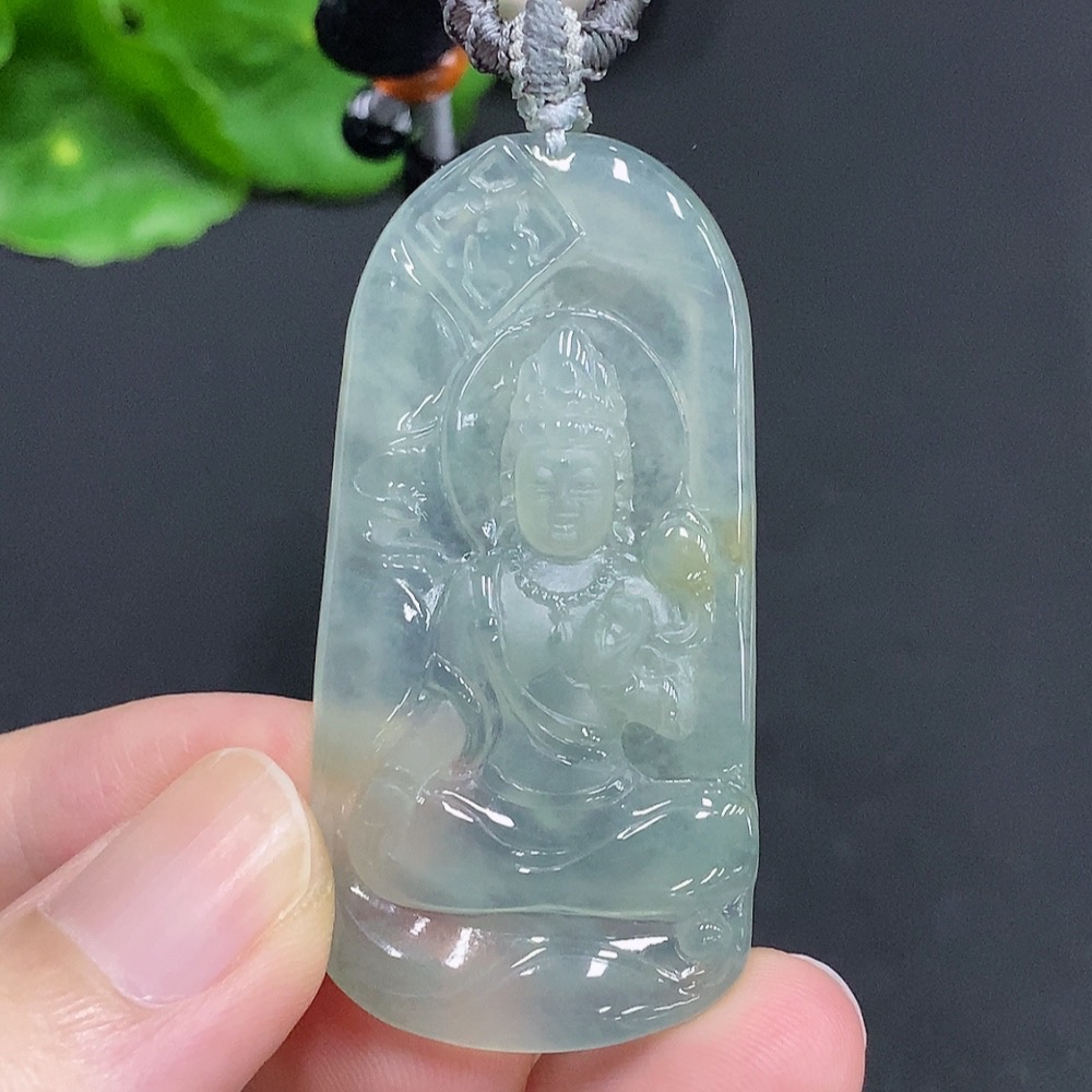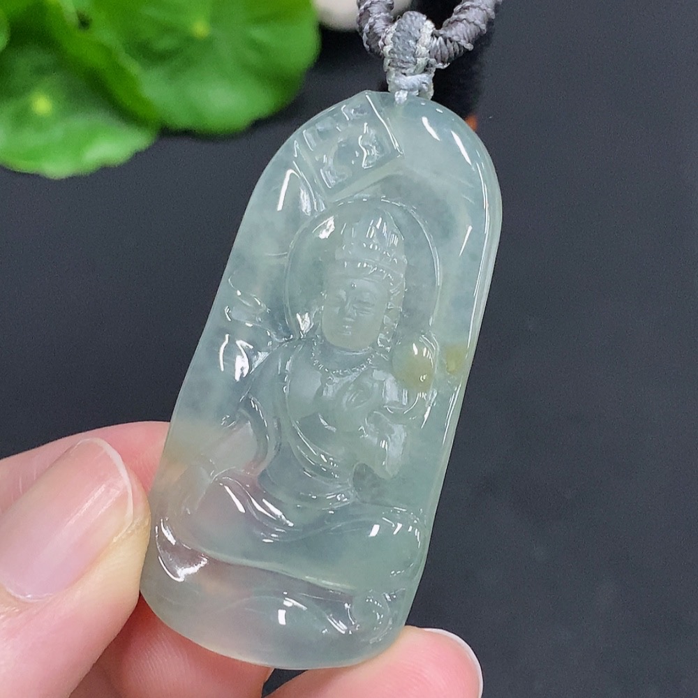 Jadeite Guanyin Pendant Total Weight Approx. 15.8g (Incl. Rope Weight)