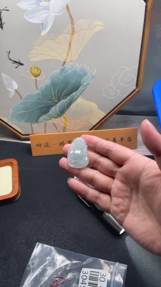Jadeite God of Wealth Pendant, Total Weight Approx. 10g