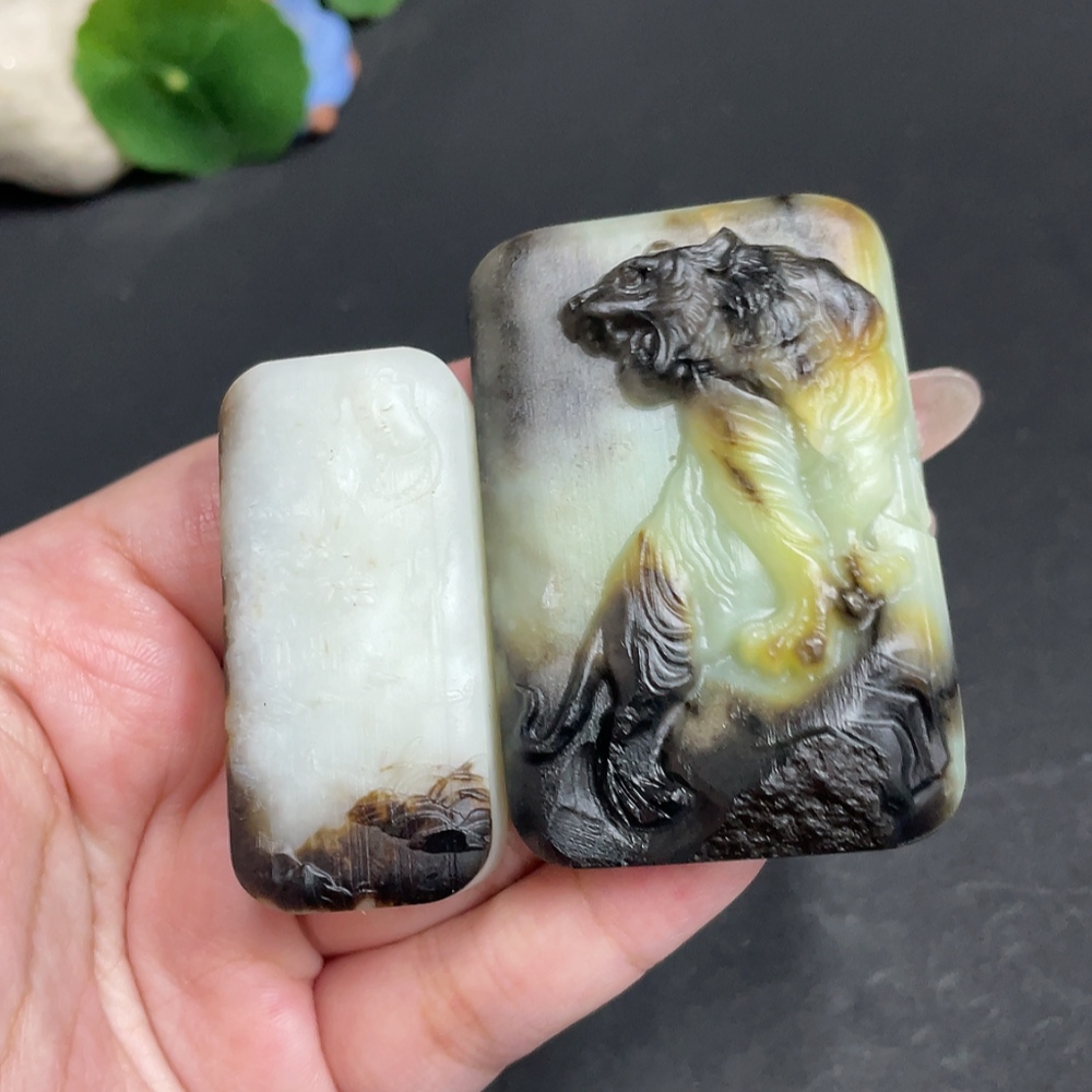 Hetian Jade Pendant, Ascending Tiger, Guanyin, Total Weight Approx. 140.5g, Undetermined Skin Color Origin