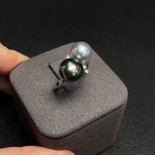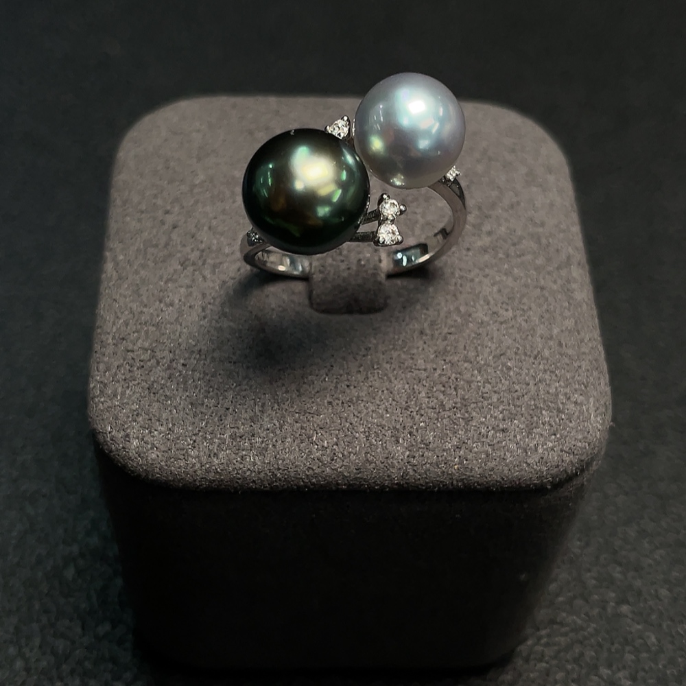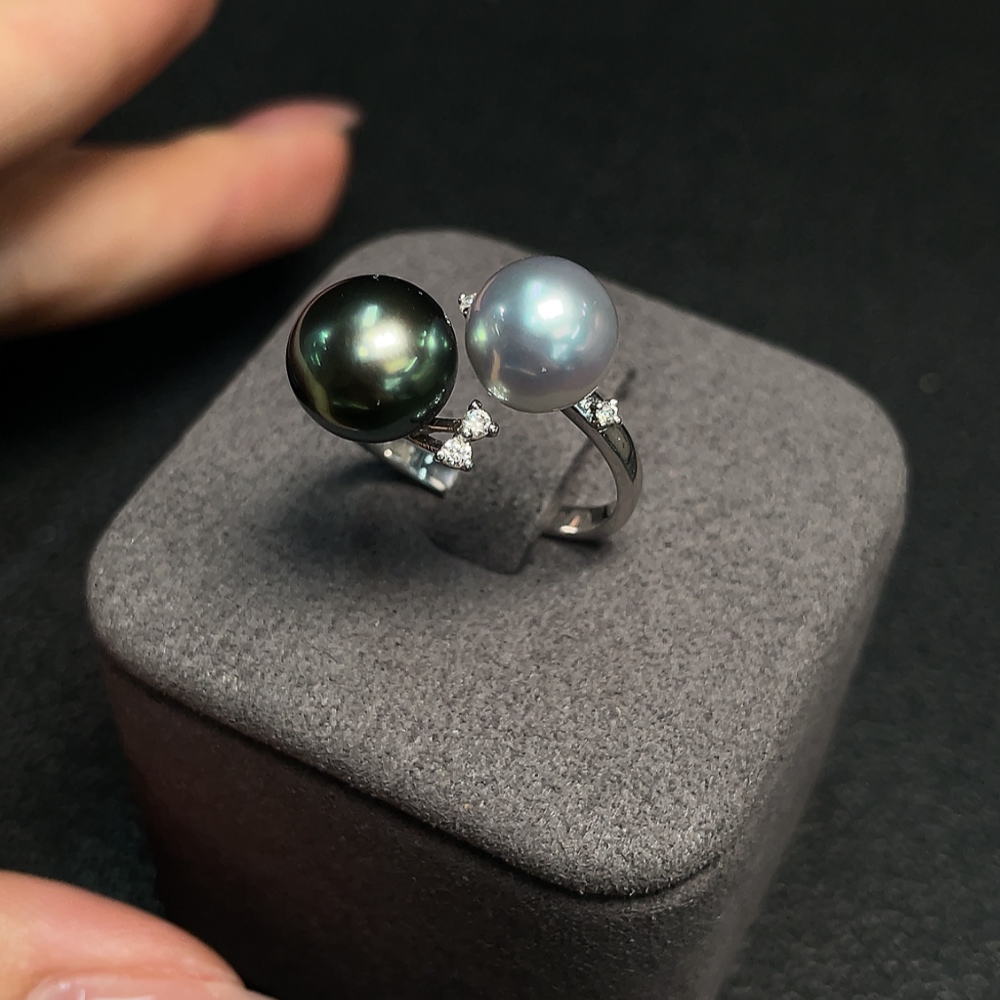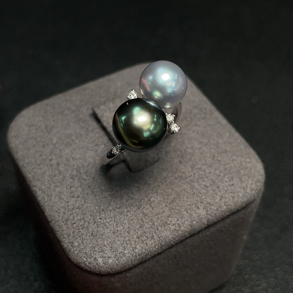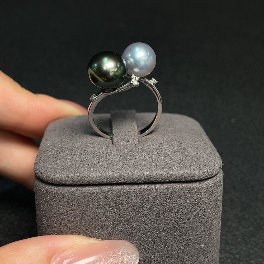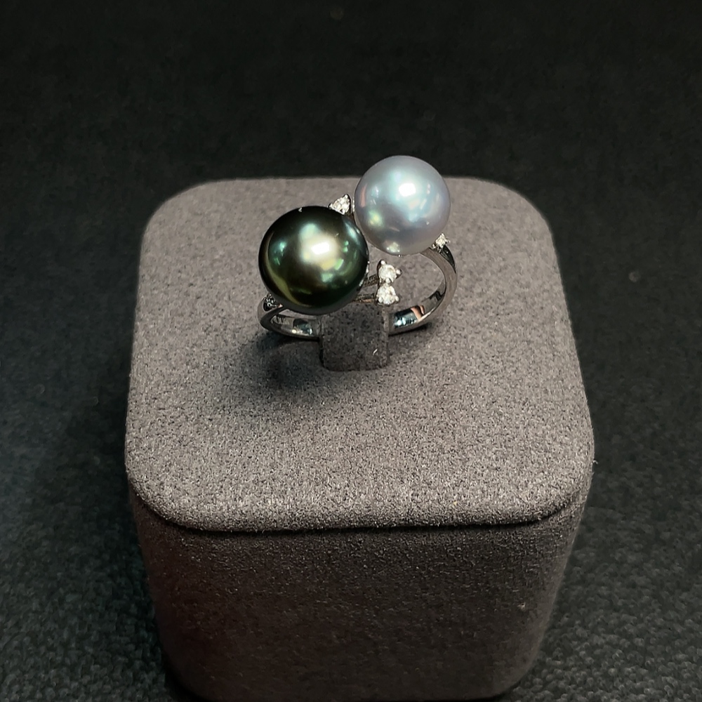 18K Gold Saltwater Pearl Ring, Color Origin Undetermined, Adjustable, Total Weight Approximately 4.32g, Size About 8.4-9.3mm