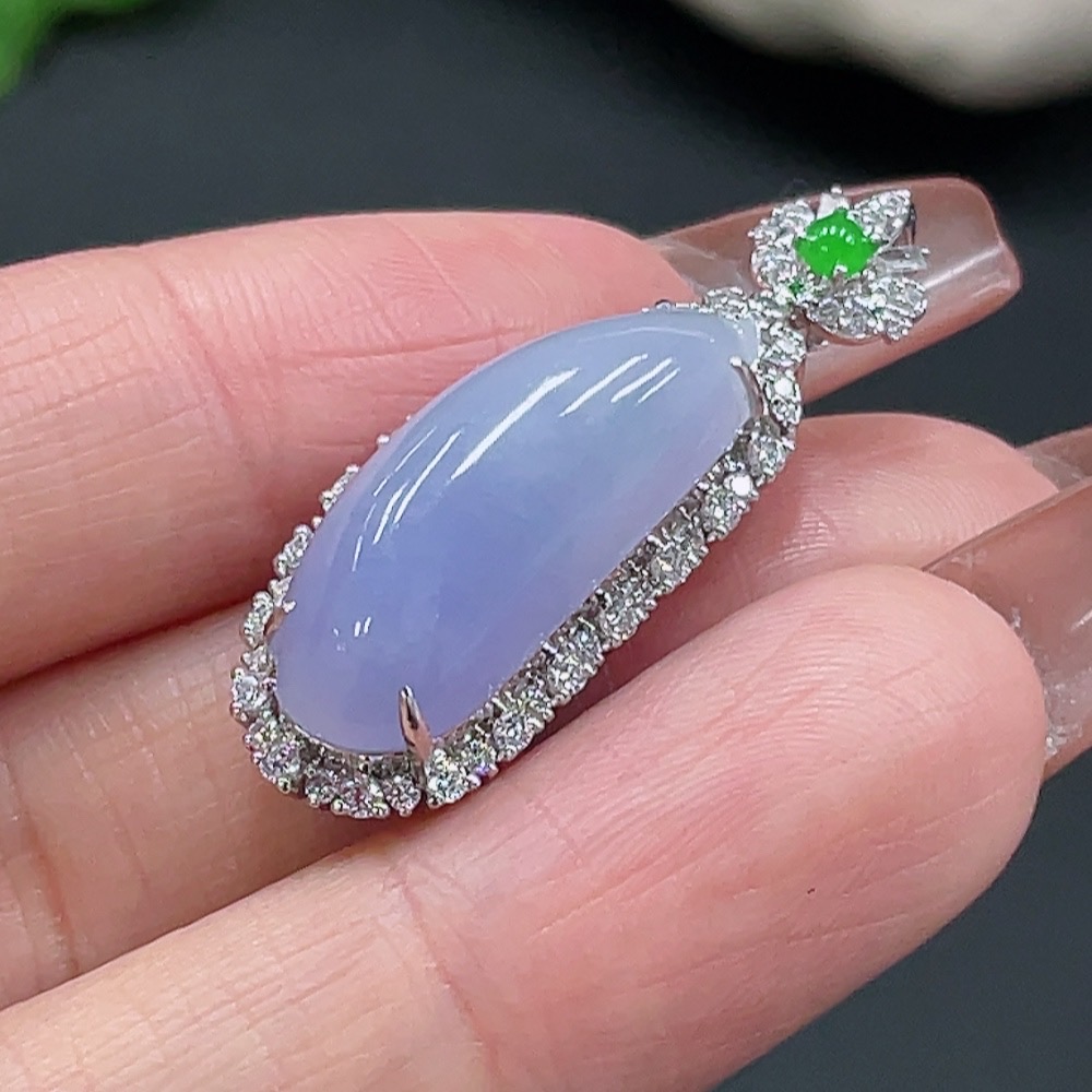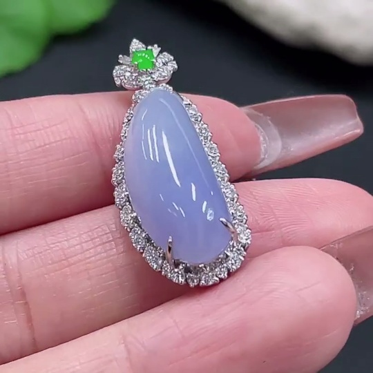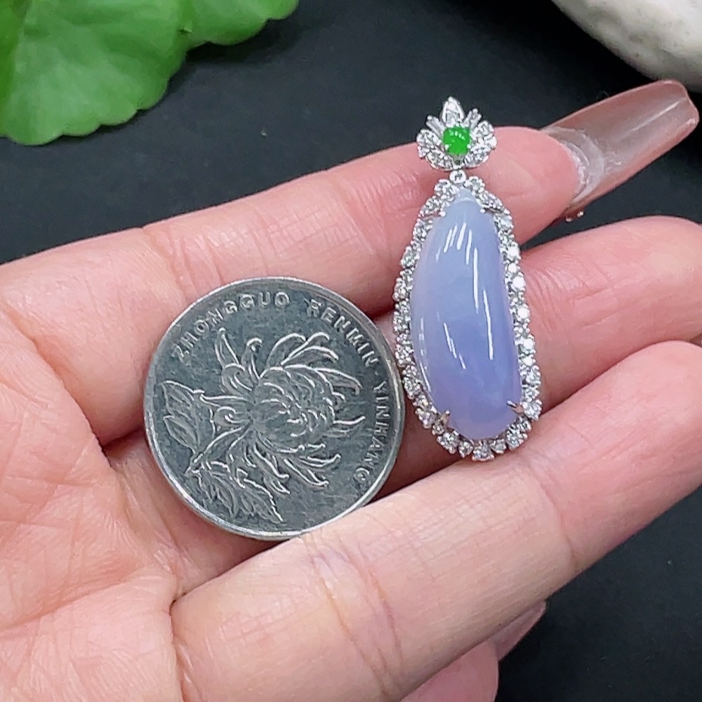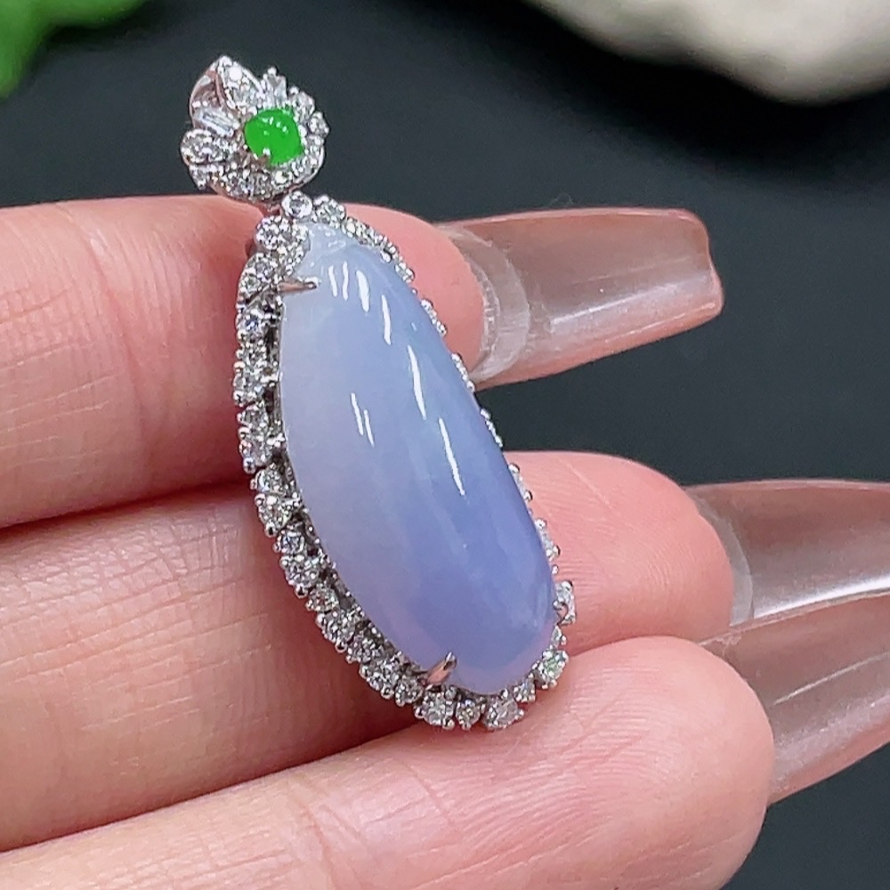 Jadeite Auspicious Gourd Pendant with 18K Gold Setting, Non-Diamond, Total Weight Approx. 5.74g
