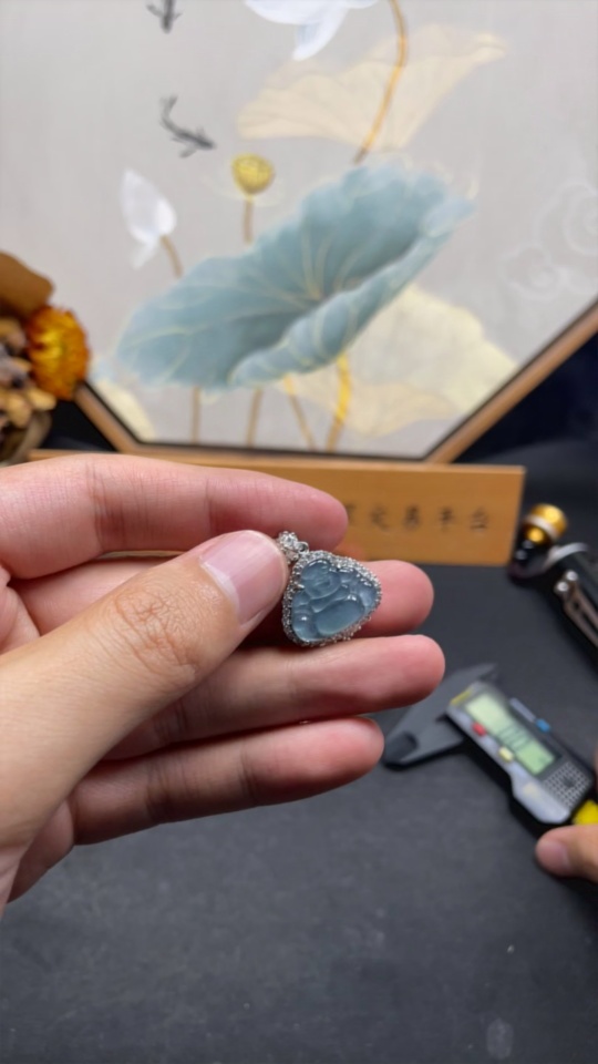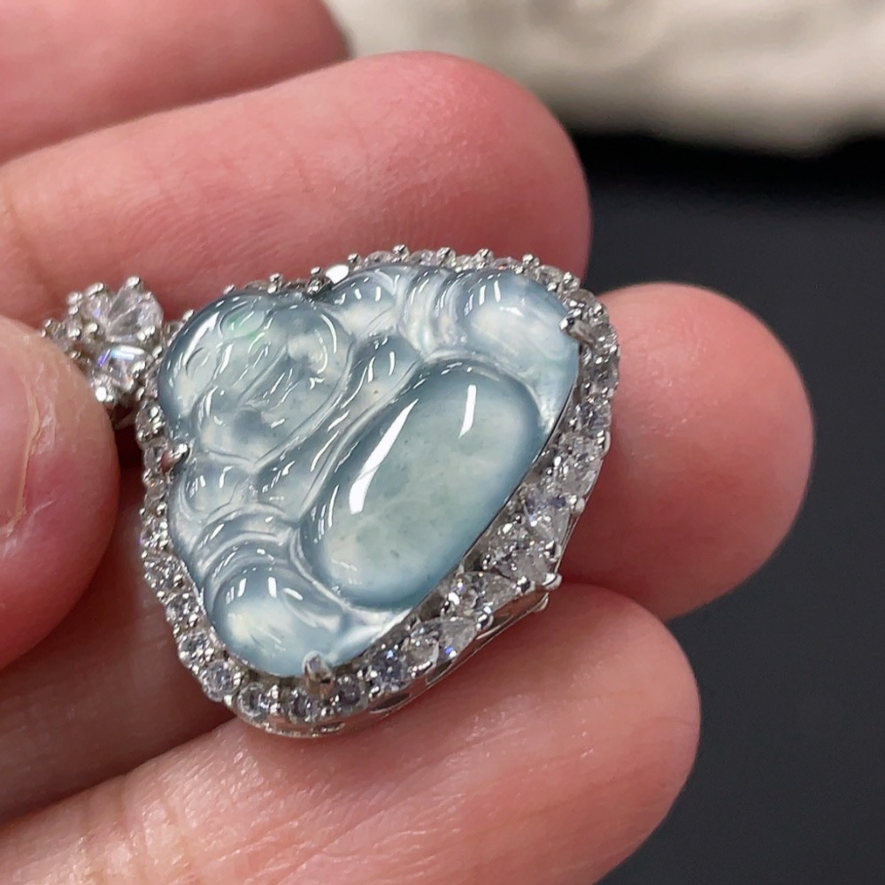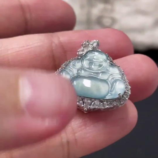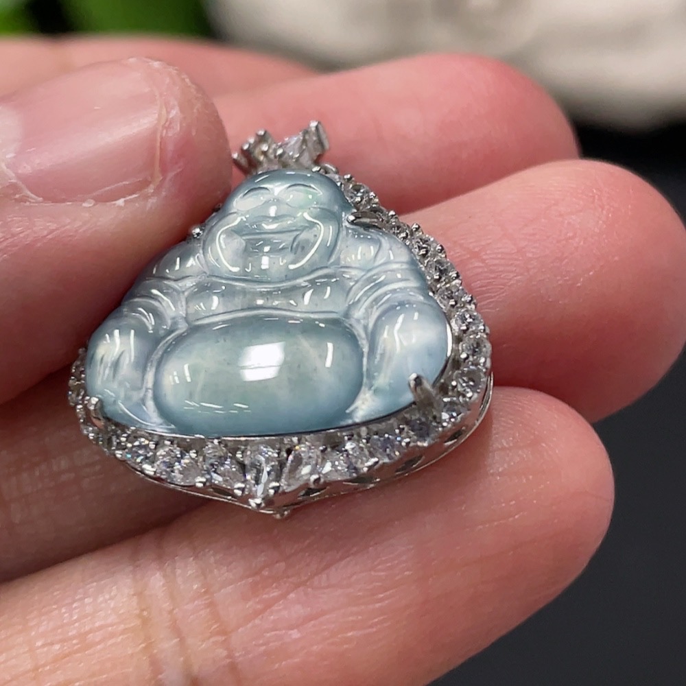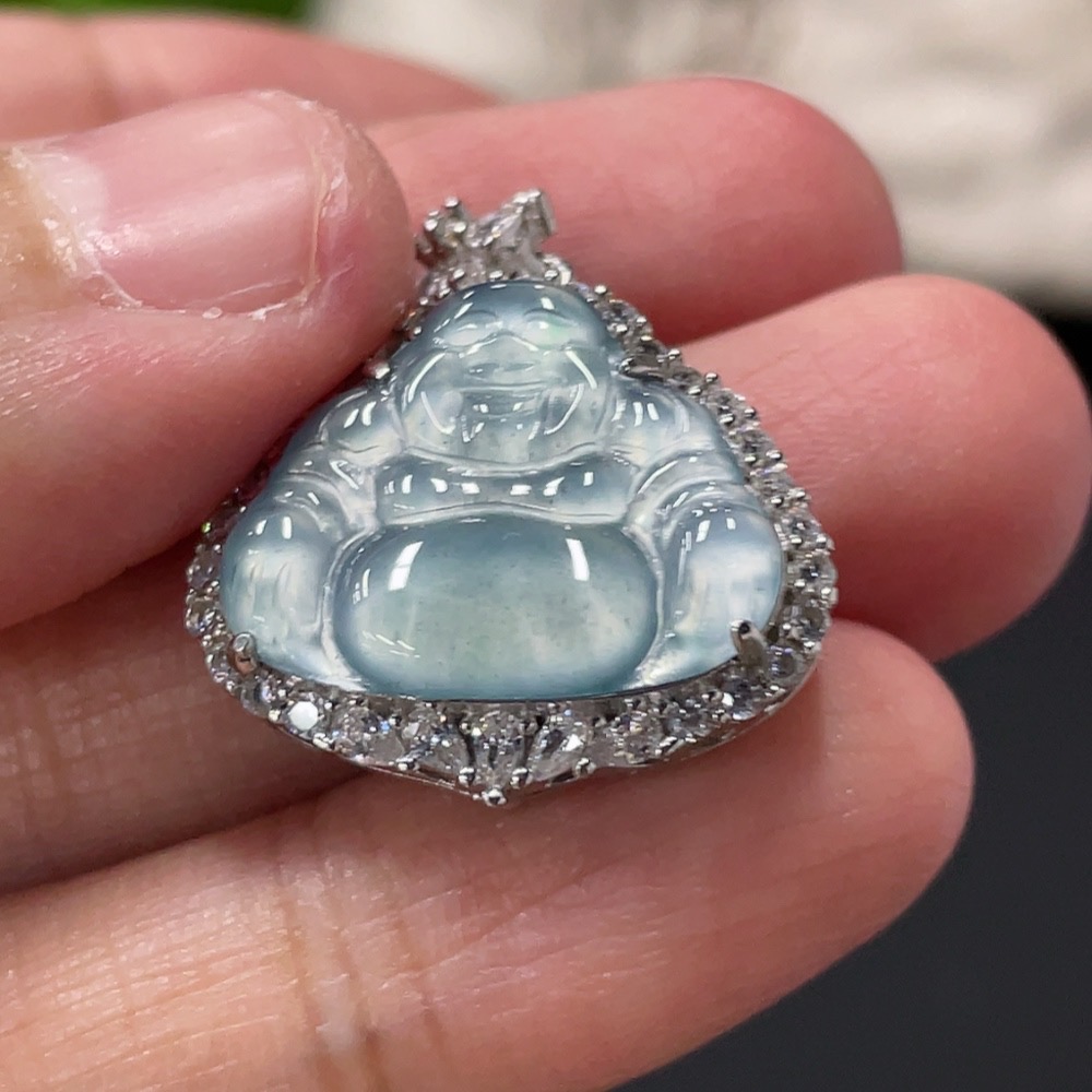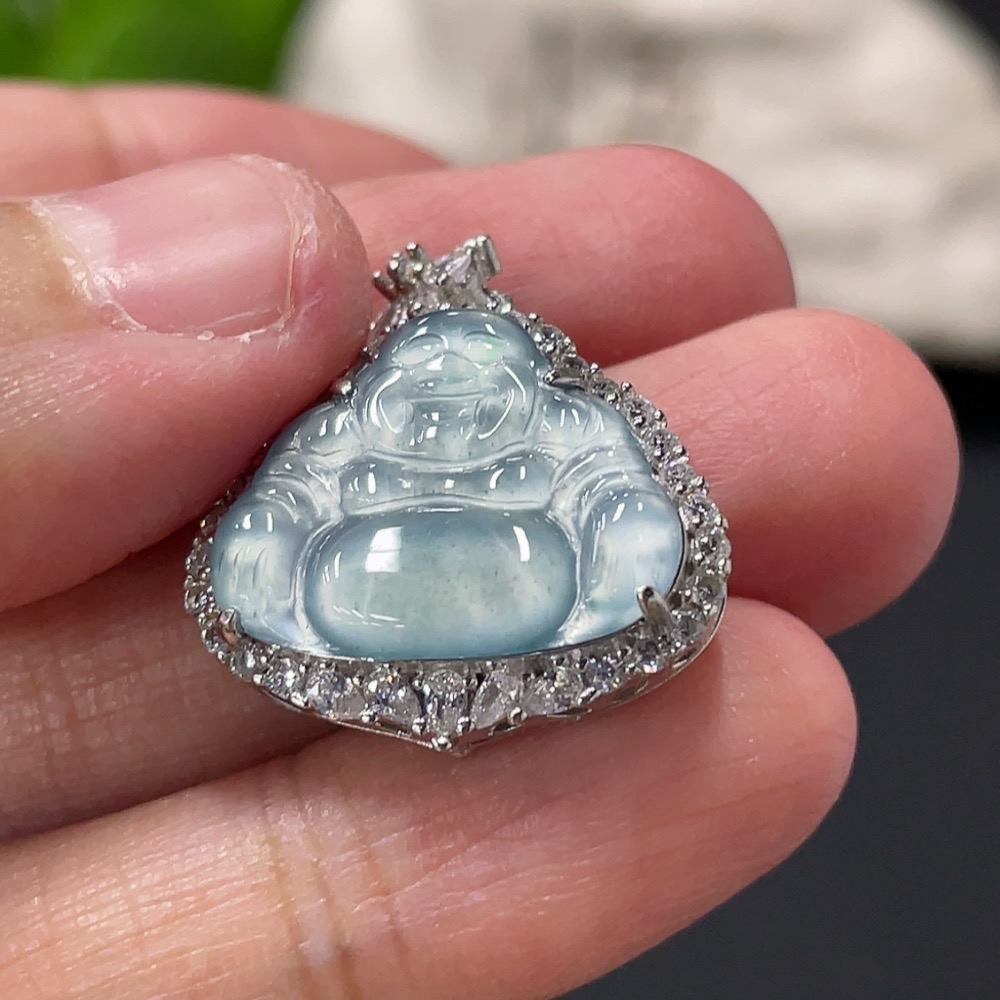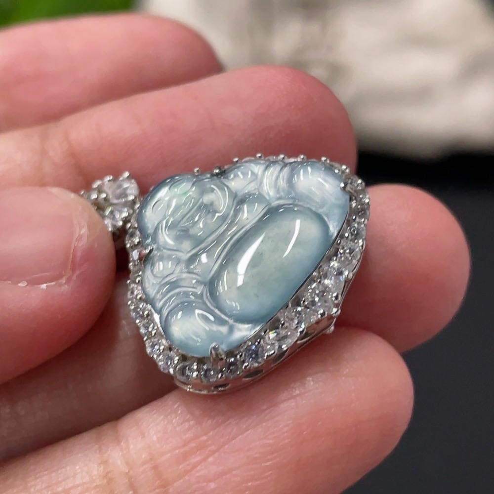 Jadeite Buddha Pendant Inlaid with Non-Gold, Total Weight Approximately 4.5g