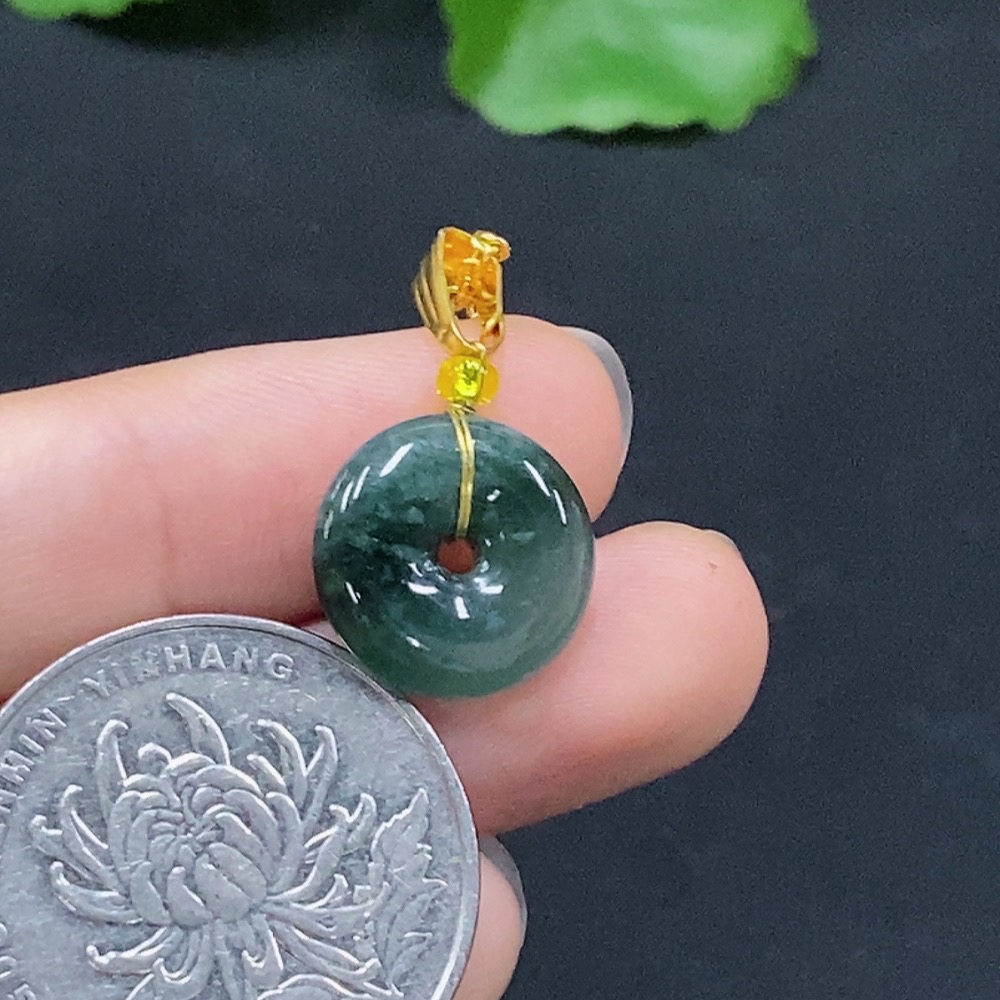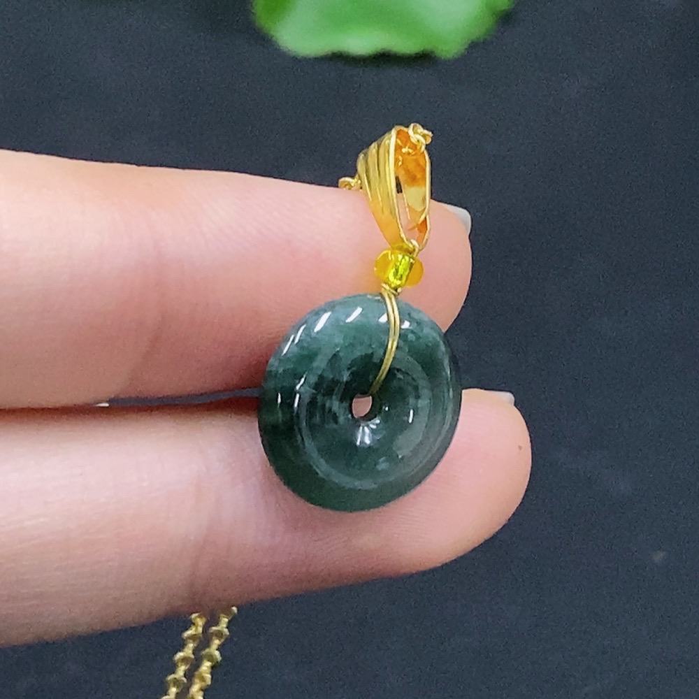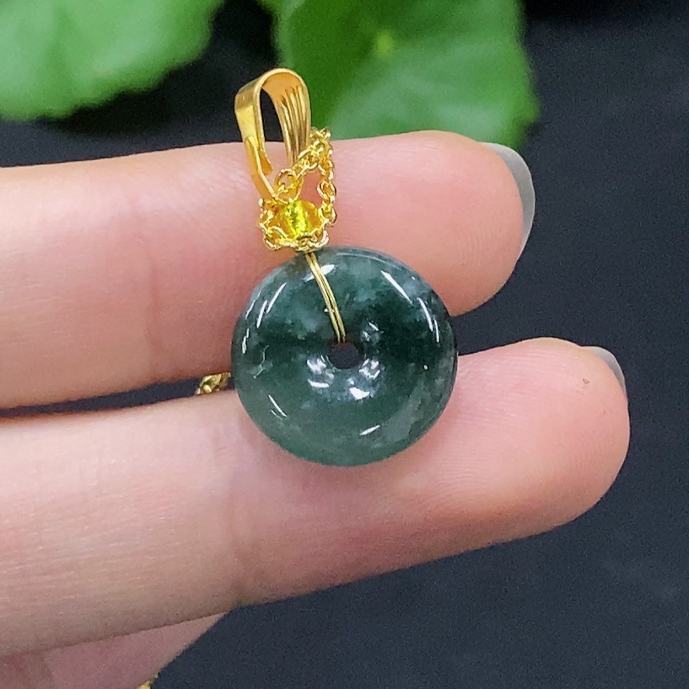 Jadeite Safety Button Pendant Non-Gold Inlaid